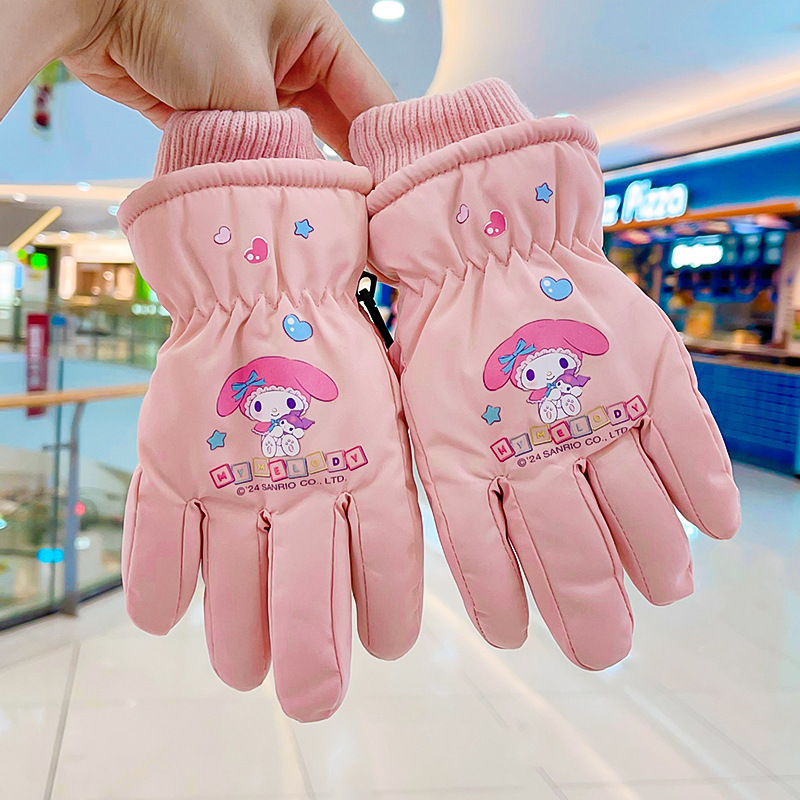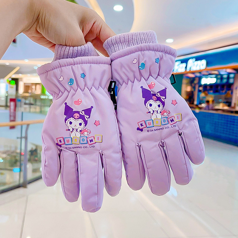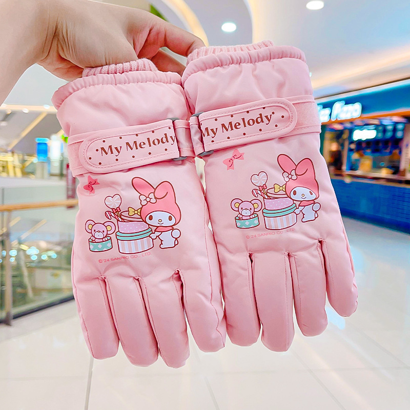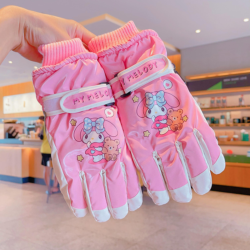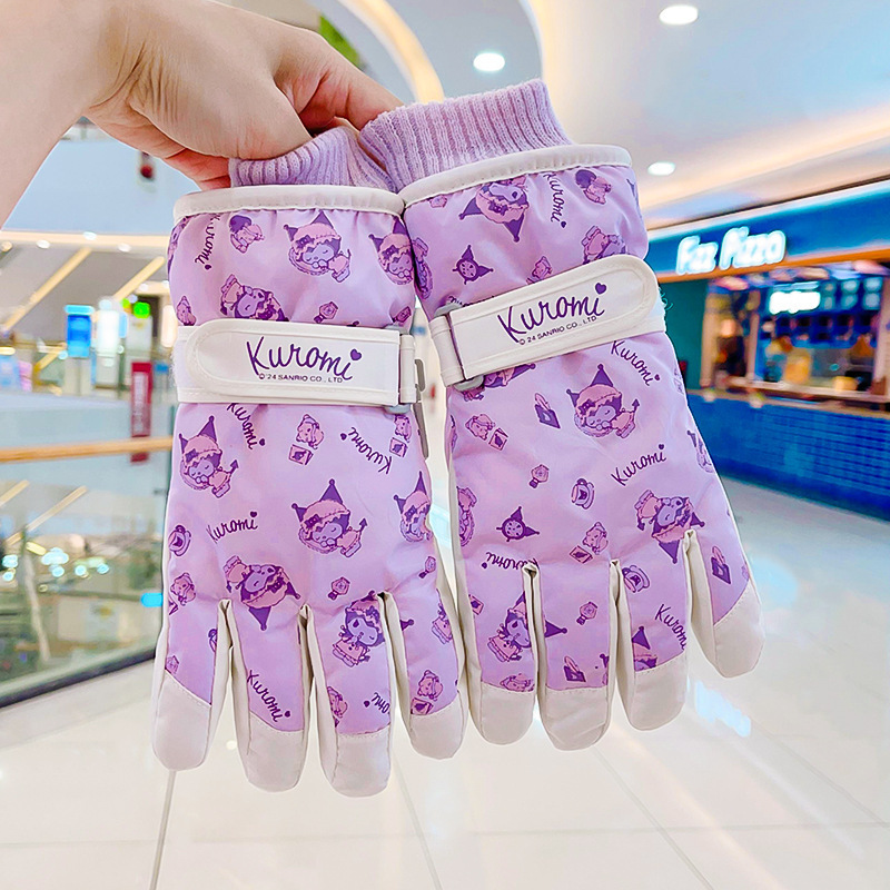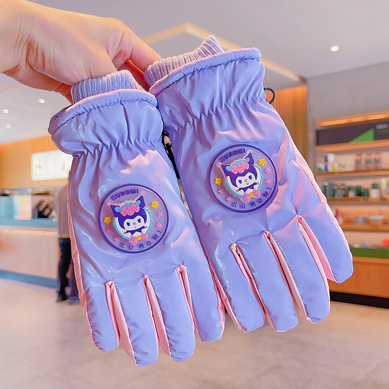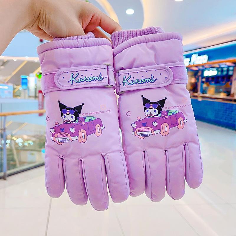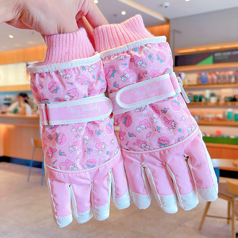 산리오 쿨로미 어린이 스키 장갑 겨울 아기 귀여운 따뜻한 기모 두꺼운 소녀 눈 방수