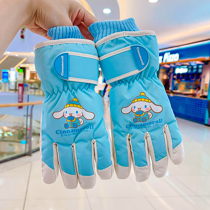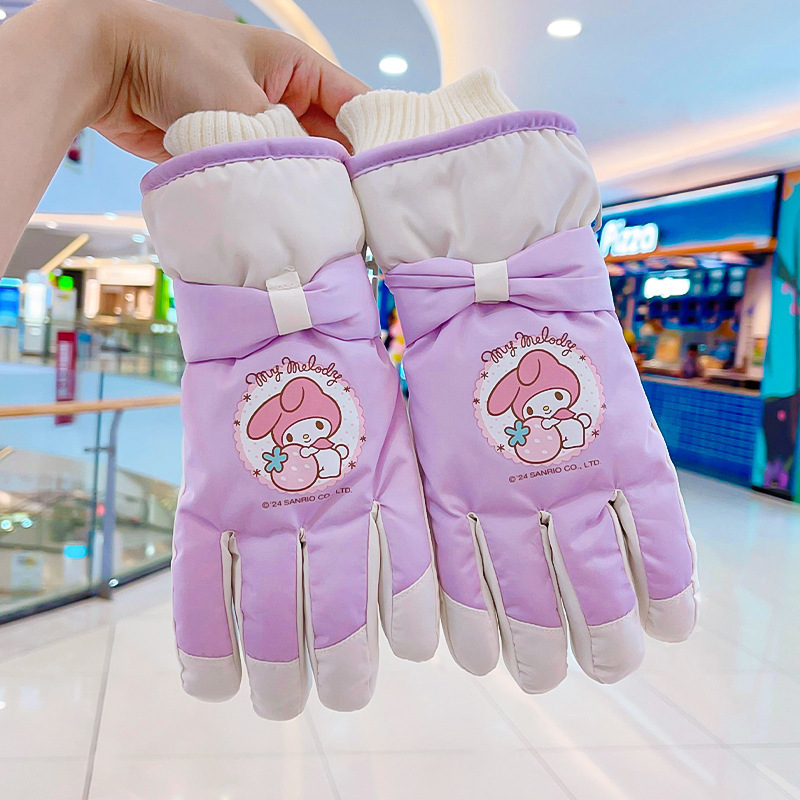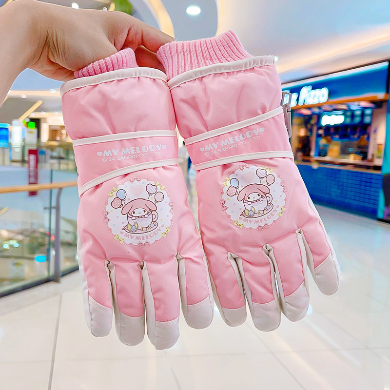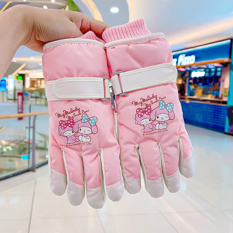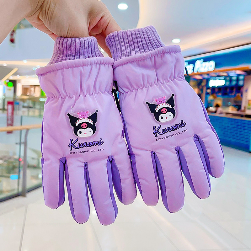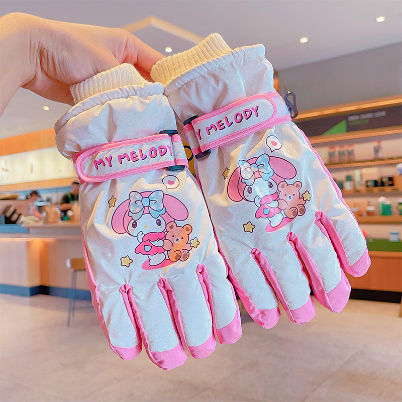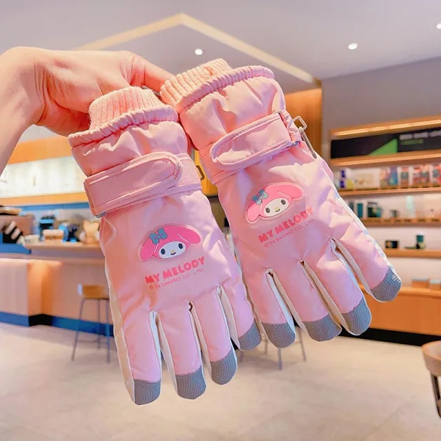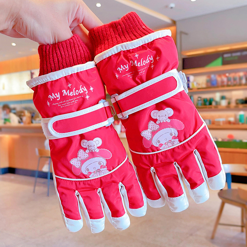 산리오 쿨로미 어린이 스키 장갑 겨울 아기 귀여운 따뜻한 기모 두꺼운 소녀 눈 방수