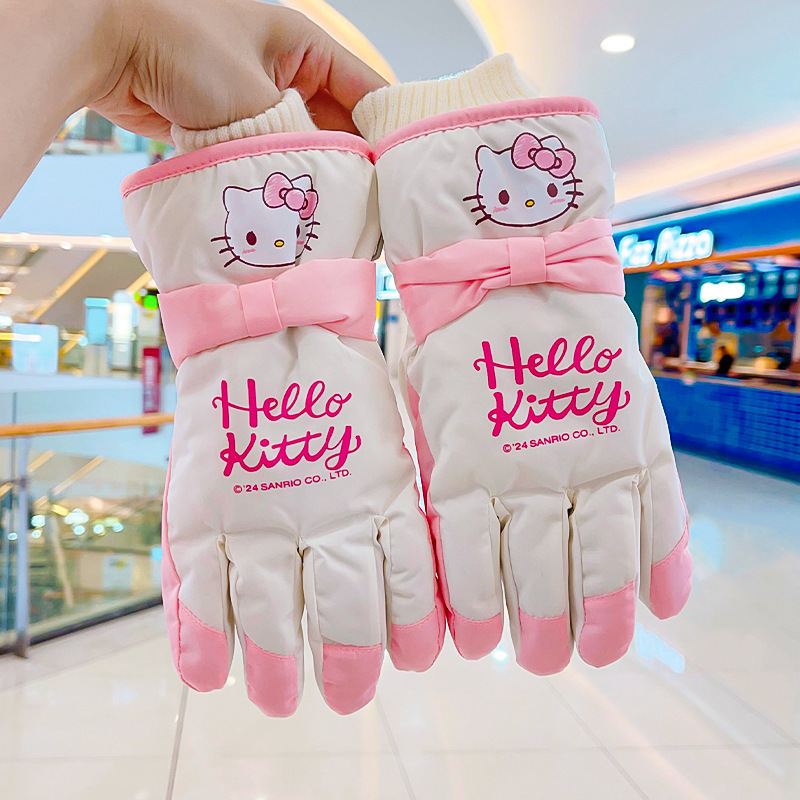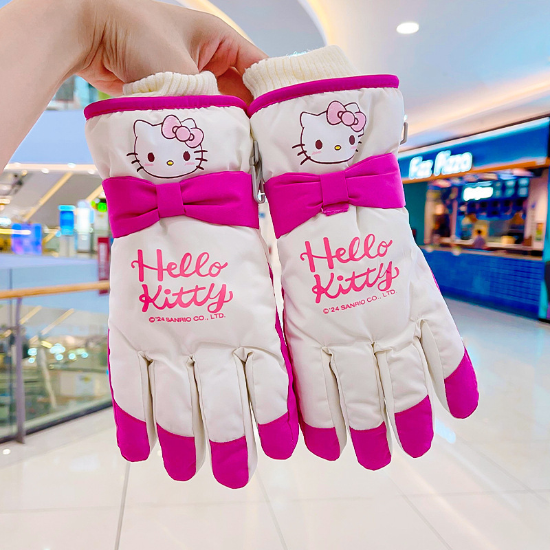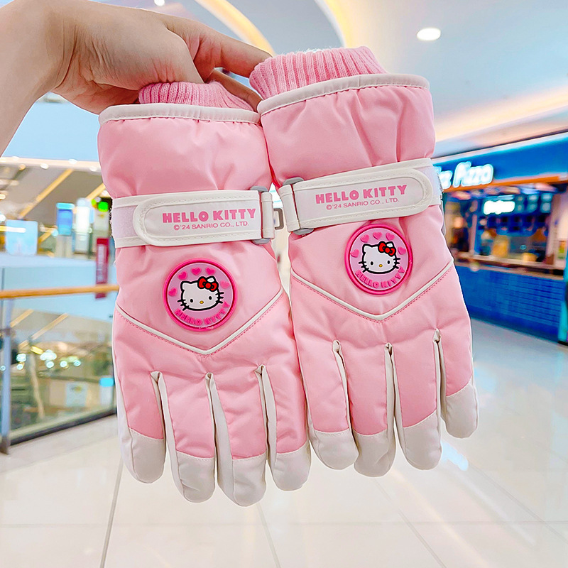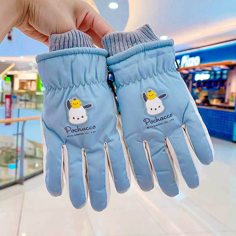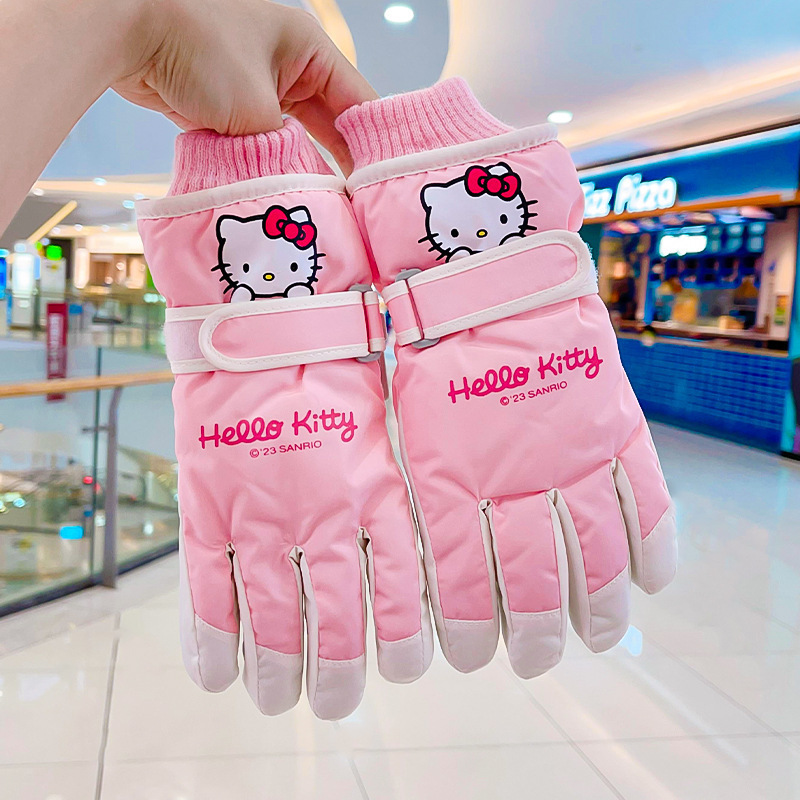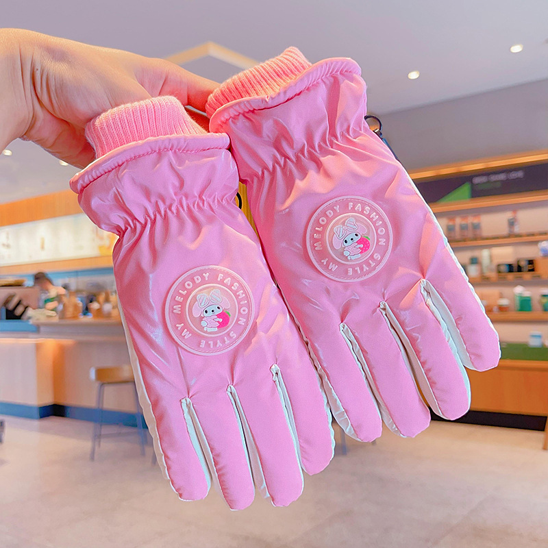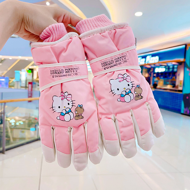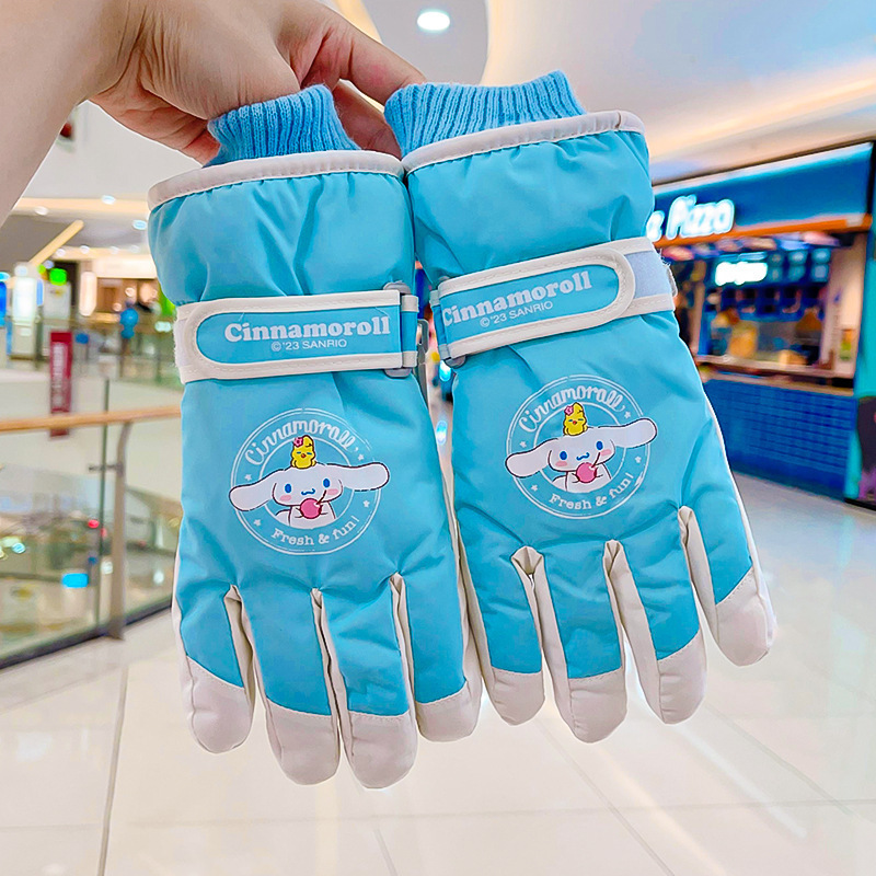 산리오 쿨로미 어린이 스키 장갑 겨울 아기 귀여운 따뜻한 기모 두꺼운 소녀 눈 방수