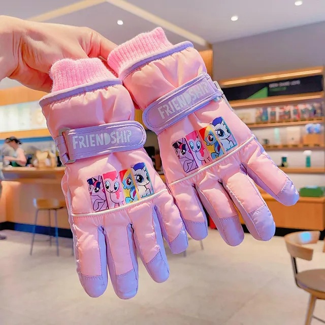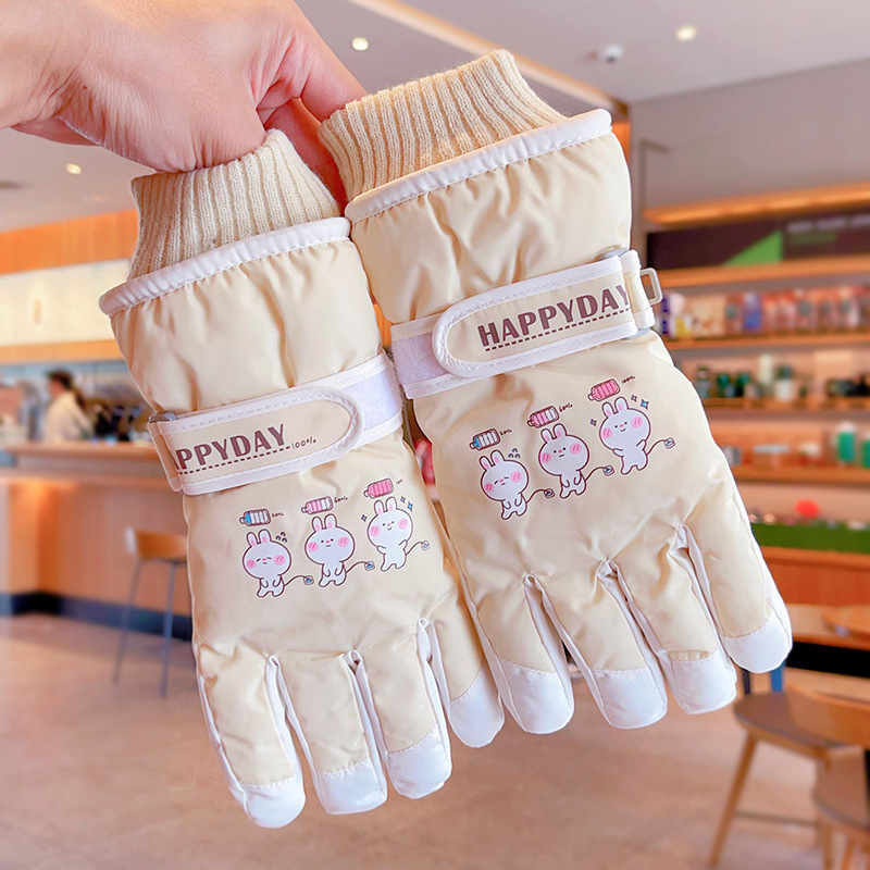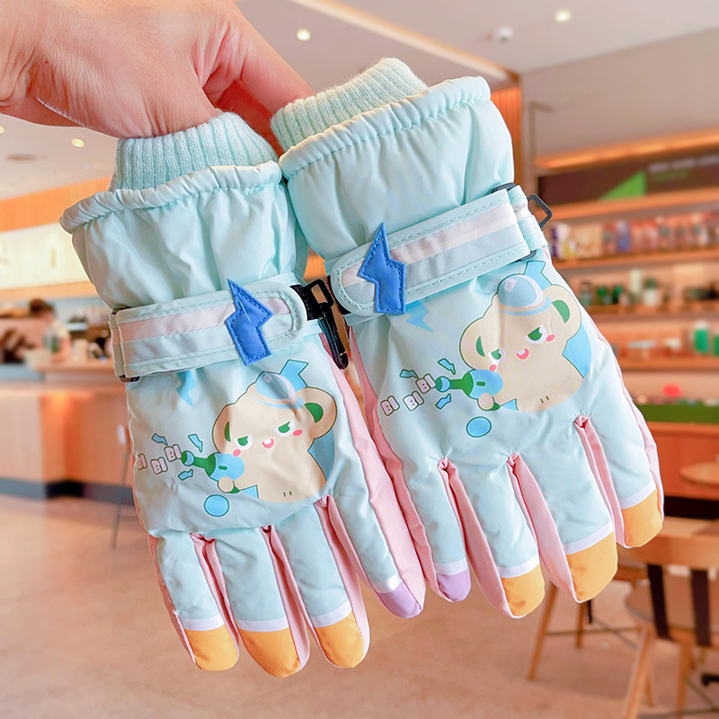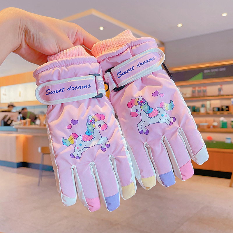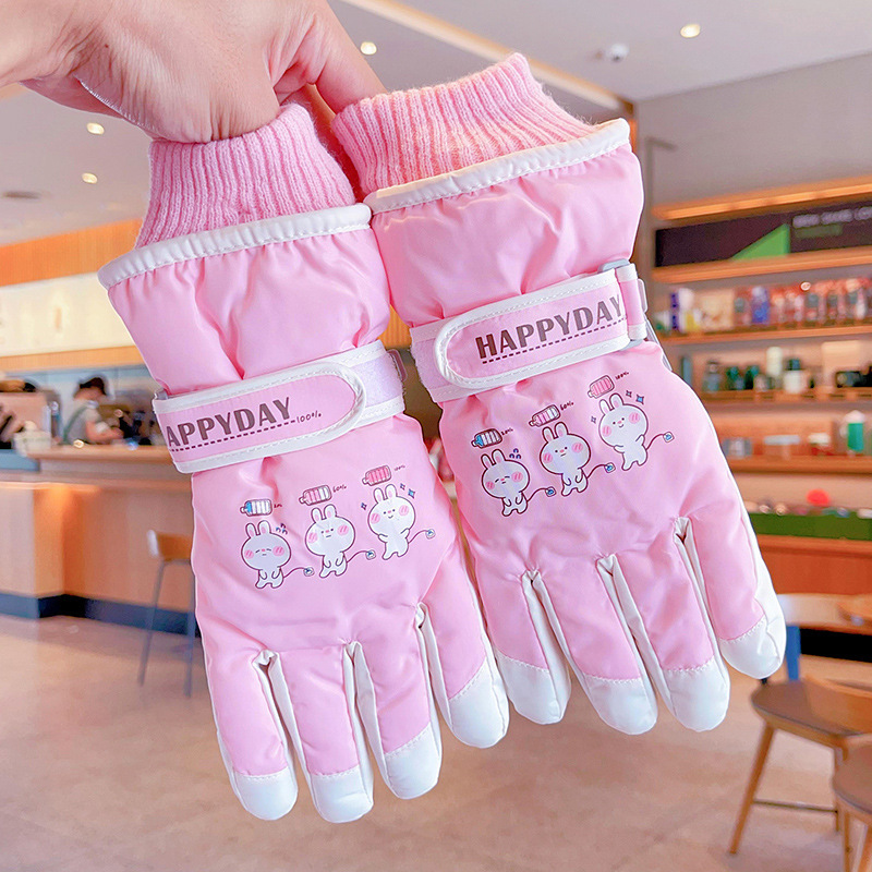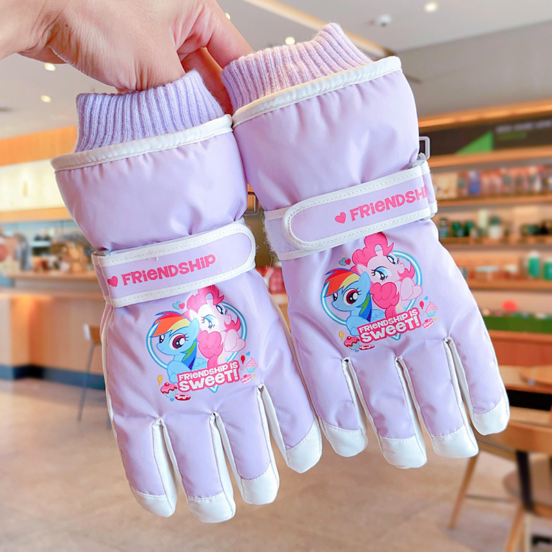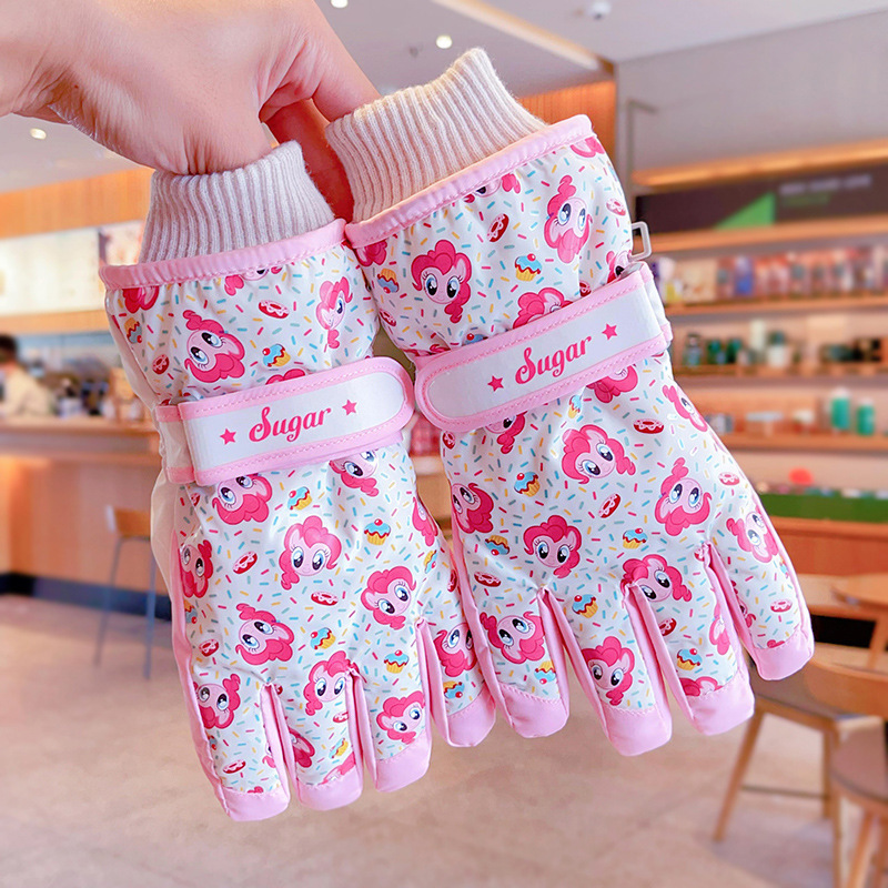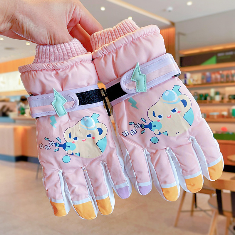 산리오 쿨로미 어린이 스키 장갑 겨울 아기 귀여운 따뜻한 기모 두꺼운 소녀 눈 방수