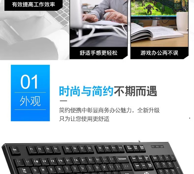 HP K200 유선 비즈니스 사무실 키보드 USB 노트북 데스크톱 컴퓨터 전용 게임 키보드