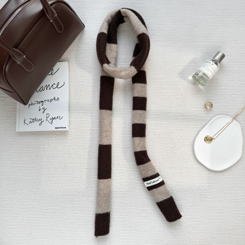 가을과 겨울 색상의 한국 버전 니트 양모 y2k 길고 얇은 좁은 색상 매칭 리본 핫 소녀 도파민 작은 스카프스토어 가기