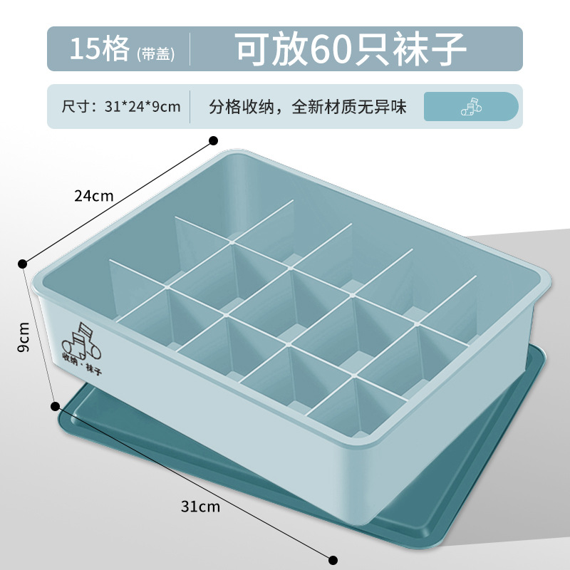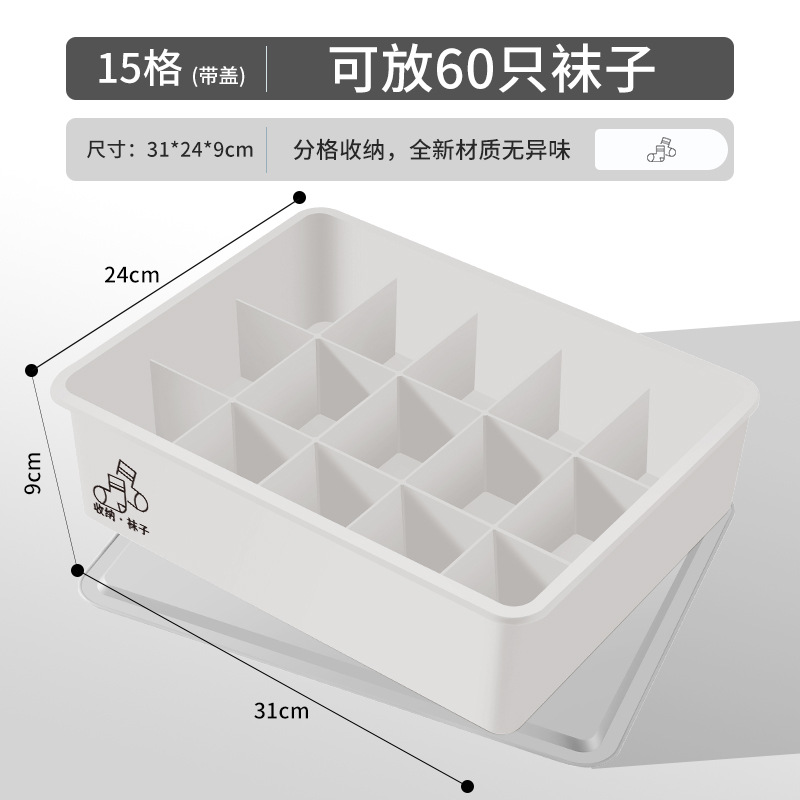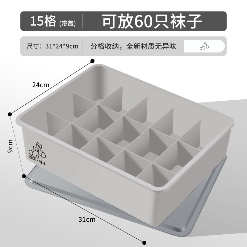 • 고급 회색 양말 상자(뚜껑 포함) [15칸] 분류 스티커 포함