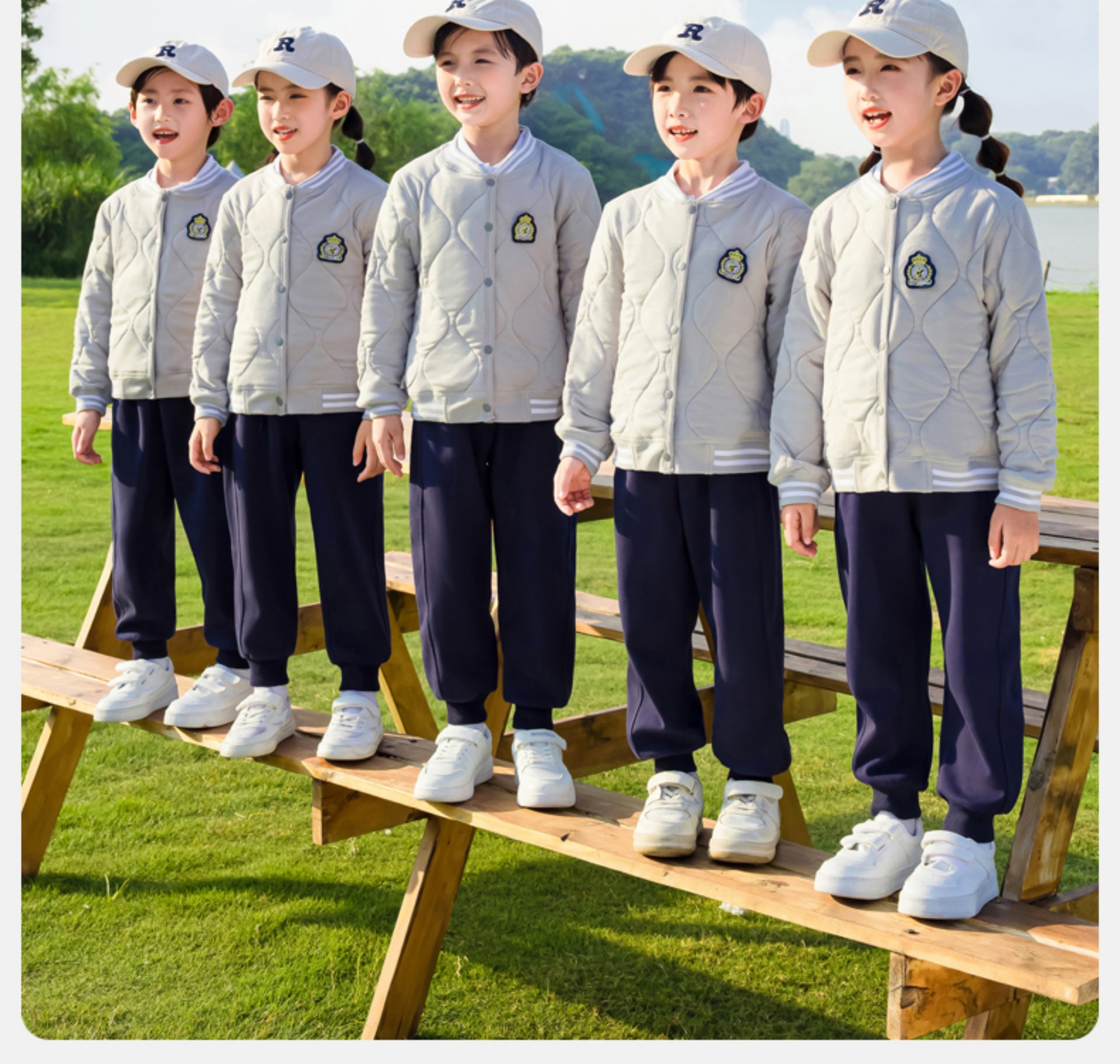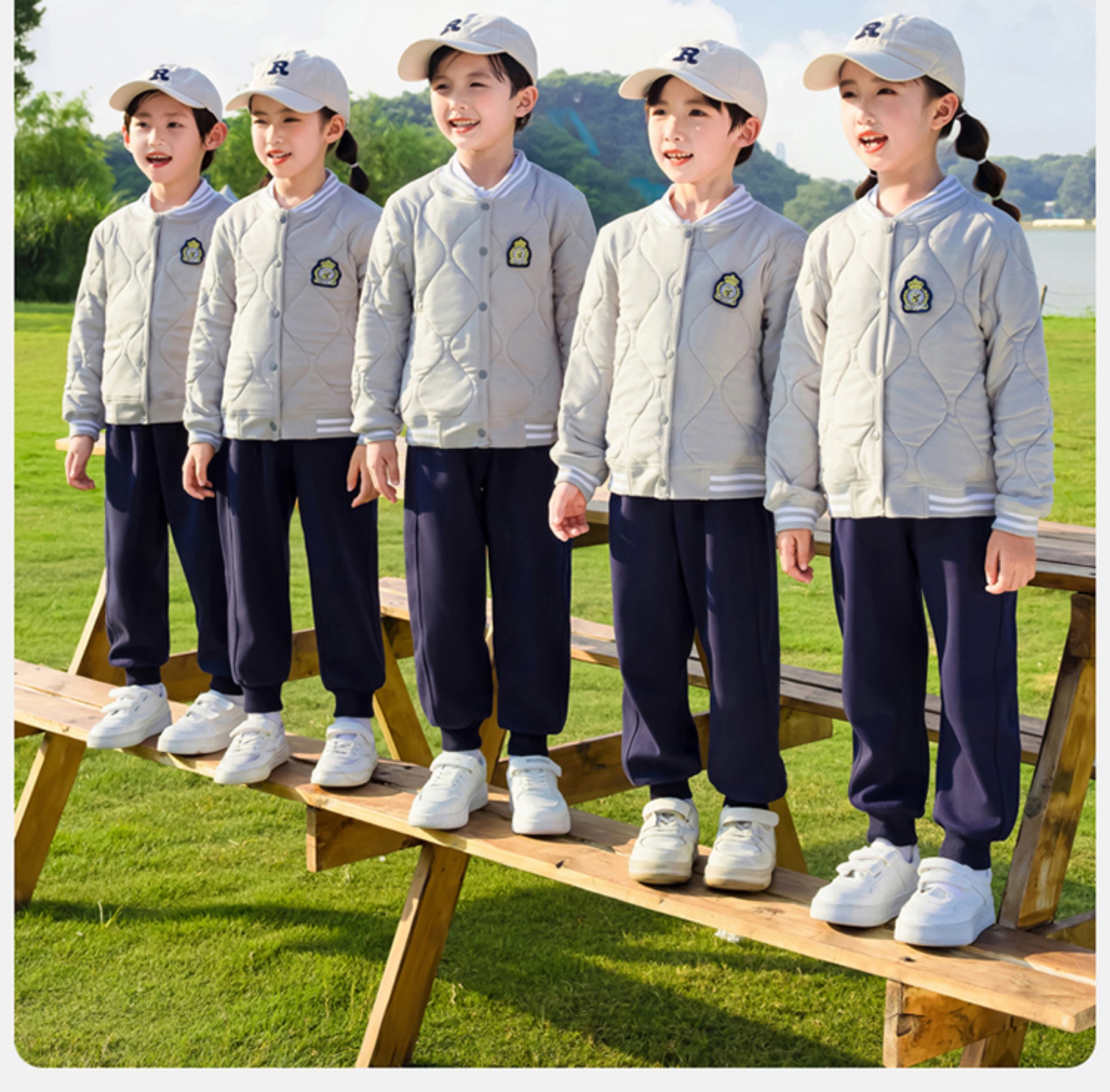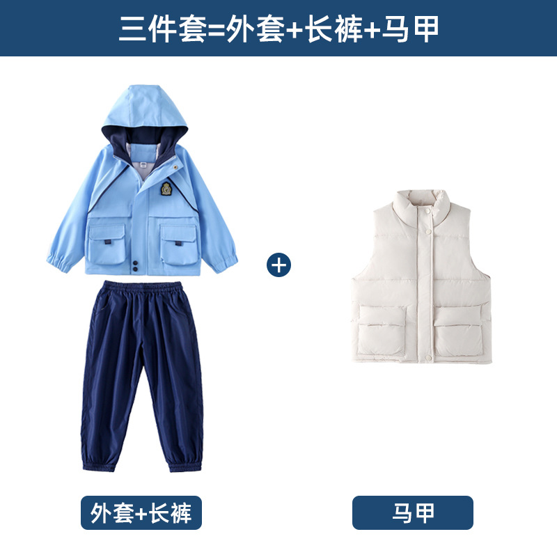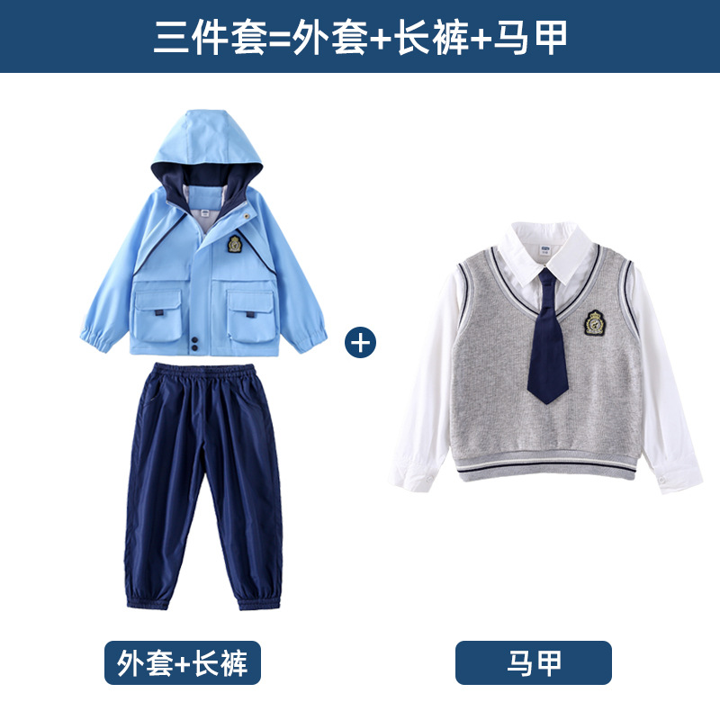 공장 아울렛 봄 가을과 겨울 새로운 소박한 옷 학교 유니폼 세트 초등학교 학생 수업 옷 스포츠 대학 스타일 3 피스 세트