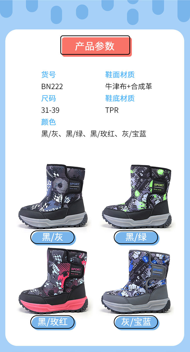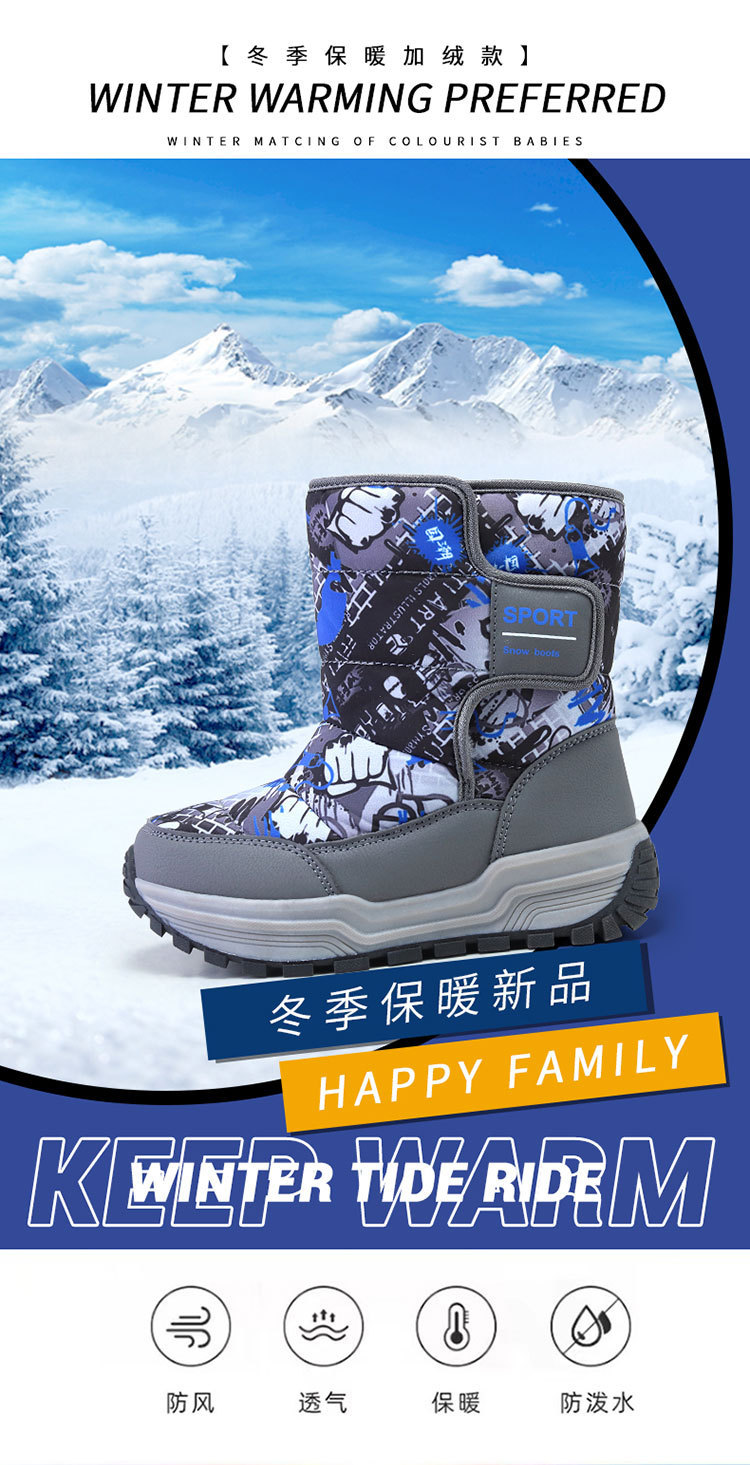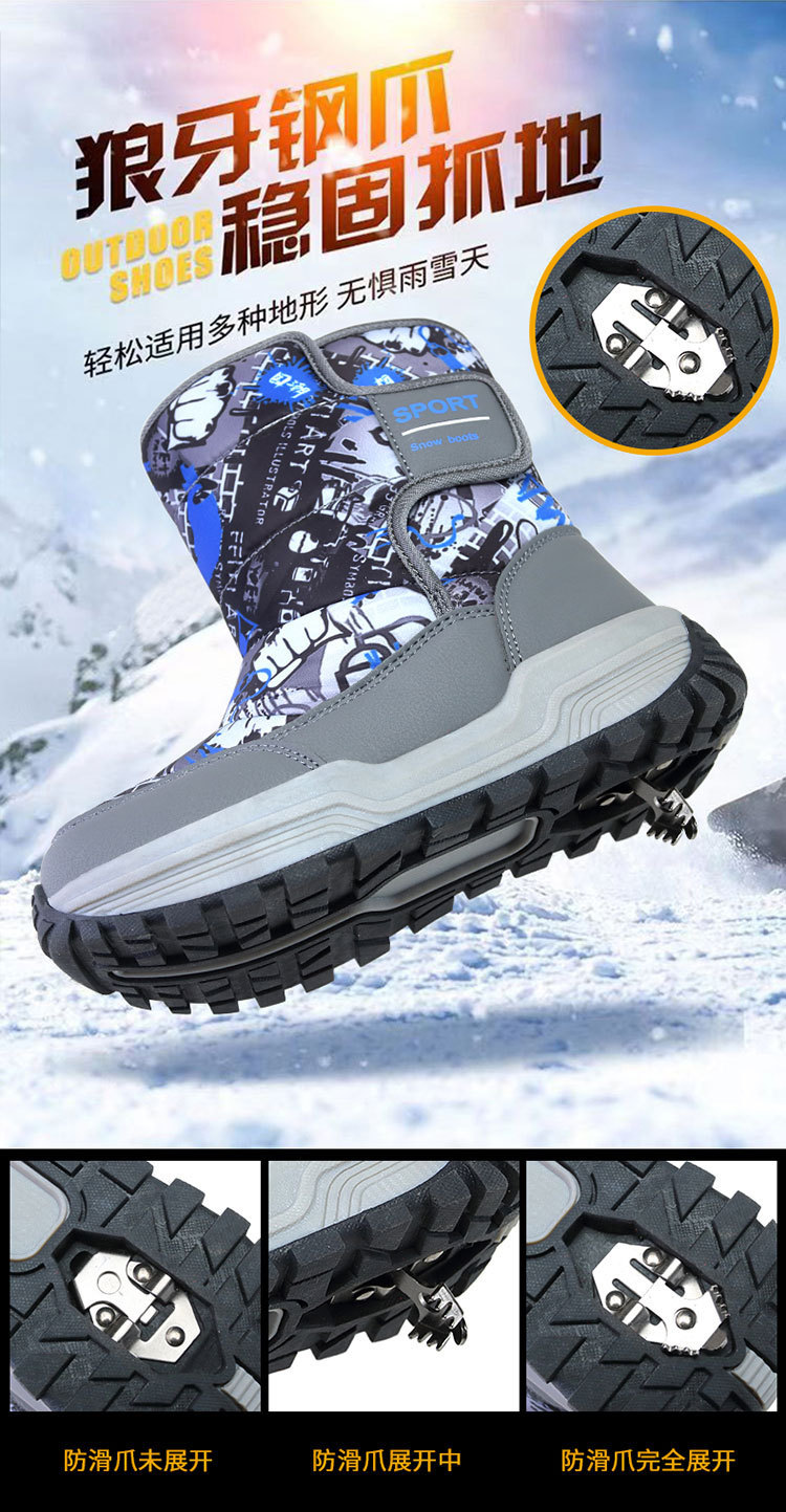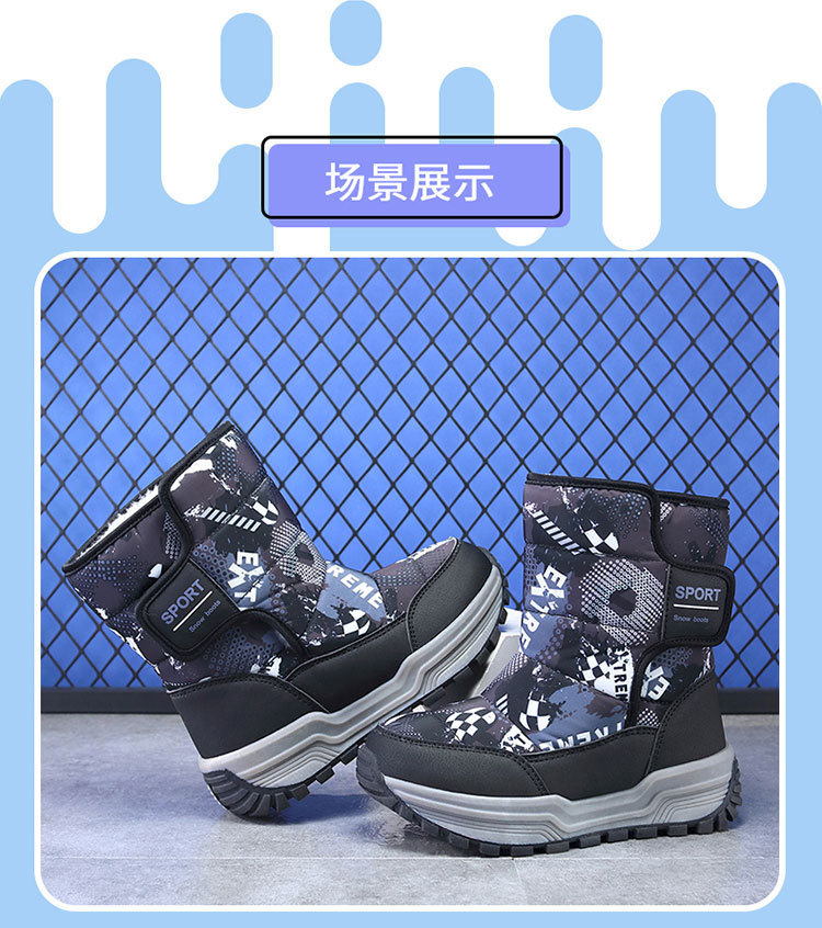 어린이 아이스 클로 스노우 부츠 겨울 방수 기모 두꺼운 소년 코튼 슈즈 미끄럼 방지 동북 위장 대형면 부츠스토어 가기