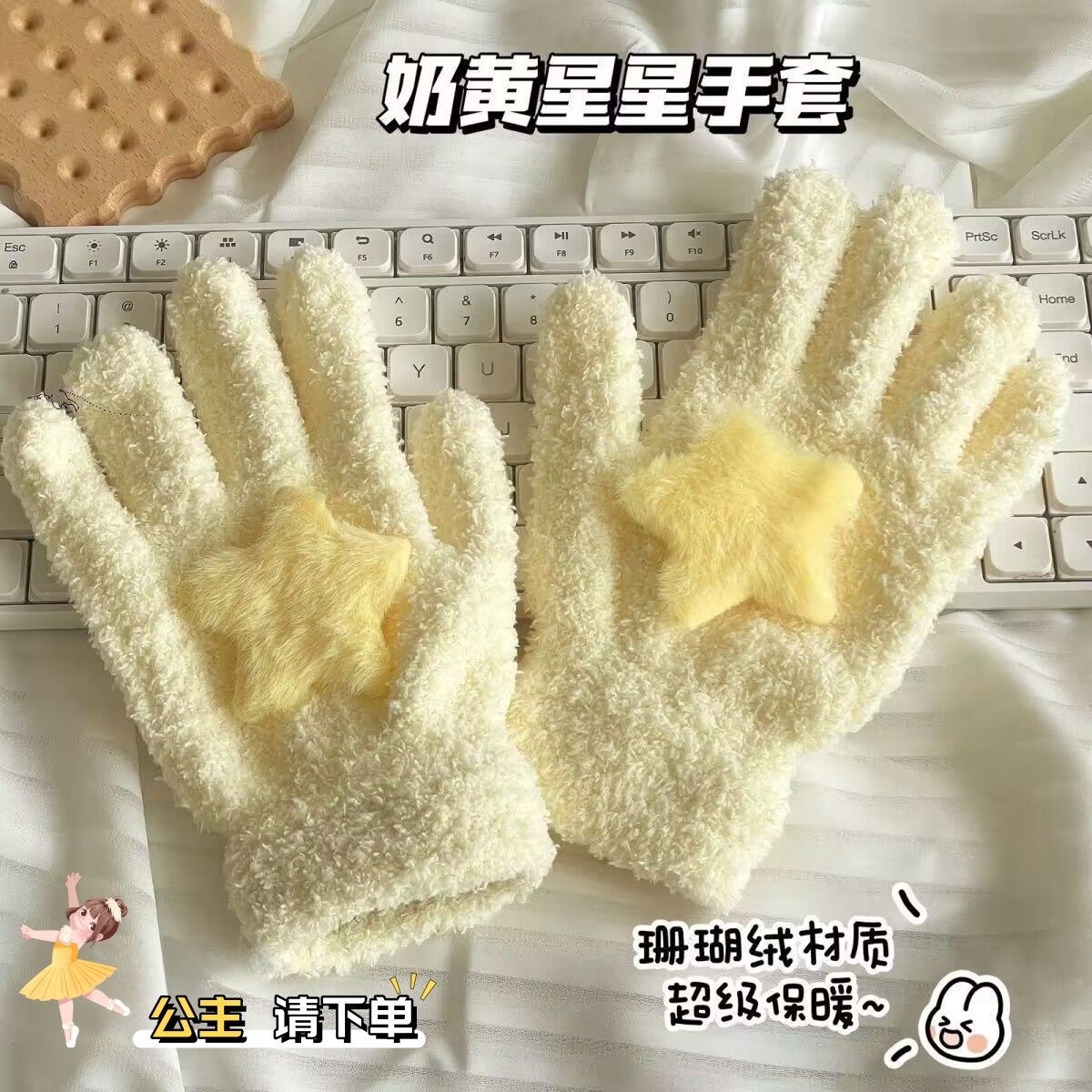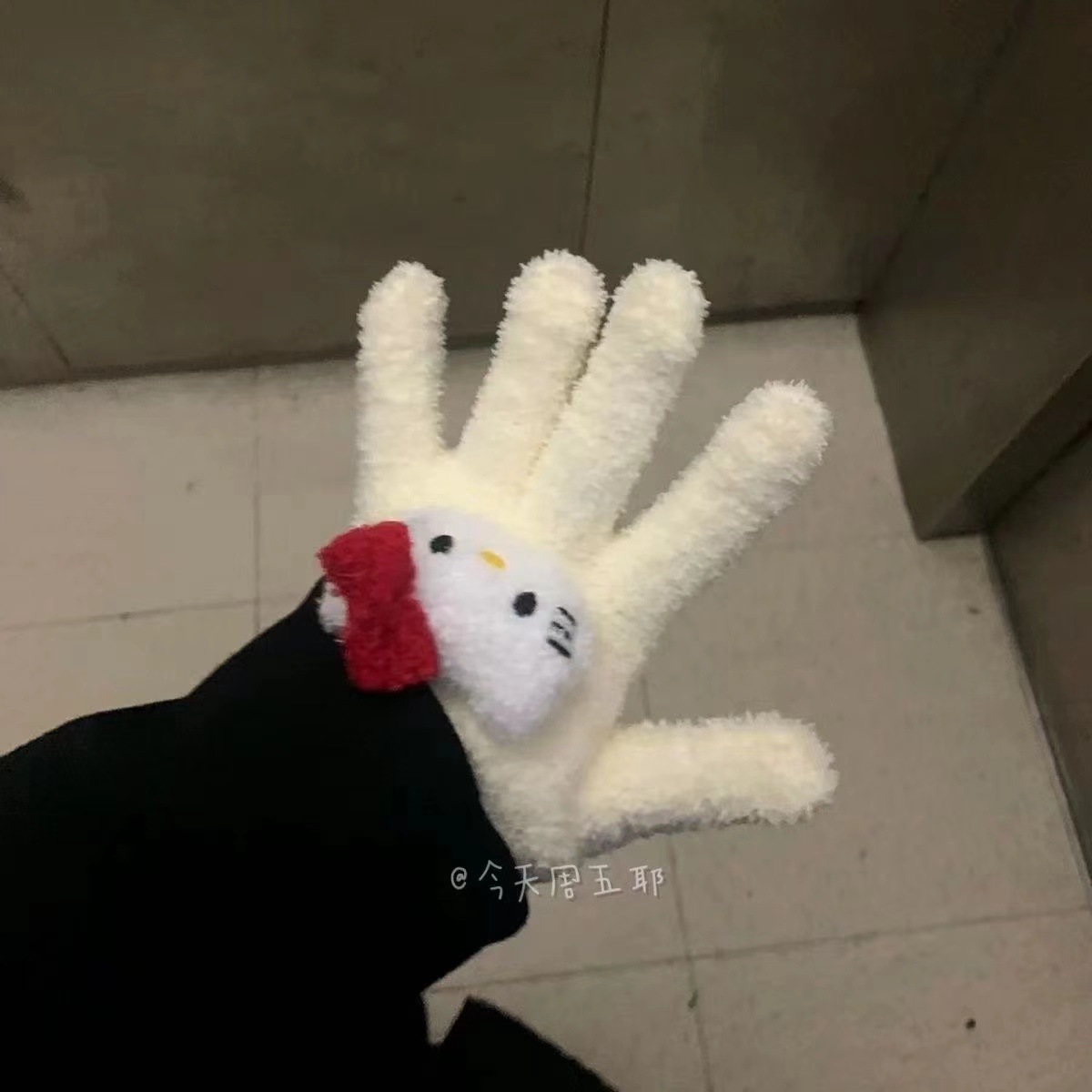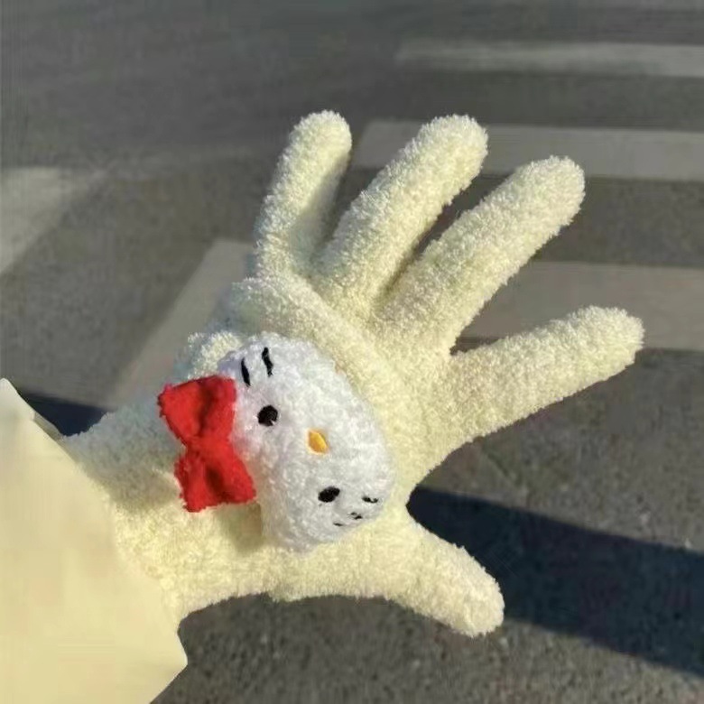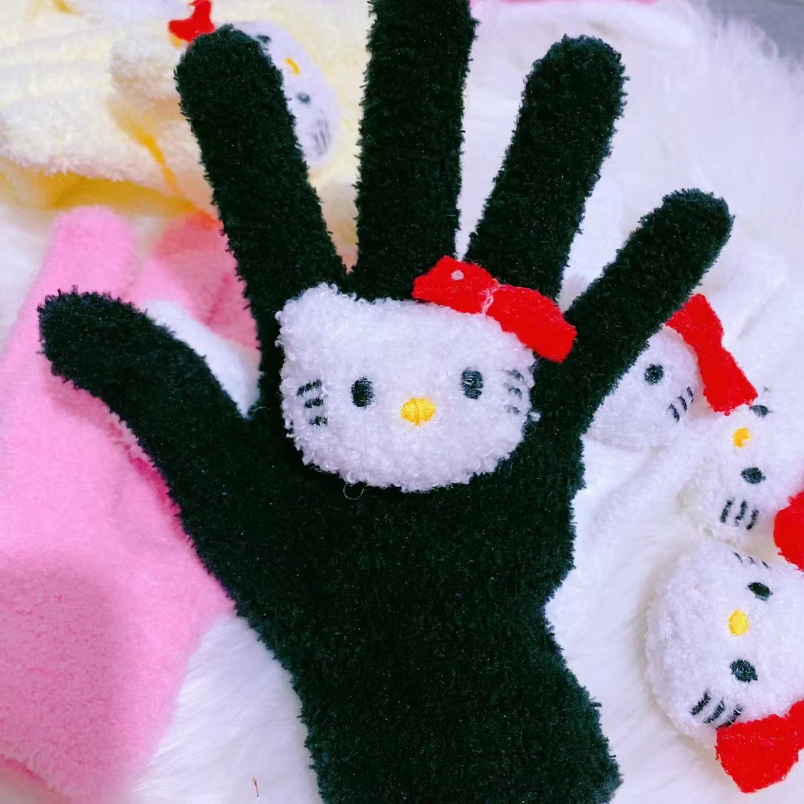 작은 빨간 책 사탕 색 고양이 키티 두꺼운 겨울 따뜻한 산호 양털 장갑스토어 가기