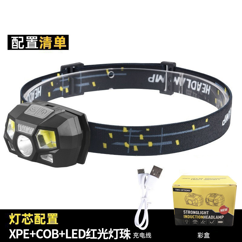 새로운 LED 유도 헤드 라이트 USB 충전식 야간 라이딩 조명 야외 낚시 강한 라이트 헤드 마운트 야간 낚시 헤드 라이트