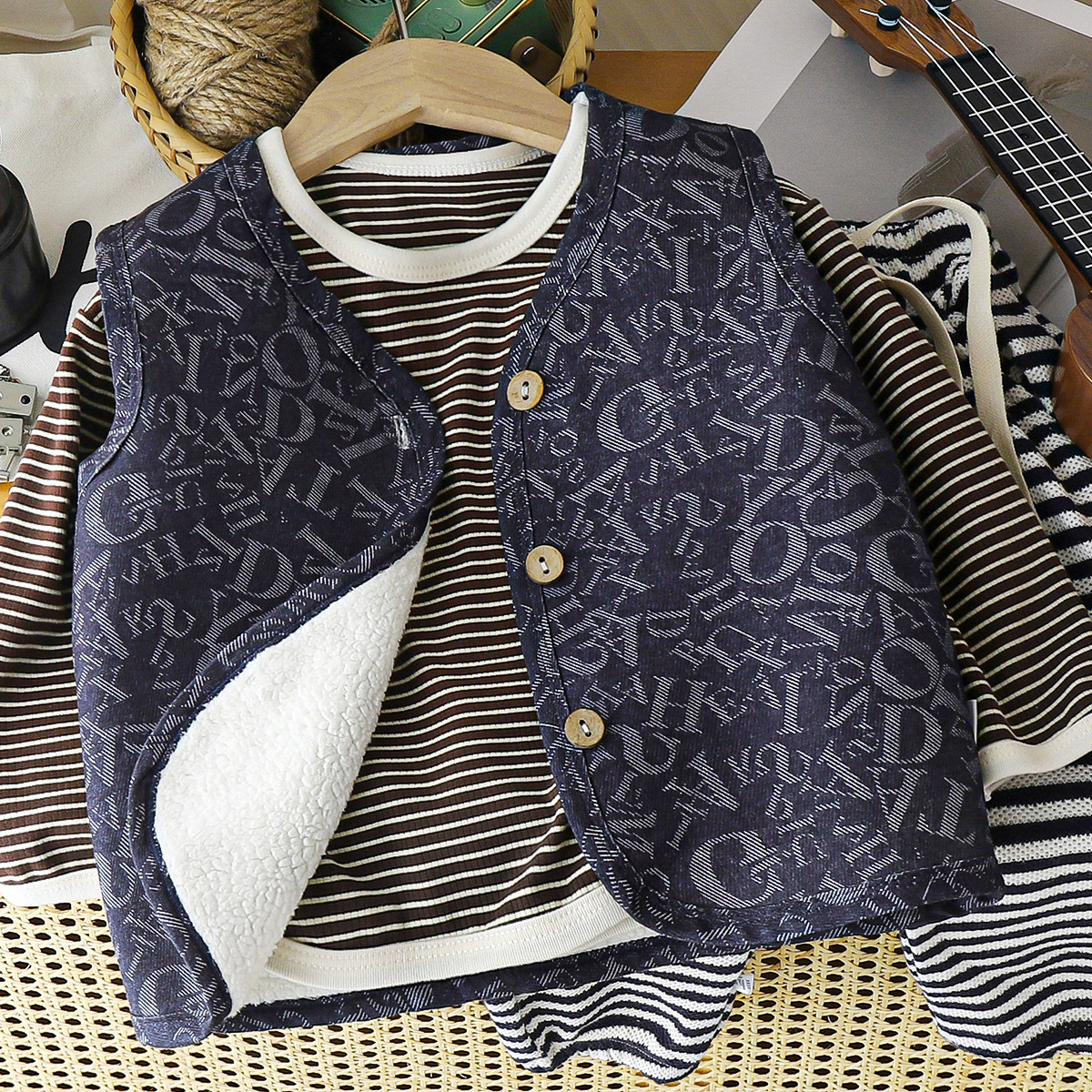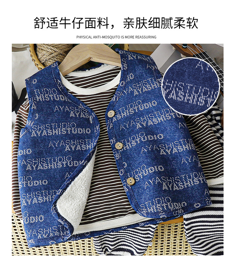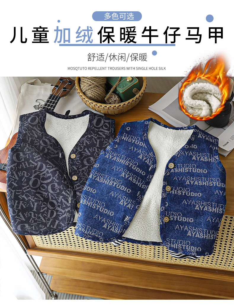 어린이 새 가을과 겨울 기모 두꺼운 외모 아기 조끼 소년 소녀 아기 조끼 허리 코트스토어 가기