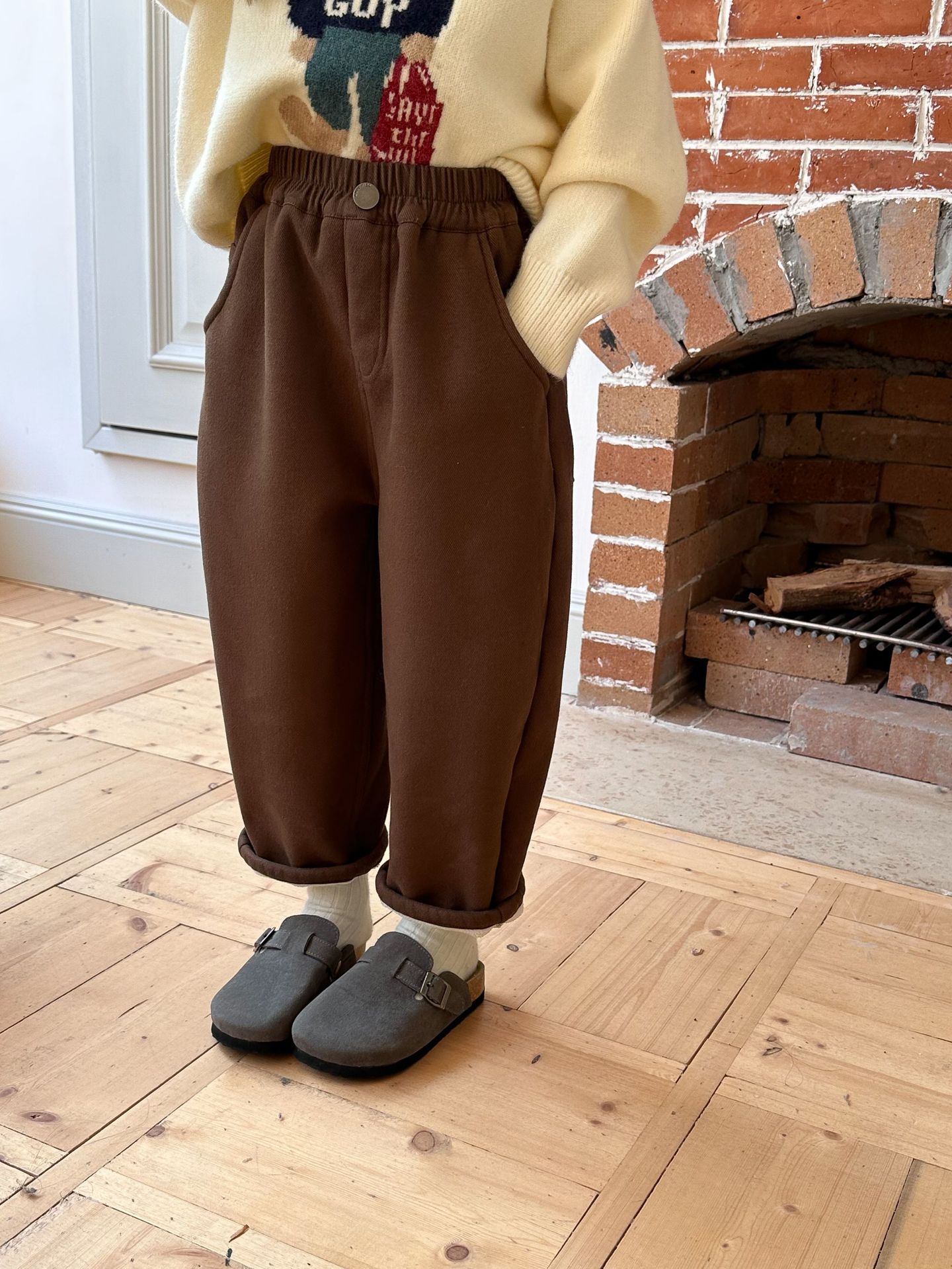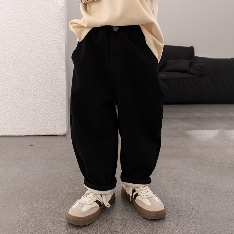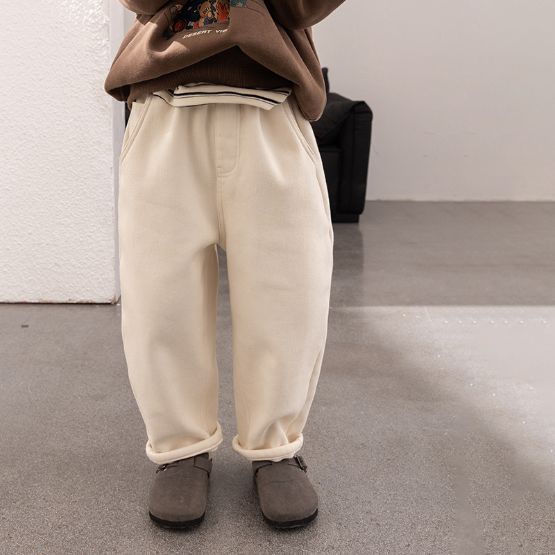남학생과 여자를위한 Emo Beibei 어린이 2024 년 겨울 두꺼운 캐주얼 바지 스트레치 코튼 복합 아오 그레인 벨벳 당근 바지