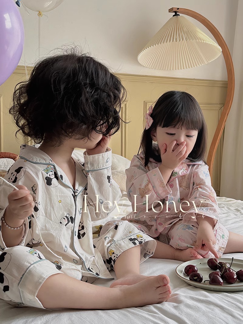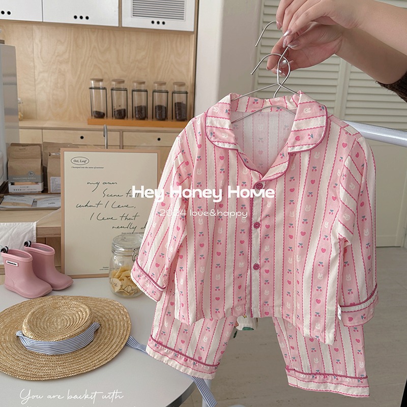 어린 이용 잠옷 봄과 가을 새로운 긴 소매 바지 세트 소년과 소녀 귀여운 만화 아기 캐주얼 홈 옷스토어 가기