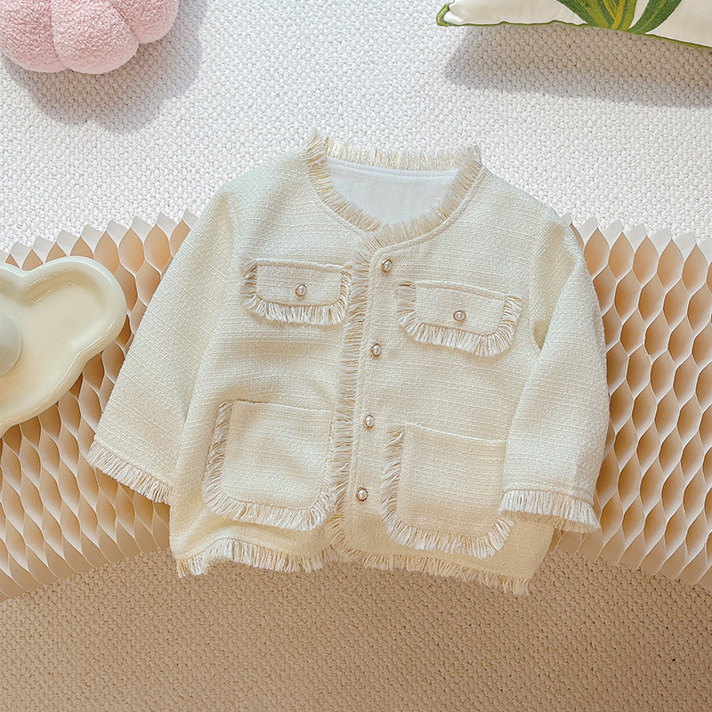여자 코트 2024 새로운 인터넷 온천과 가을 한국 스타일 아기 소녀 세련된 패션 샤넬 스타일 트렌디 한 어린이 탑스토어 가기