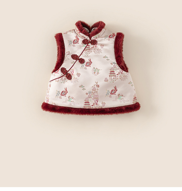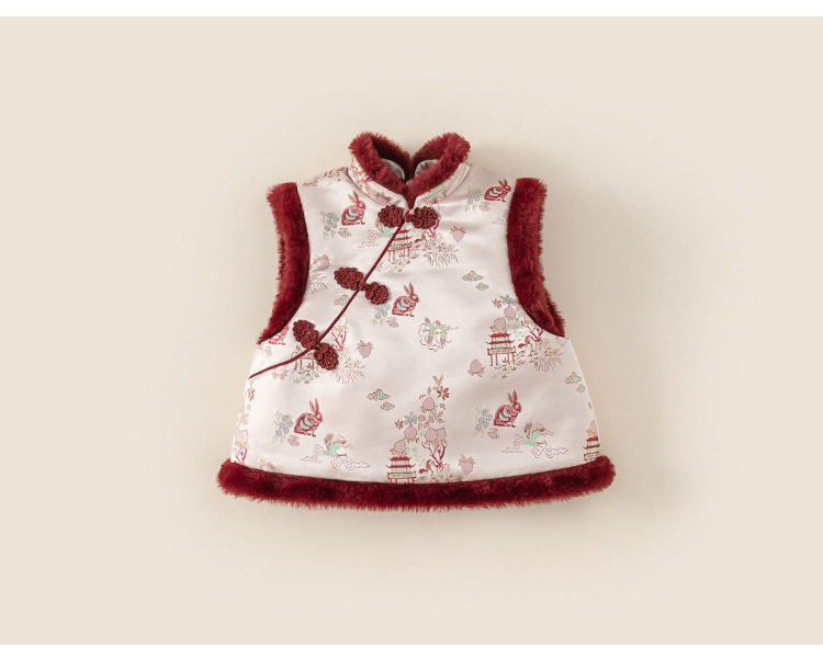 유바오 아동복 여아 청삼 조끼 겨울 새 도착 기모 두꺼운 여자 설날 따뜻한 조끼 따뜻한 조끼스토어 가기