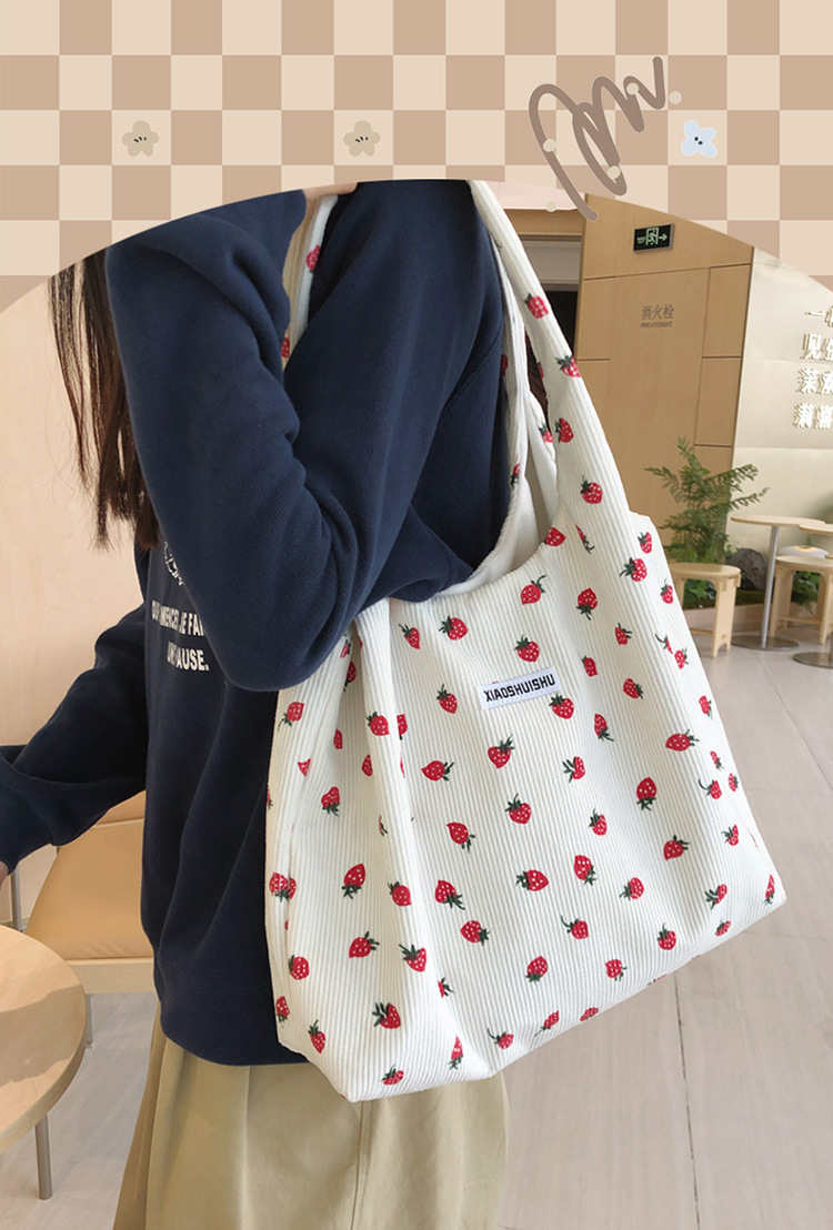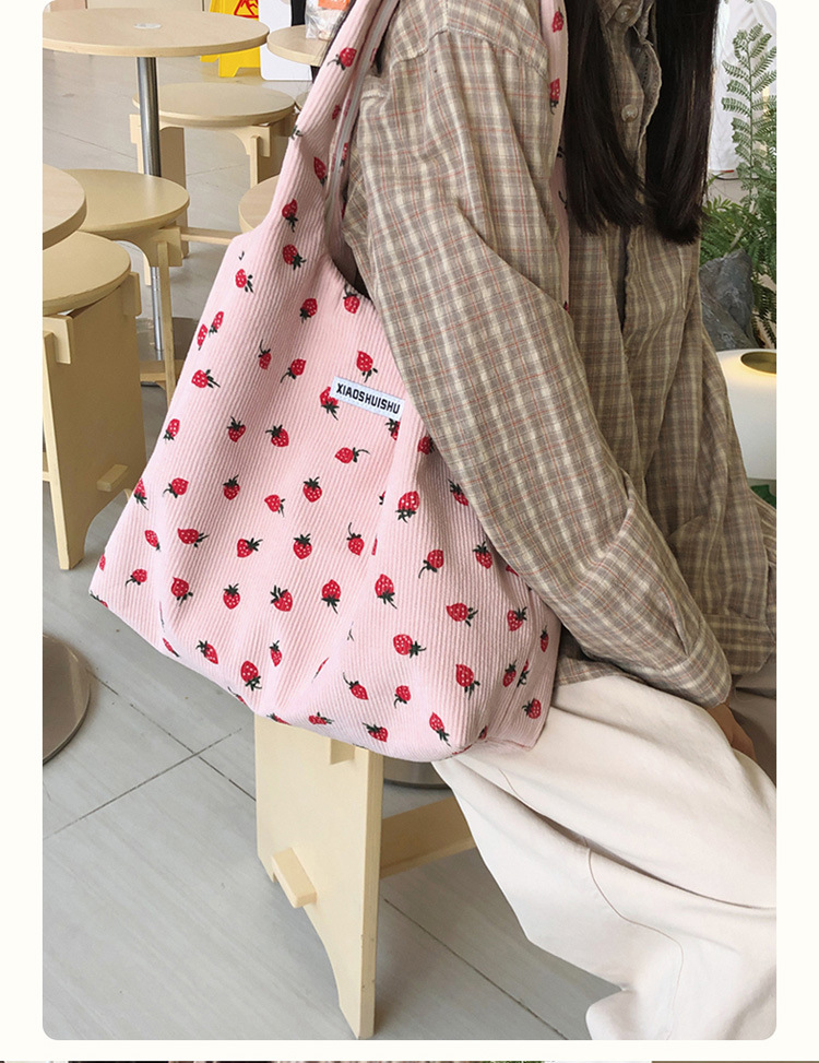 Corduroy 가방 패션 새로운 어깨 대용량 핸드백 통근 예술적 올매치 인쇄 언더암 토트 백스토어 가기