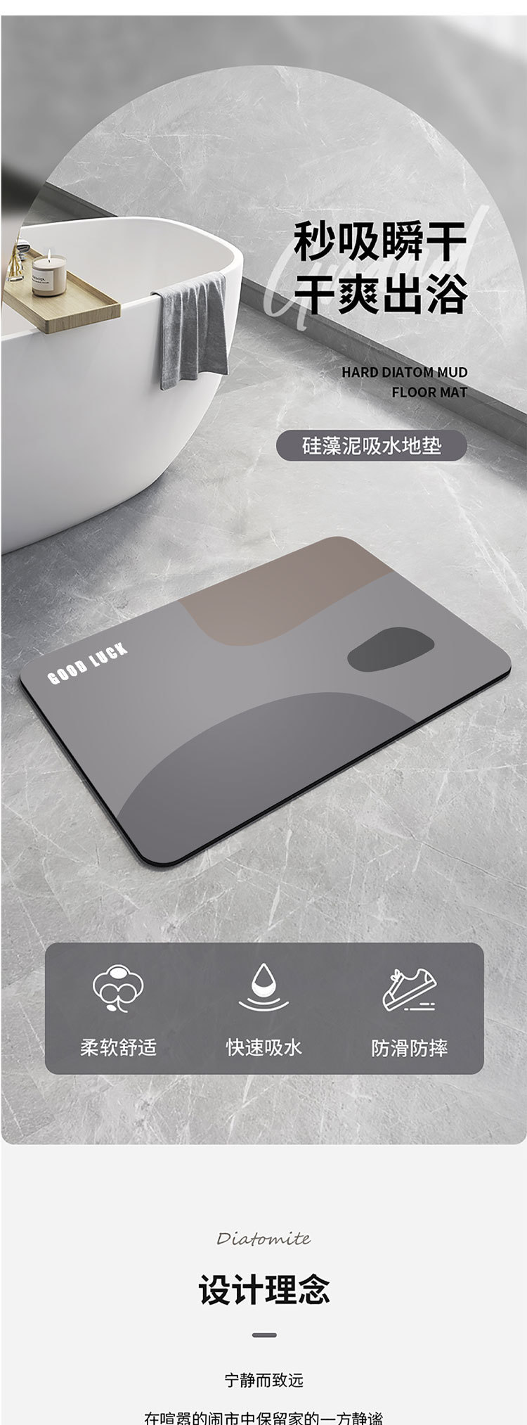 규조토 발매트 심플 욕실 화장실 발매트 가정용 욕조 옆 세면대 흡수성 도매 흡수 빠른 건조스토어 가기