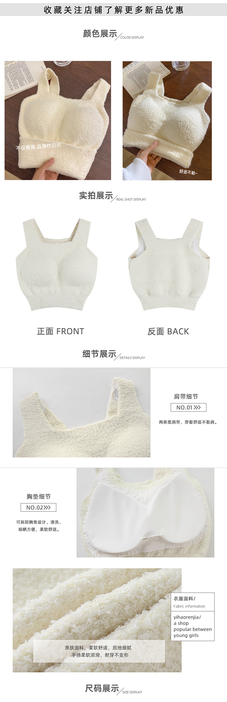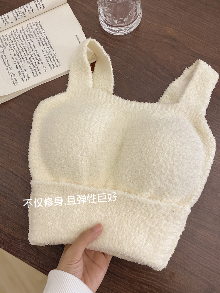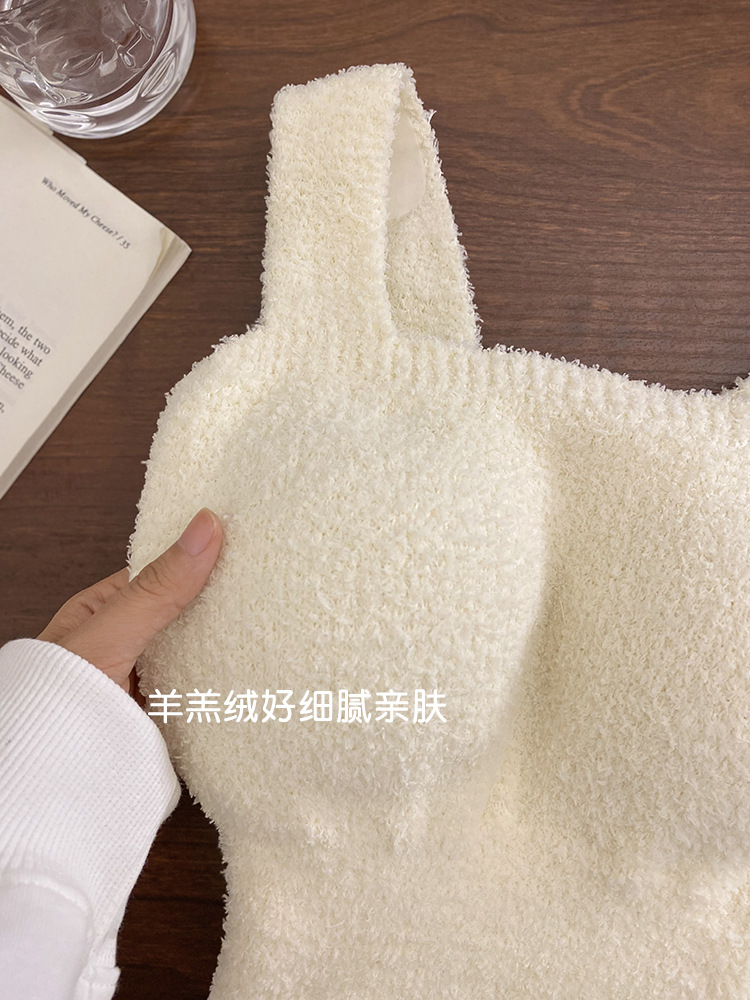 따뜻한 양모 봉제 작은 Camisole Outer 여성용 가을과 겨울 가슴 패드와 함께 두꺼운 짧은 내부 캐시미어 탑스토어 가기