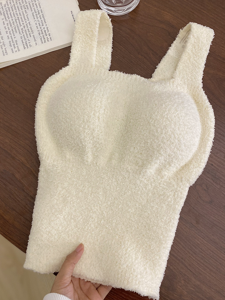 따뜻한 양모 봉제 작은 Camisole Outer 여성용 가을과 겨울 가슴 패드와 함께 두꺼운 짧은 내부 캐시미어 탑