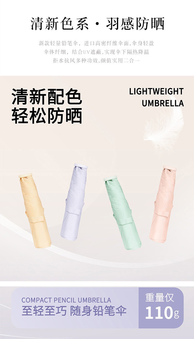 새로운 스타일의 통풍이 잘되는 초경량 깃털 우산, 자외선 차단, 휴대성, 햇볕과 비에 겸용, 컬러풀한 연필 우산스토어 가기
