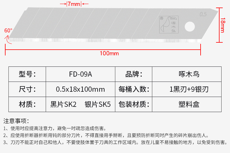 • 09A 블레이드 1박스(나이프 홀더 포함)