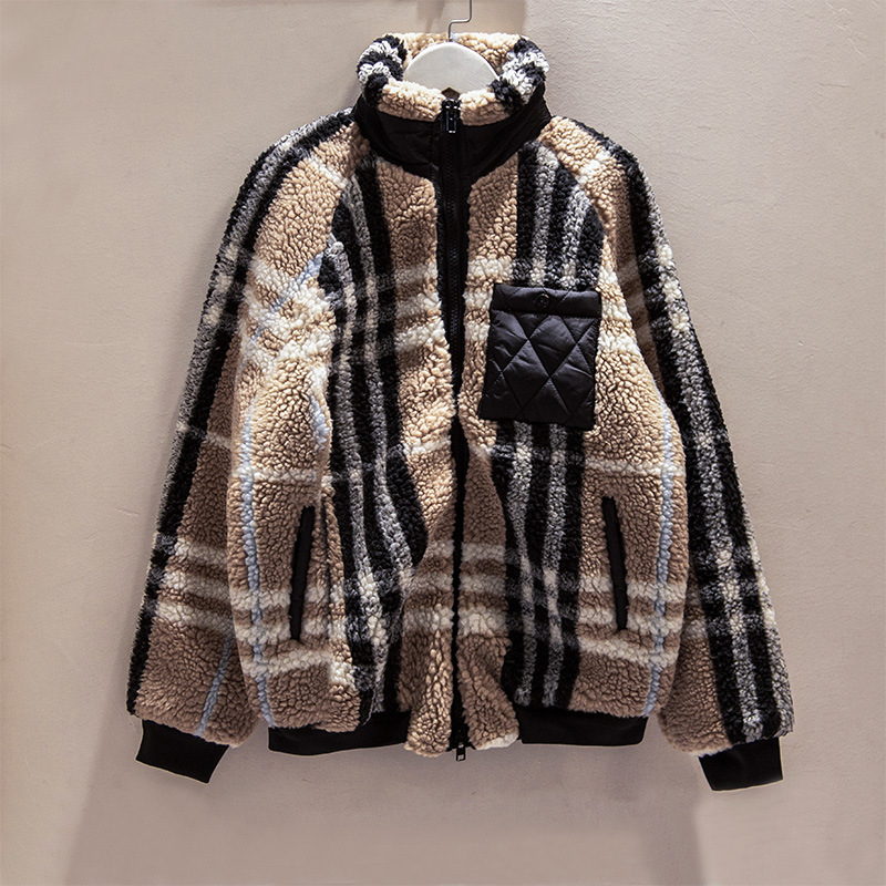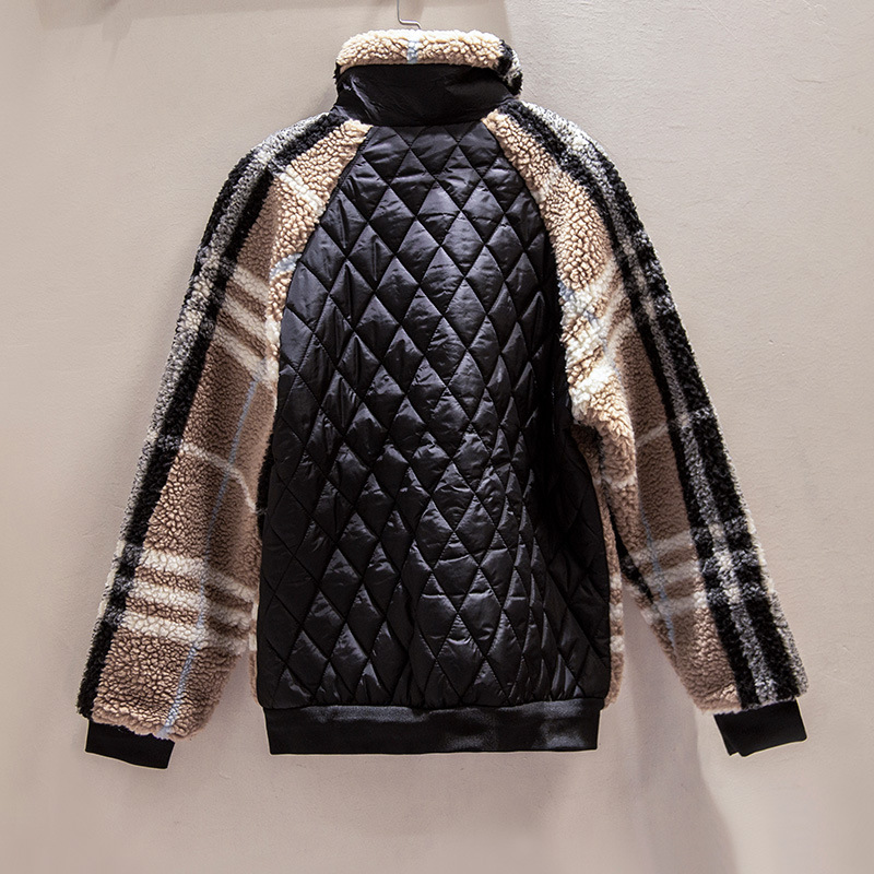 특별 제공 유행 양모 격자 무늬 지퍼 재킷 여성면 패딩 2024 겨울 새로운 따뜻한 두꺼운 재킷스토어 가기