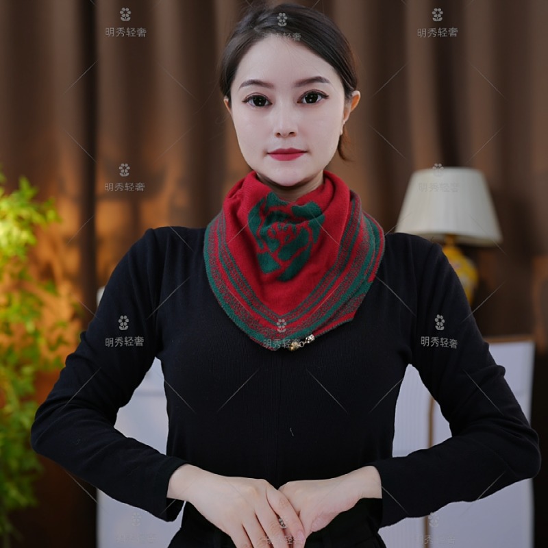 가을과 겨울 새로운 유행 우아한 한국 스타일 올 매치 니트 동백 컬러 매칭 마그네틱 버클 삼색 스카프스토어 가기