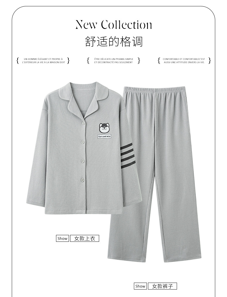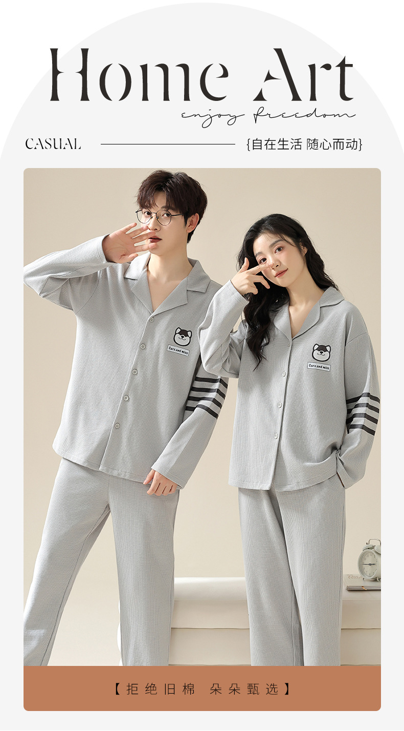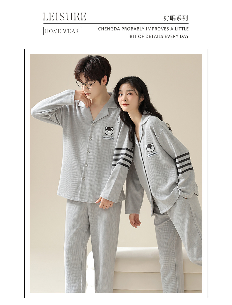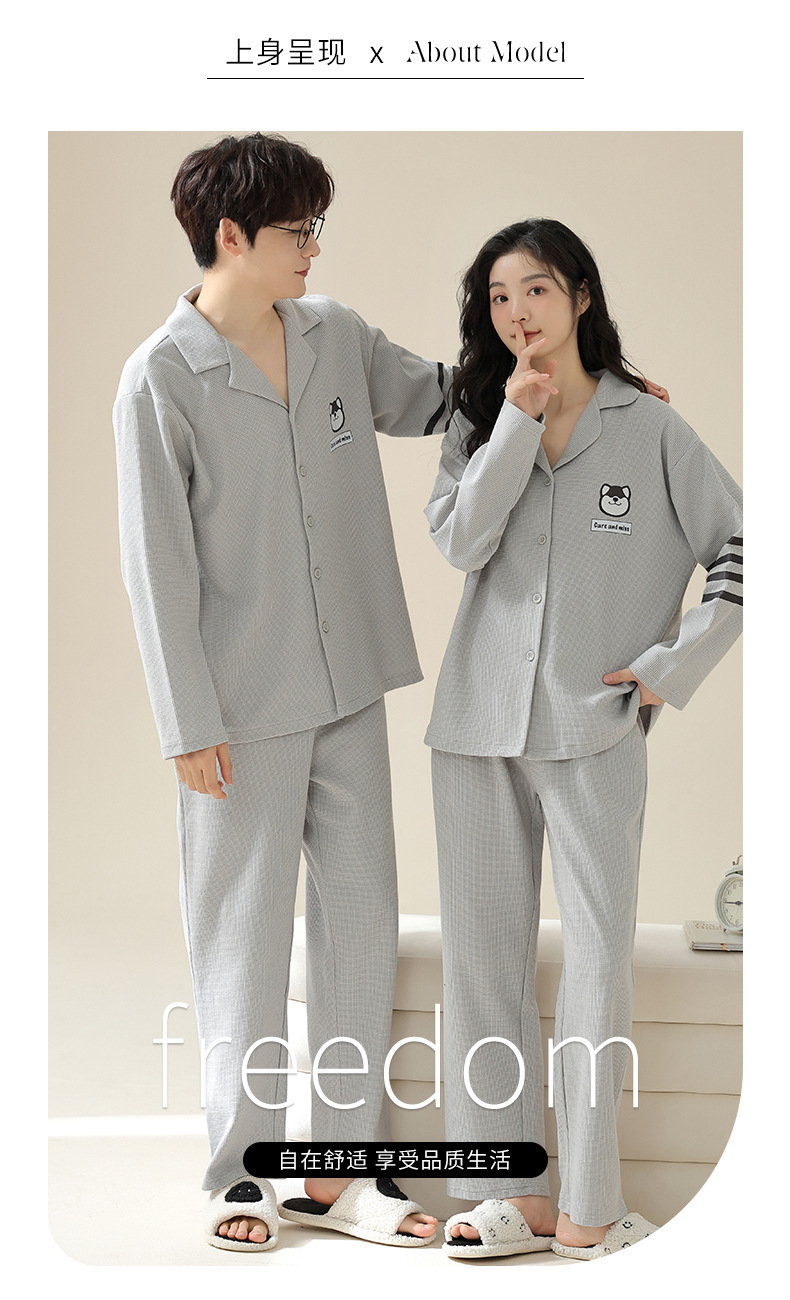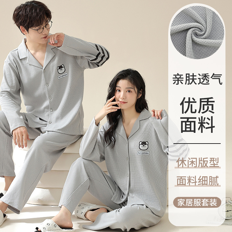 2024 가을 새로운 도착 와플 러 가을 커플 잠옷 긴 소매 세트 홈 옷 만화 남자 얇은 봄