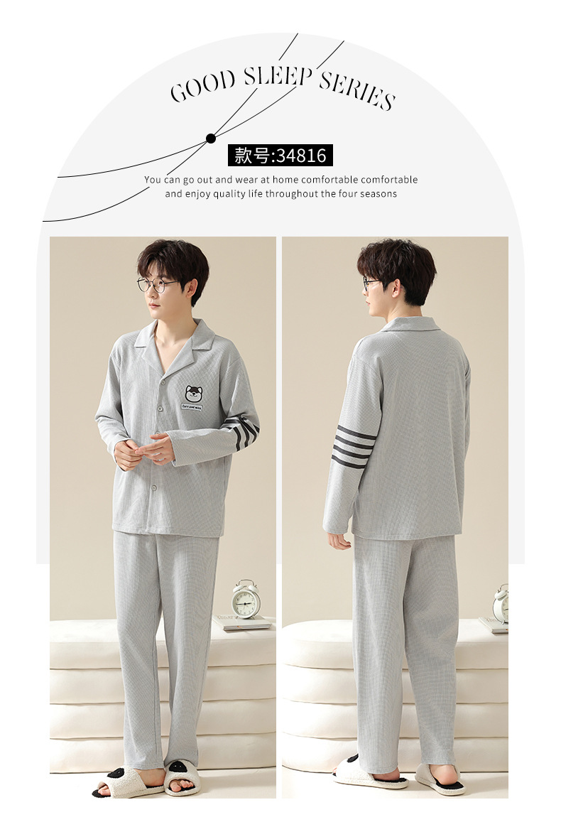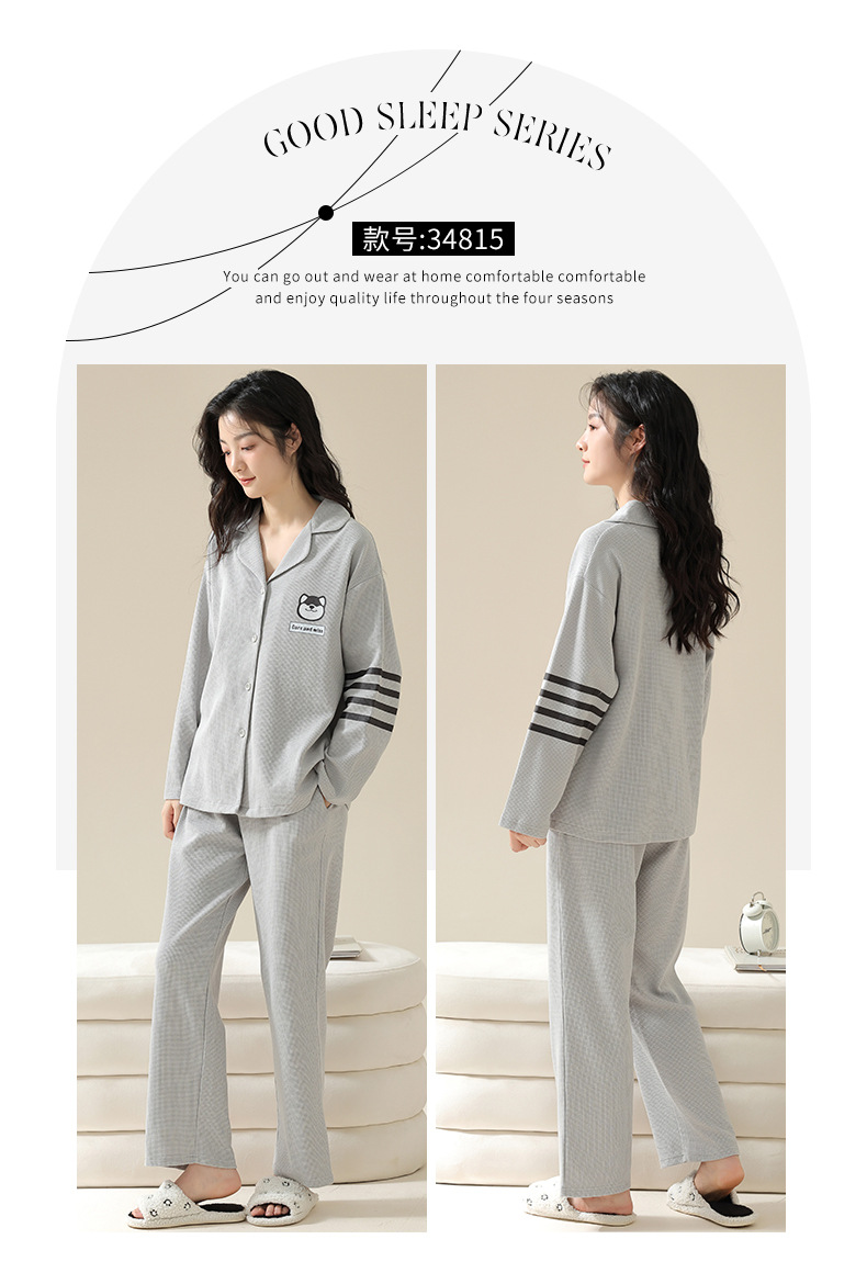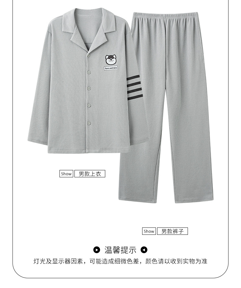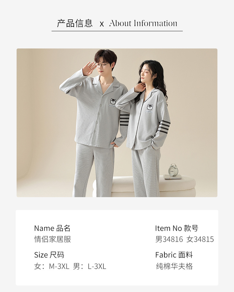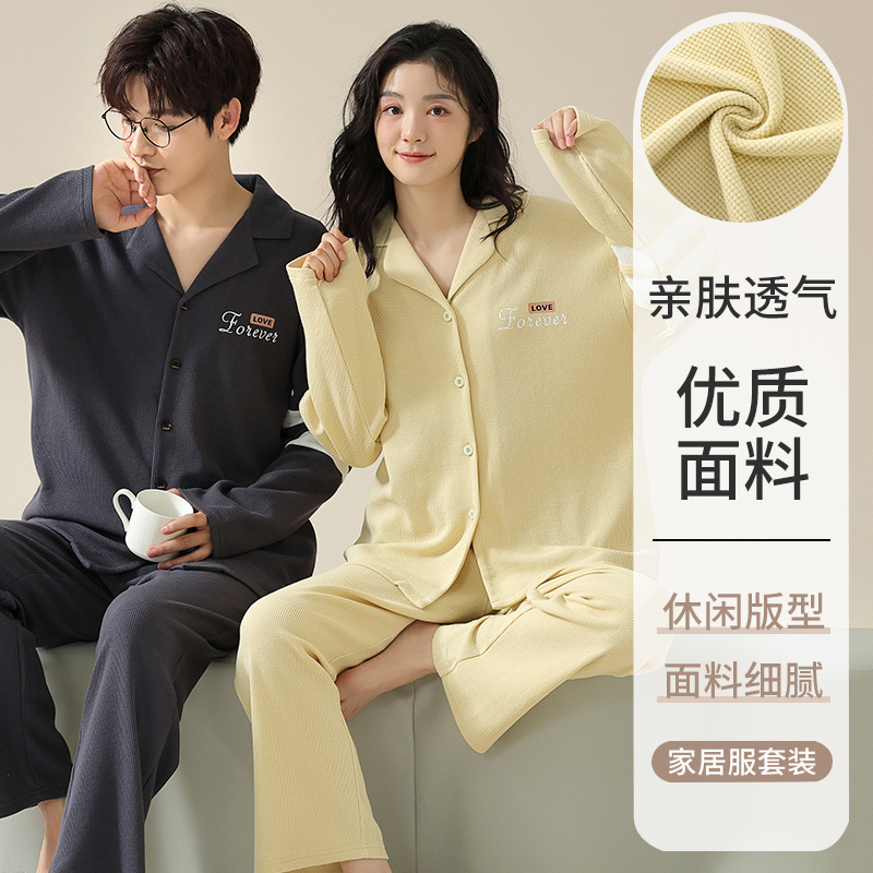 2024 가을 새로운 도착 와플 러 가을 커플 잠옷 긴 소매 세트 홈 옷 만화 남자 얇은 봄