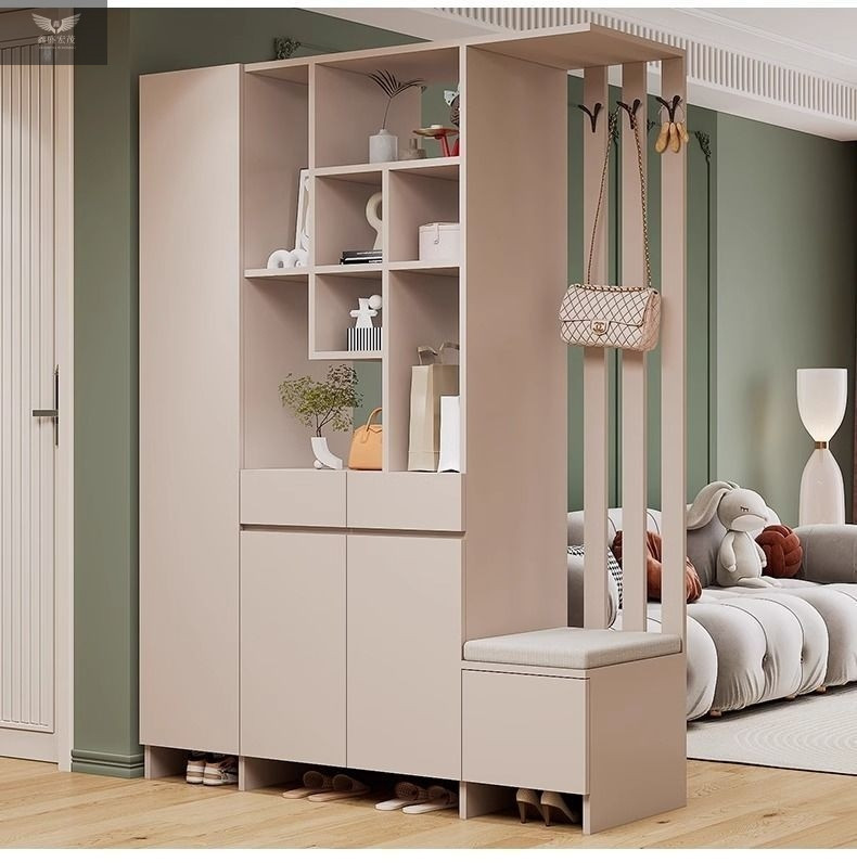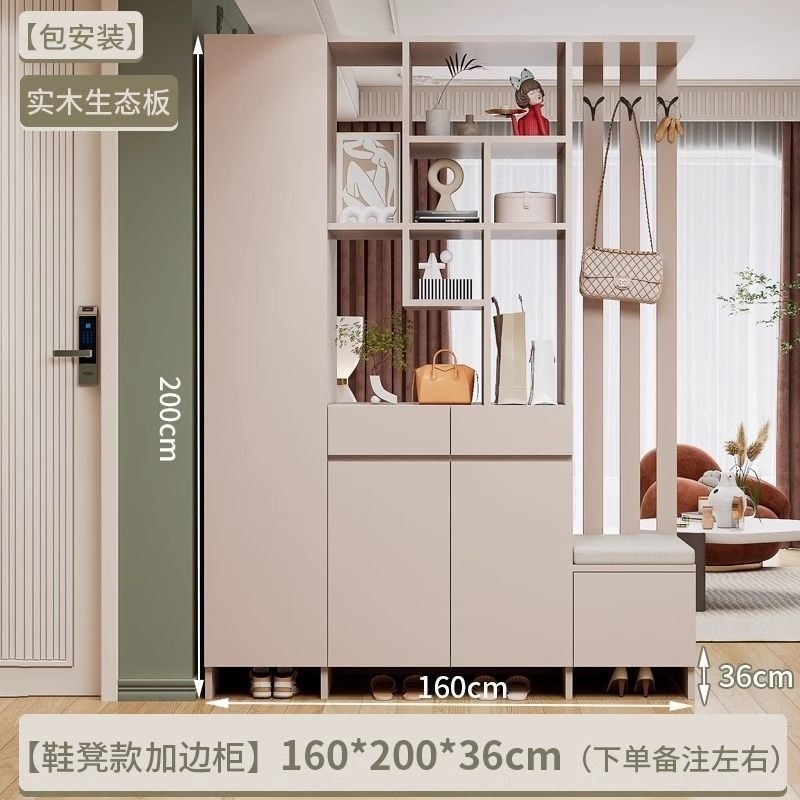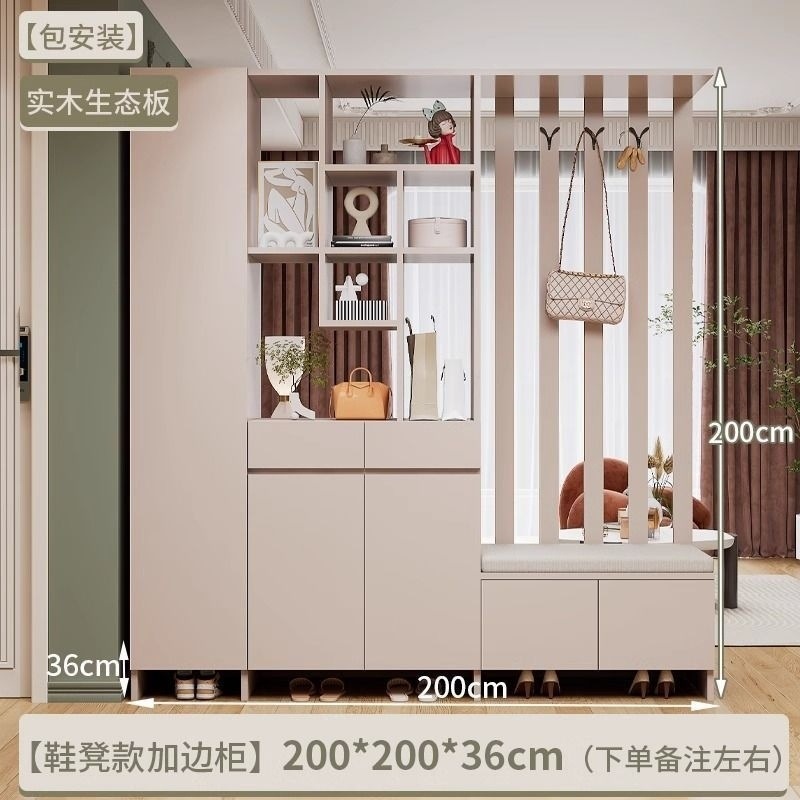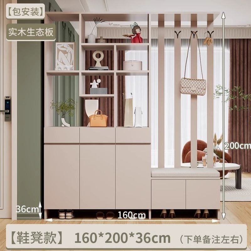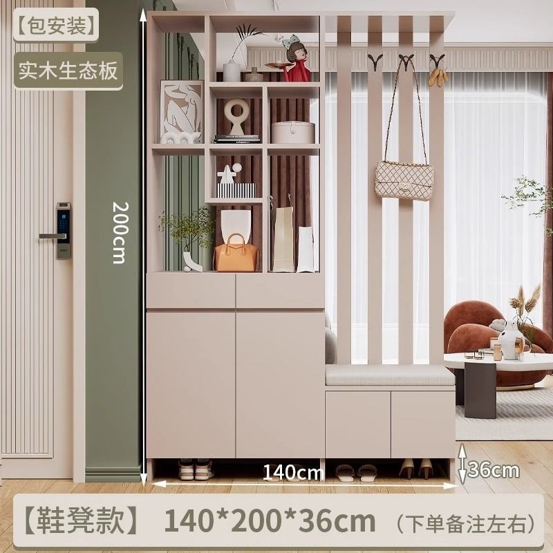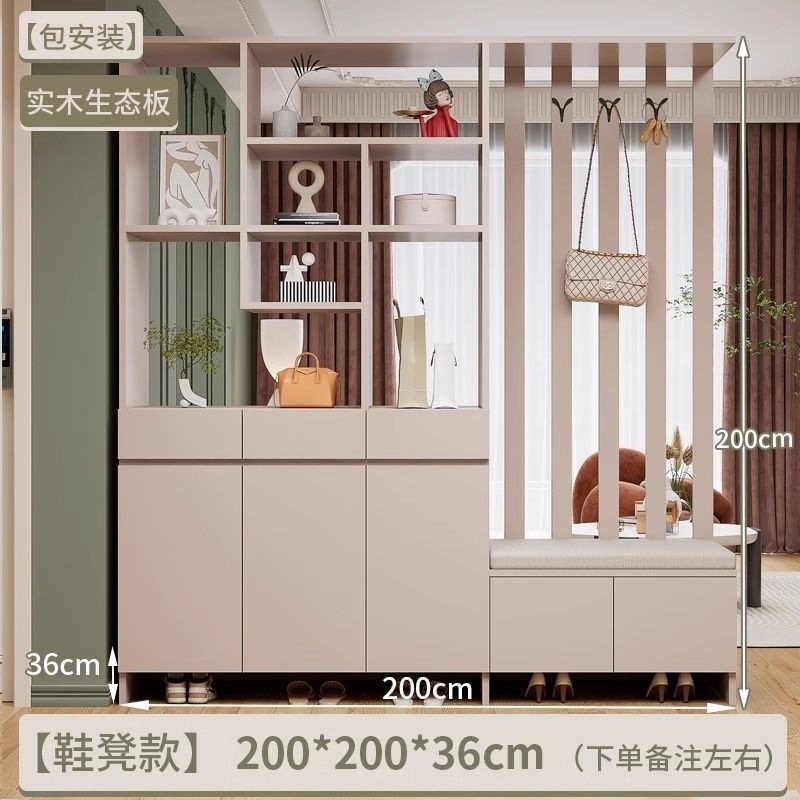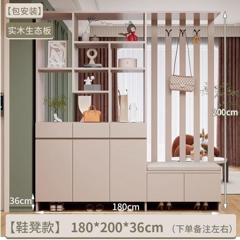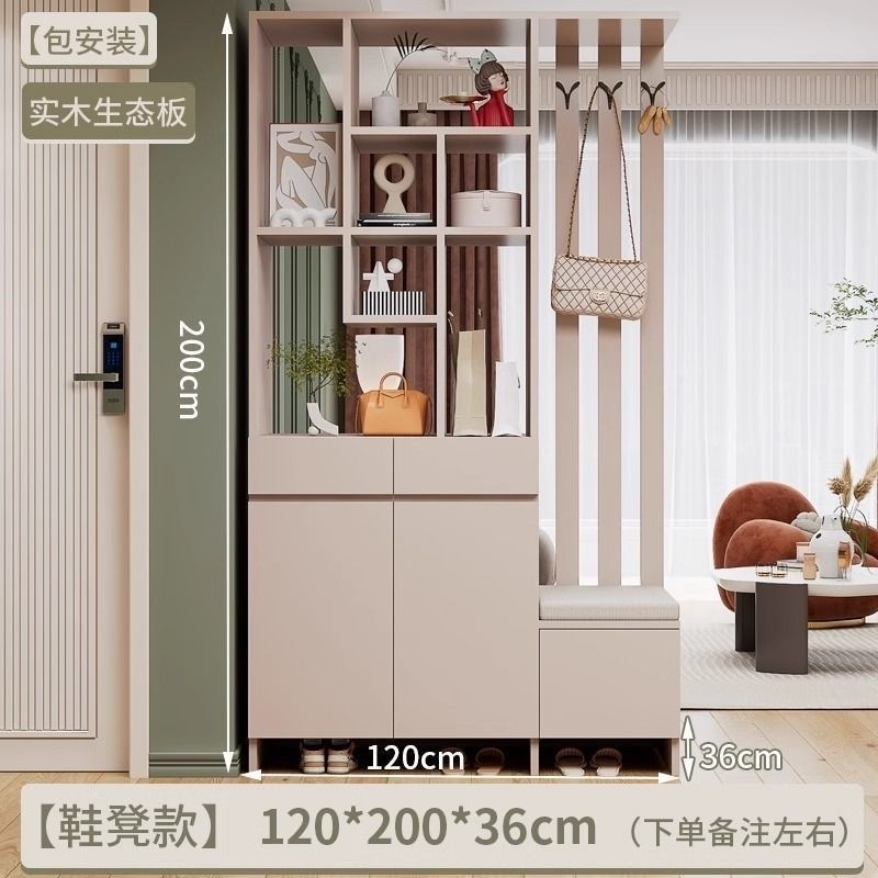玄关进门鞋柜一体简约现代入户玻璃屏风客厅酒柜轻奢门厅实木隔断