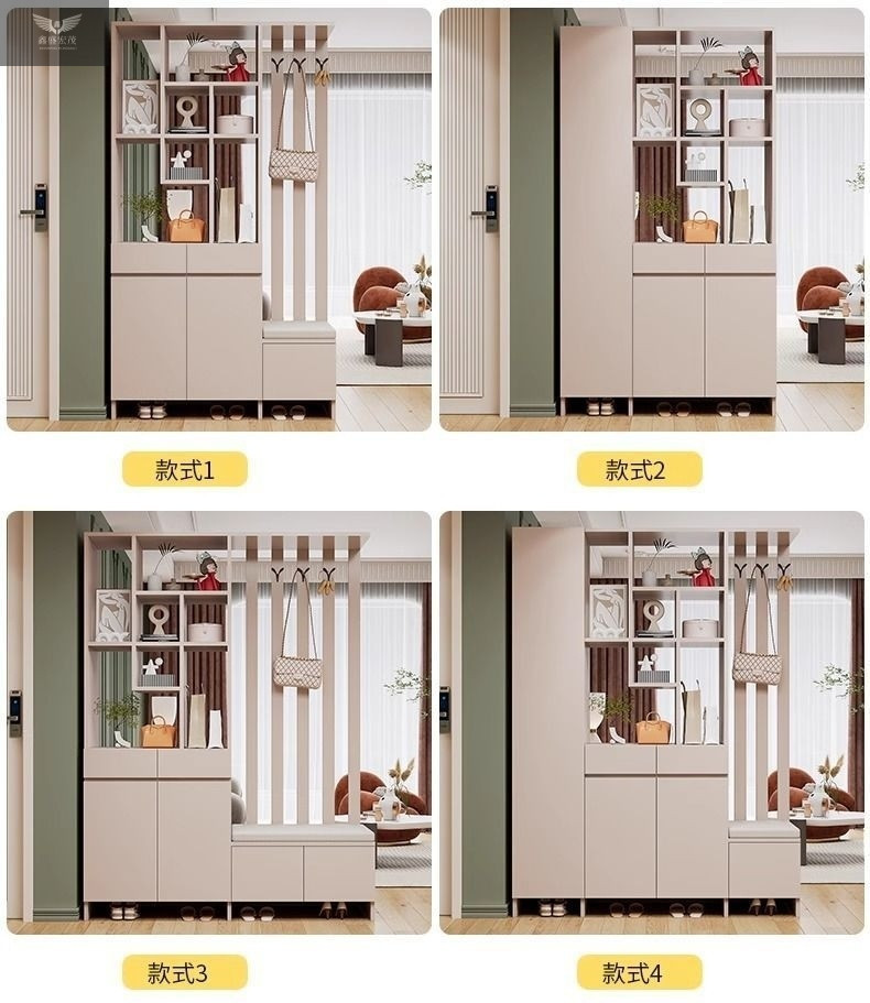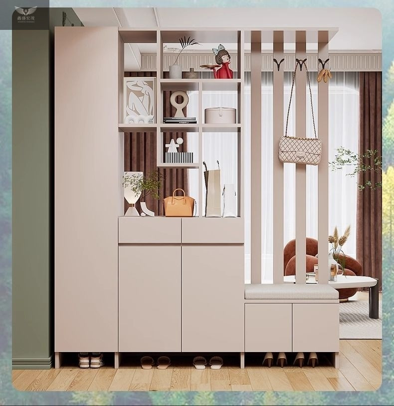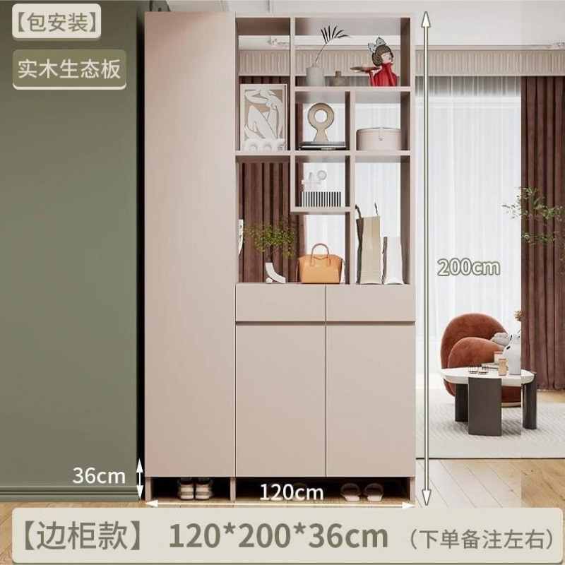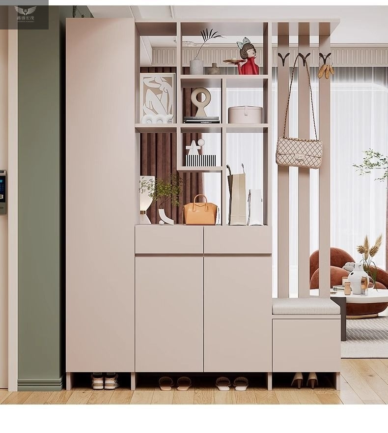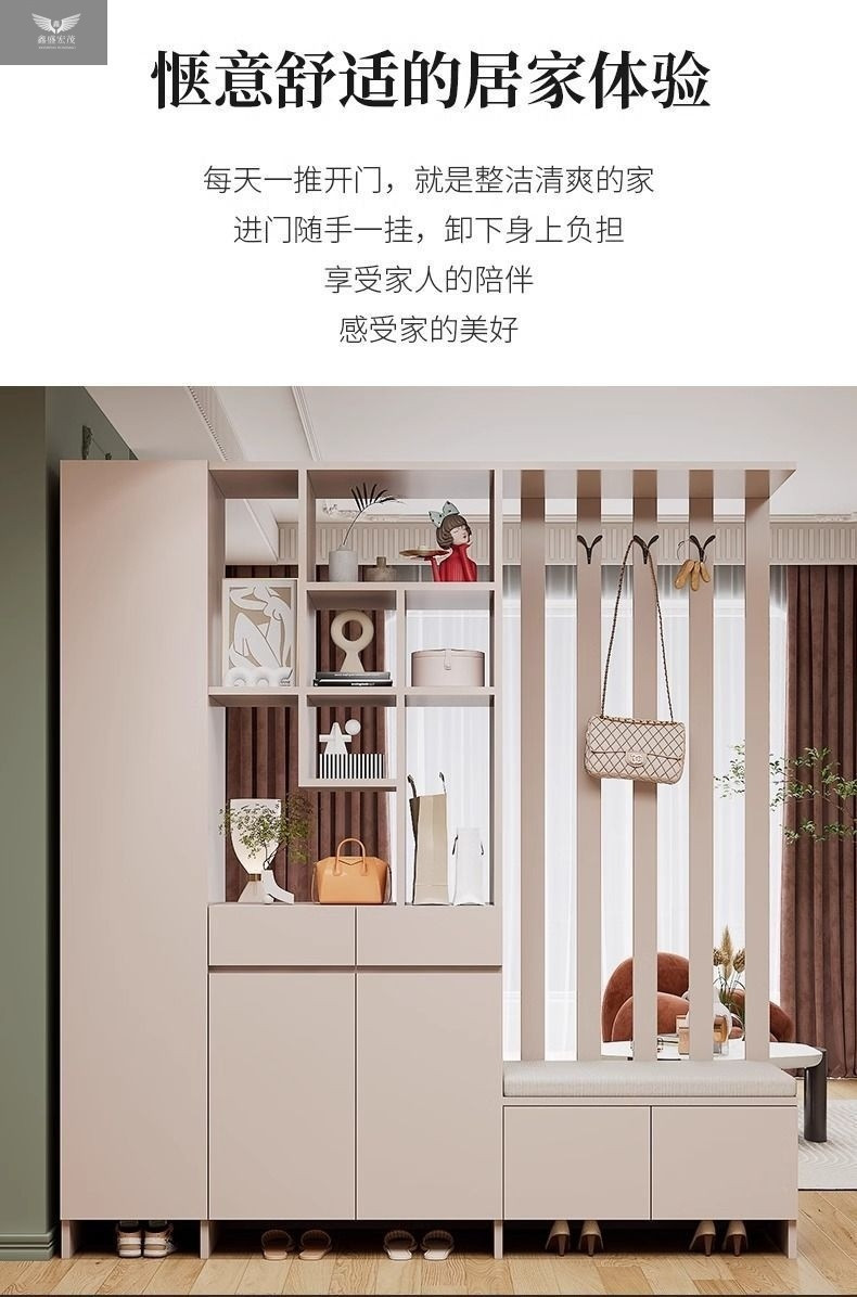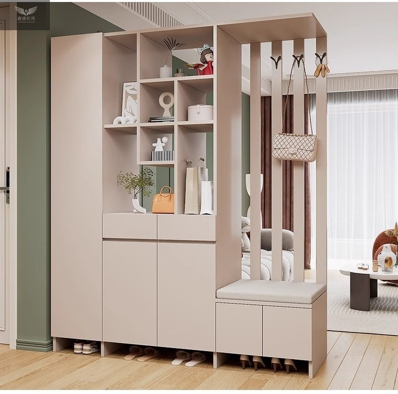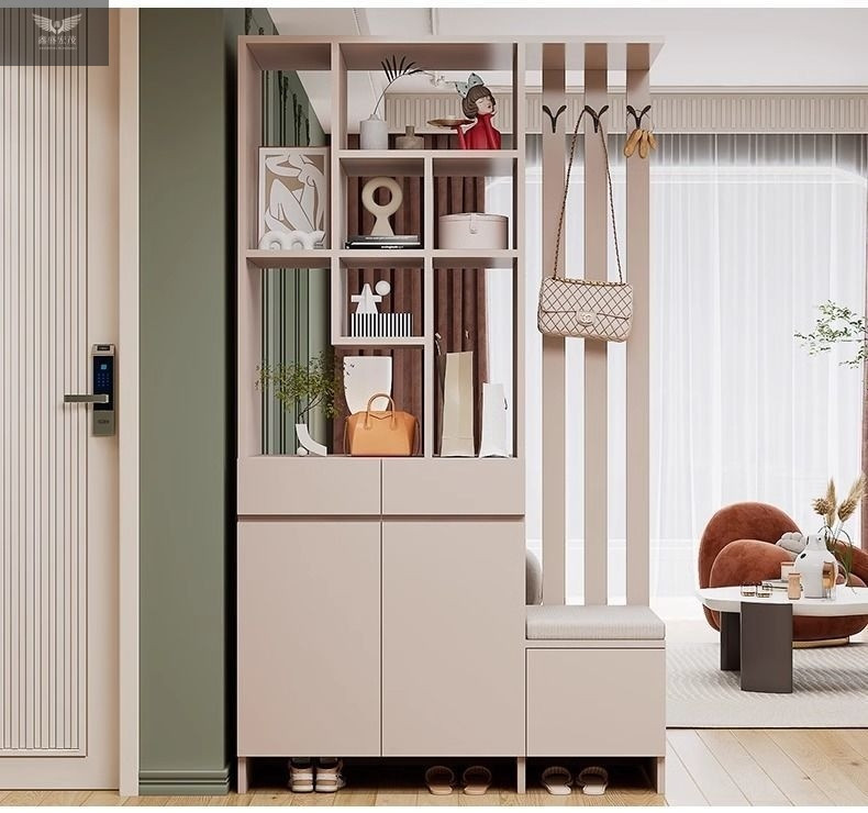 玄关进门鞋柜一体简约现代入户玻璃屏风客厅酒柜轻奢门厅实木隔断