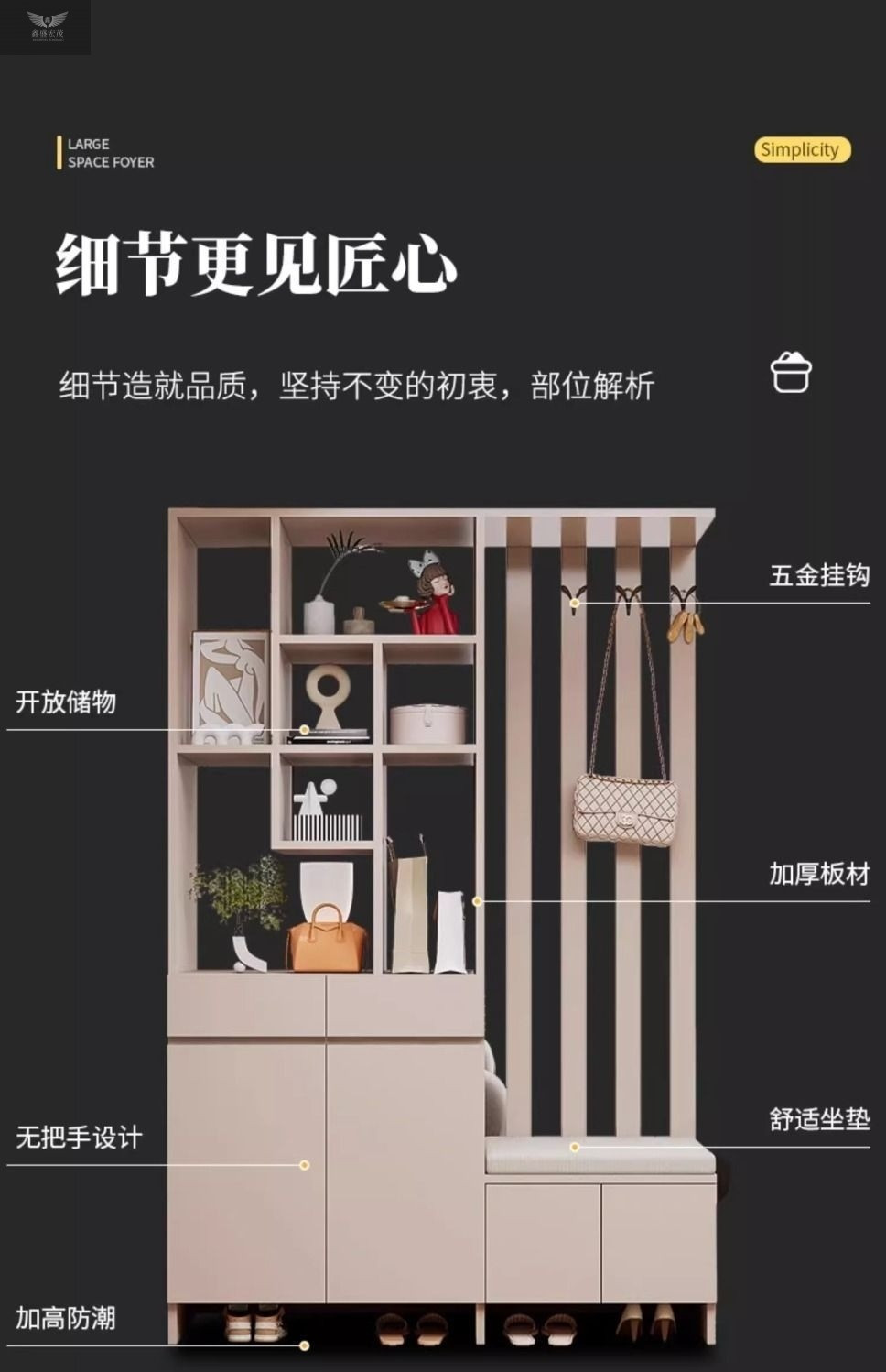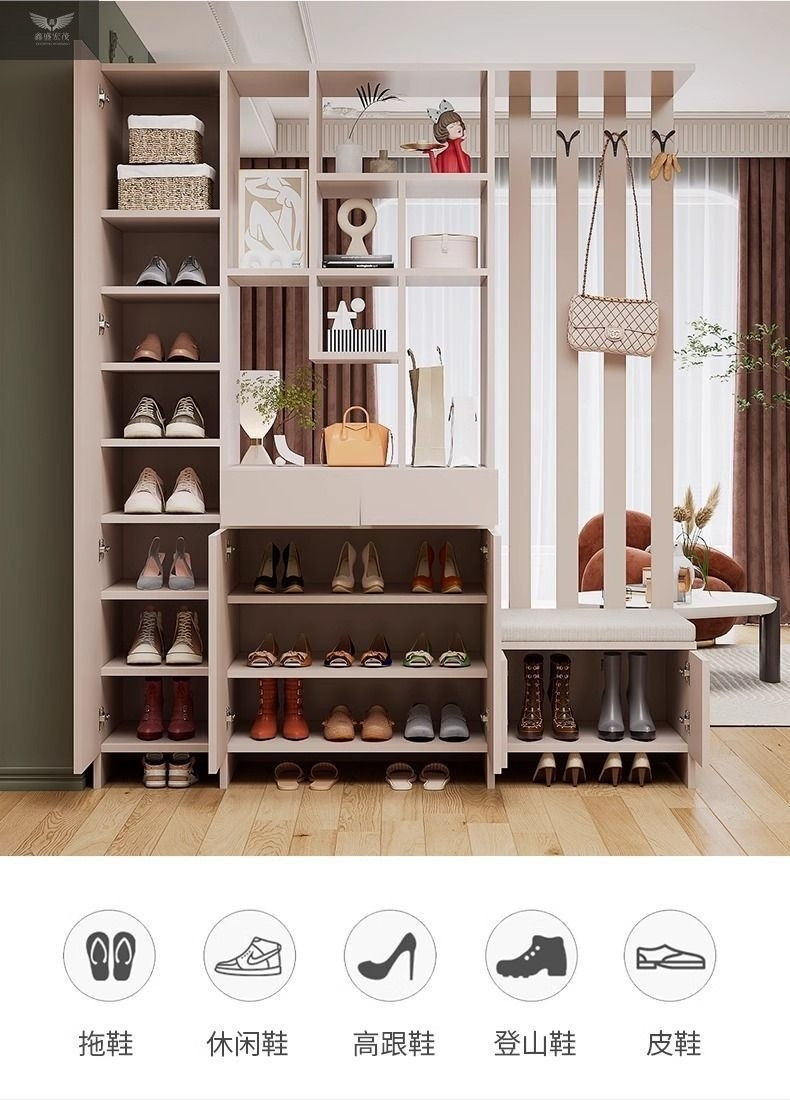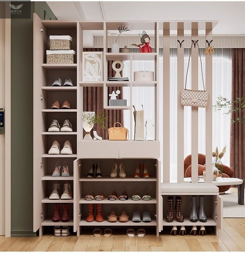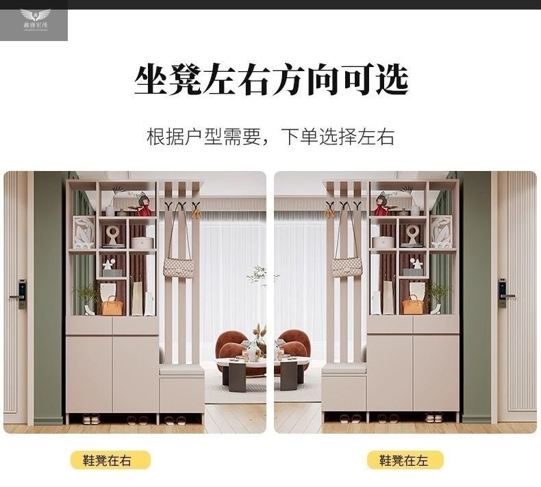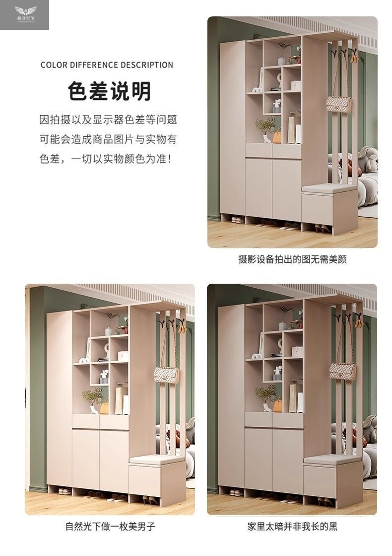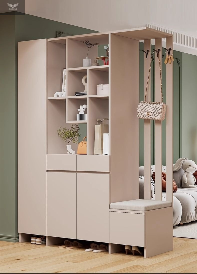 玄关进门鞋柜一体简约现代入户玻璃屏风客厅酒柜轻奢门厅实木隔断