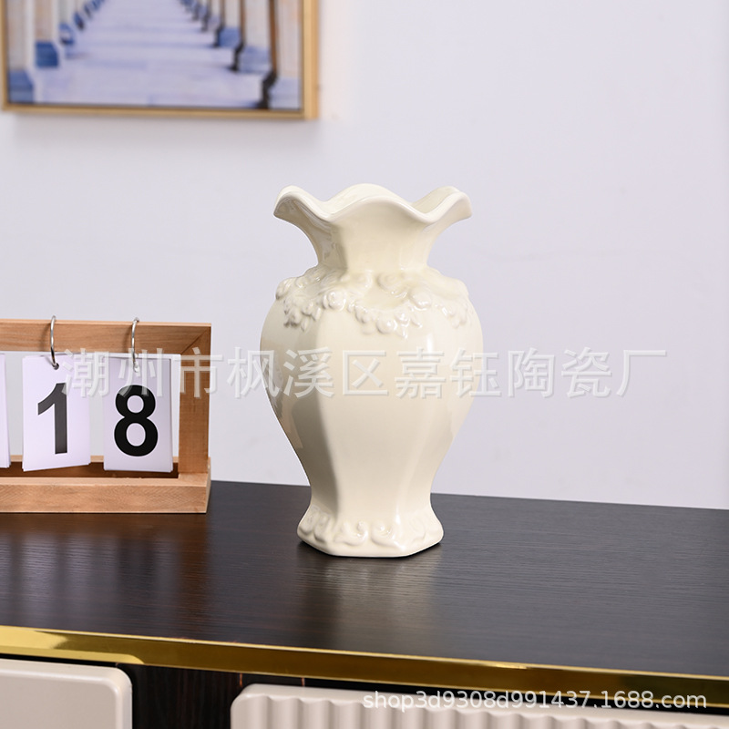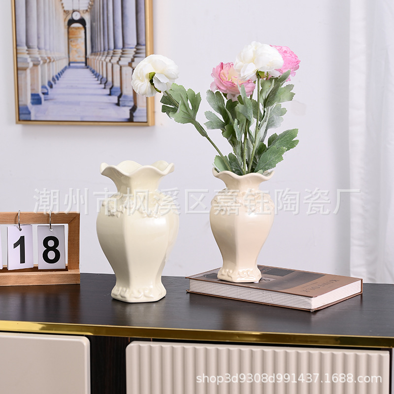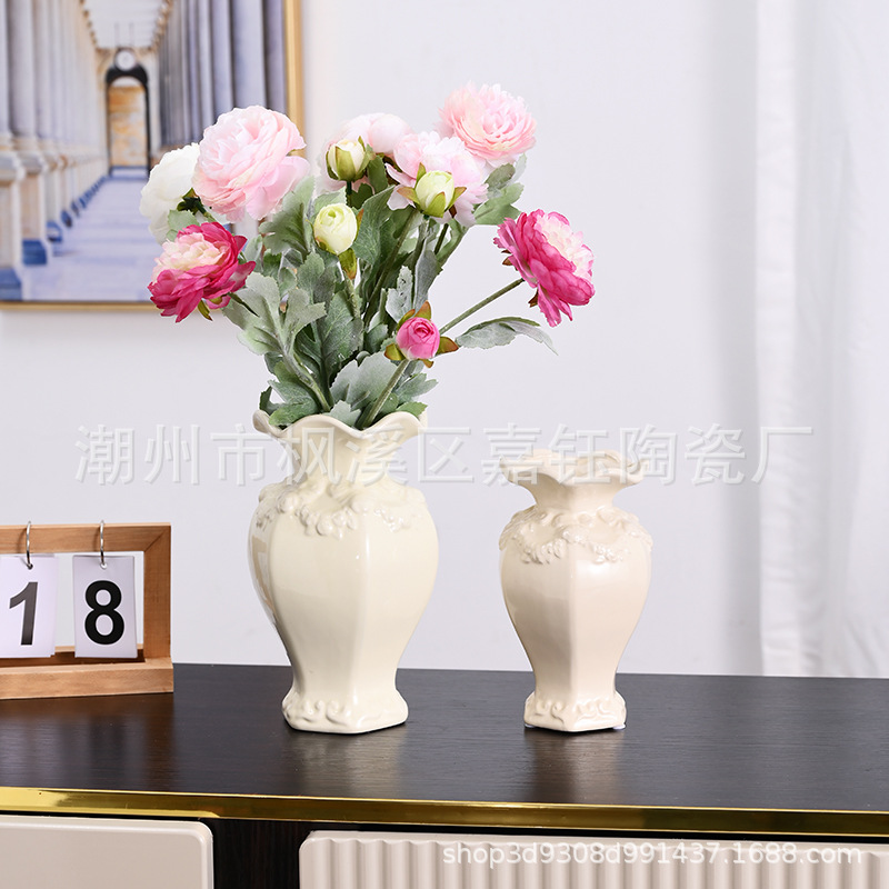 프랑스 펜턴 세라믹 꽃병 흰색 하이 엔드 스타일 복고풍 창조적 인 거실 꽃꽂이 테이블 장식