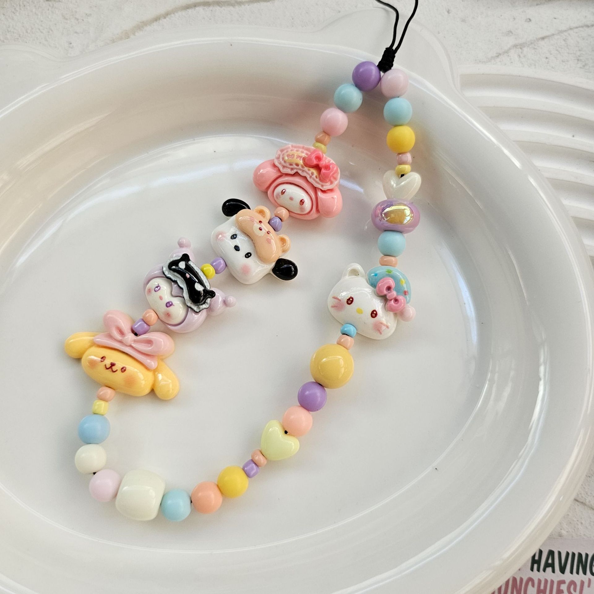 Woo Original Sanli Gou Meng Grain 구슬 휴대 전화 체인 스폰지 밥 만화 동물 이야기 휴대 전화 교수형 체인