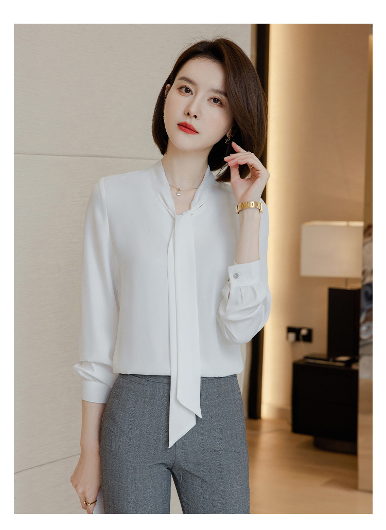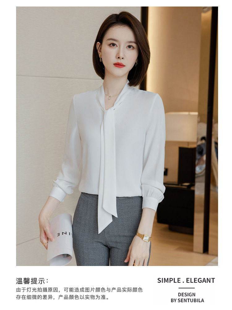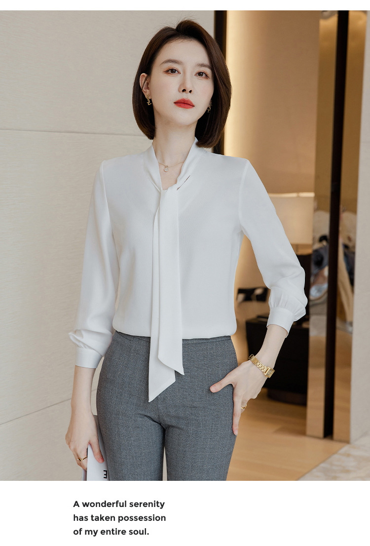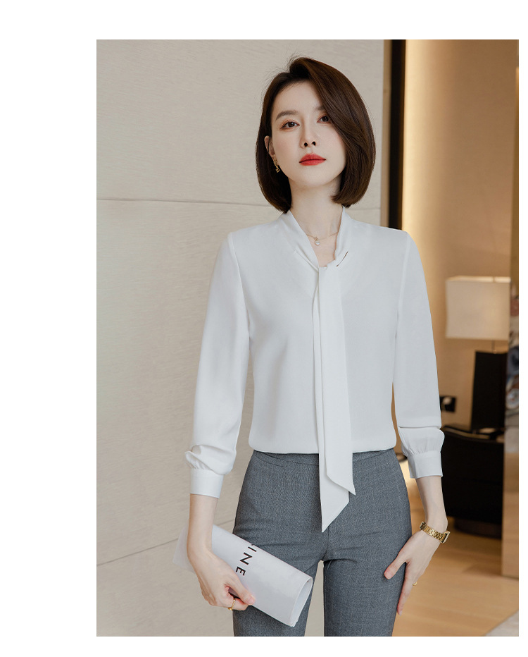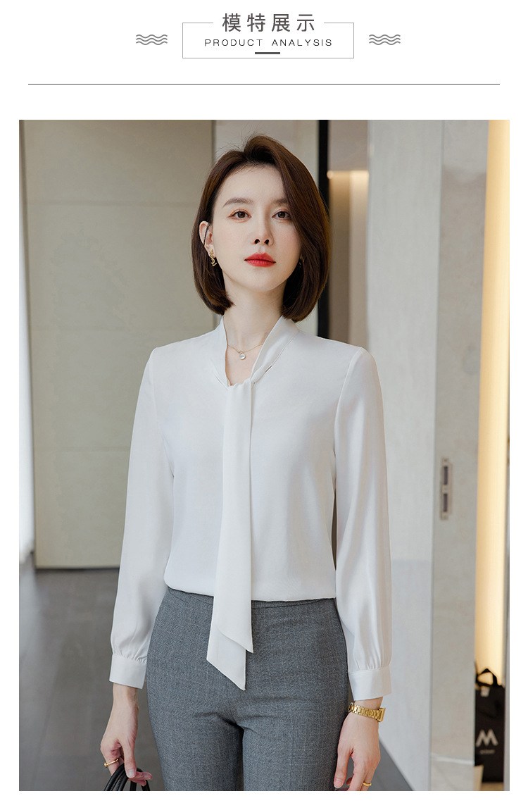 스트랩 셔츠 여성의 2024 새로운 가을 착용 사업 기질 여신 팬 하이 엔드 뷰티 살롱 작업 옷 화이트 셔츠스토어 가기