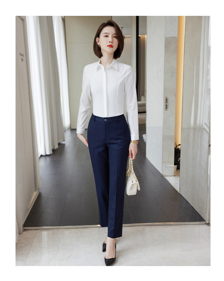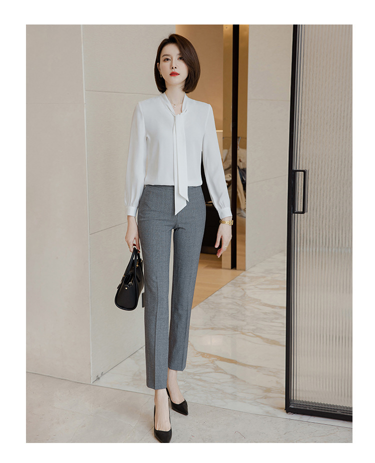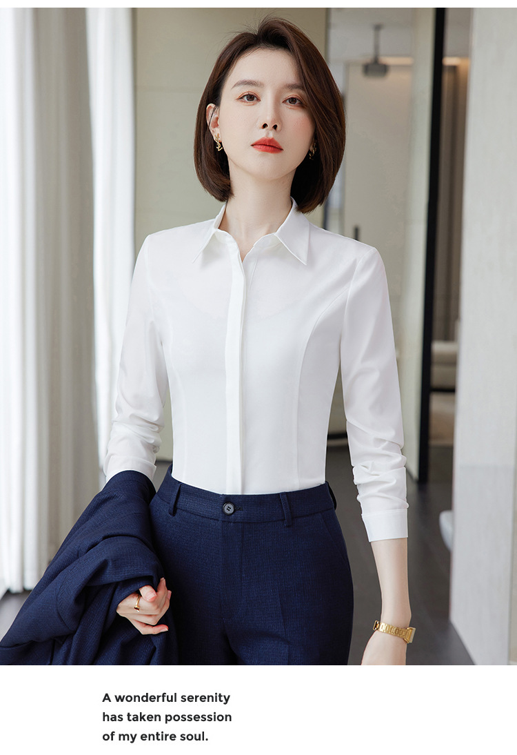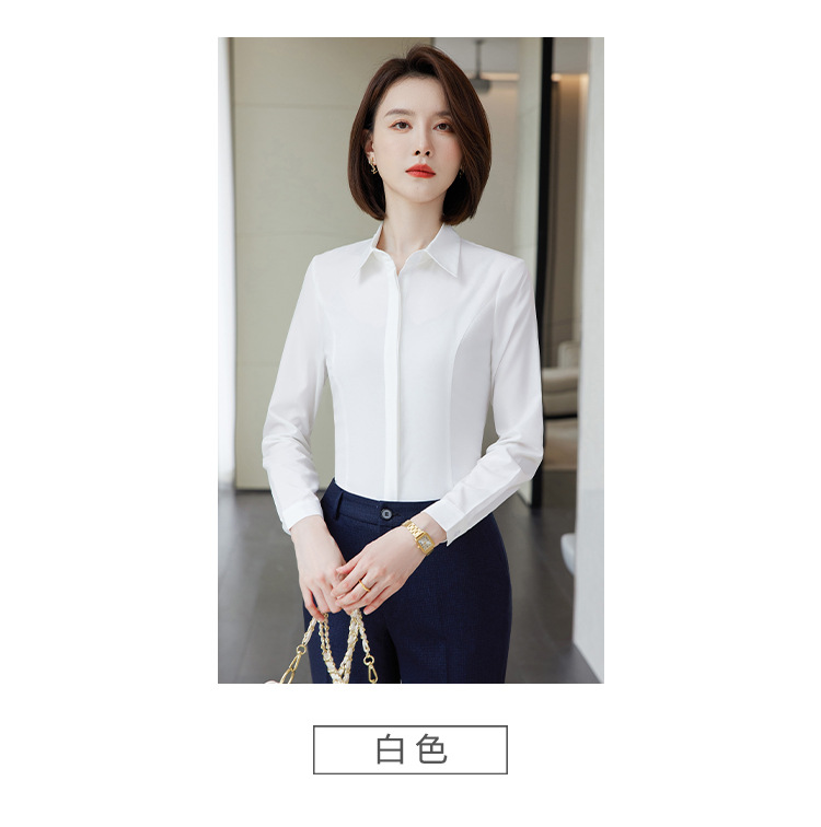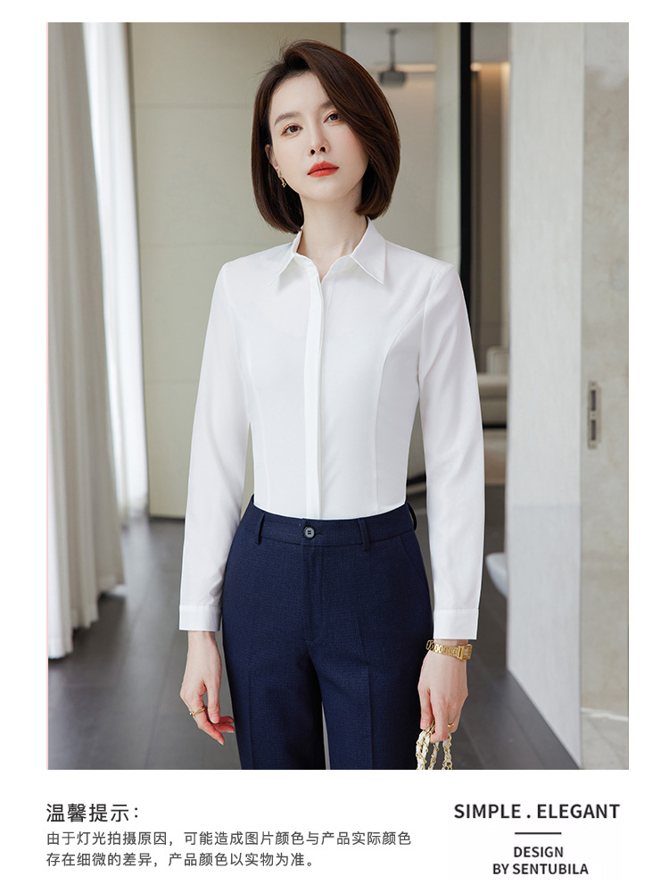 스트랩 셔츠 여성의 2024 새로운 가을 착용 사업 기질 여신 팬 하이 엔드 뷰티 살롱 작업 옷 화이트 셔츠스토어 가기