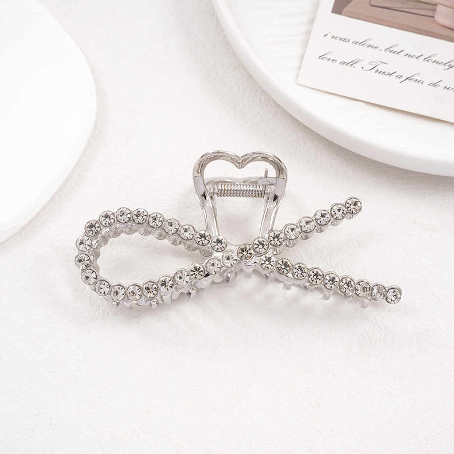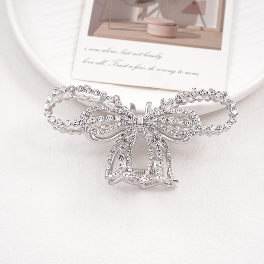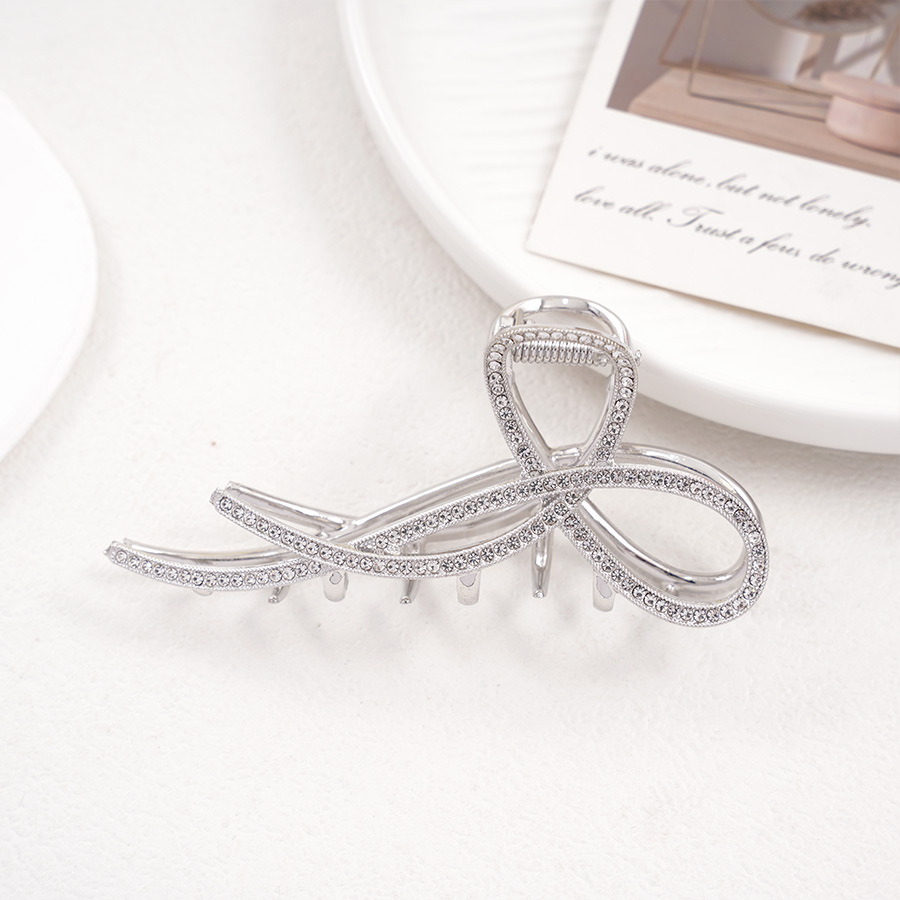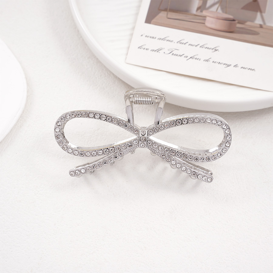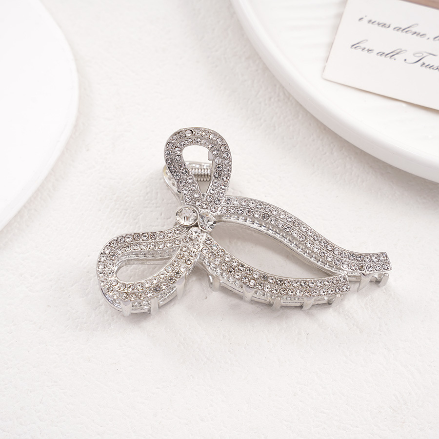 • 실버 풀 다이아몬드 더블 보우 클립 [스타일 18]