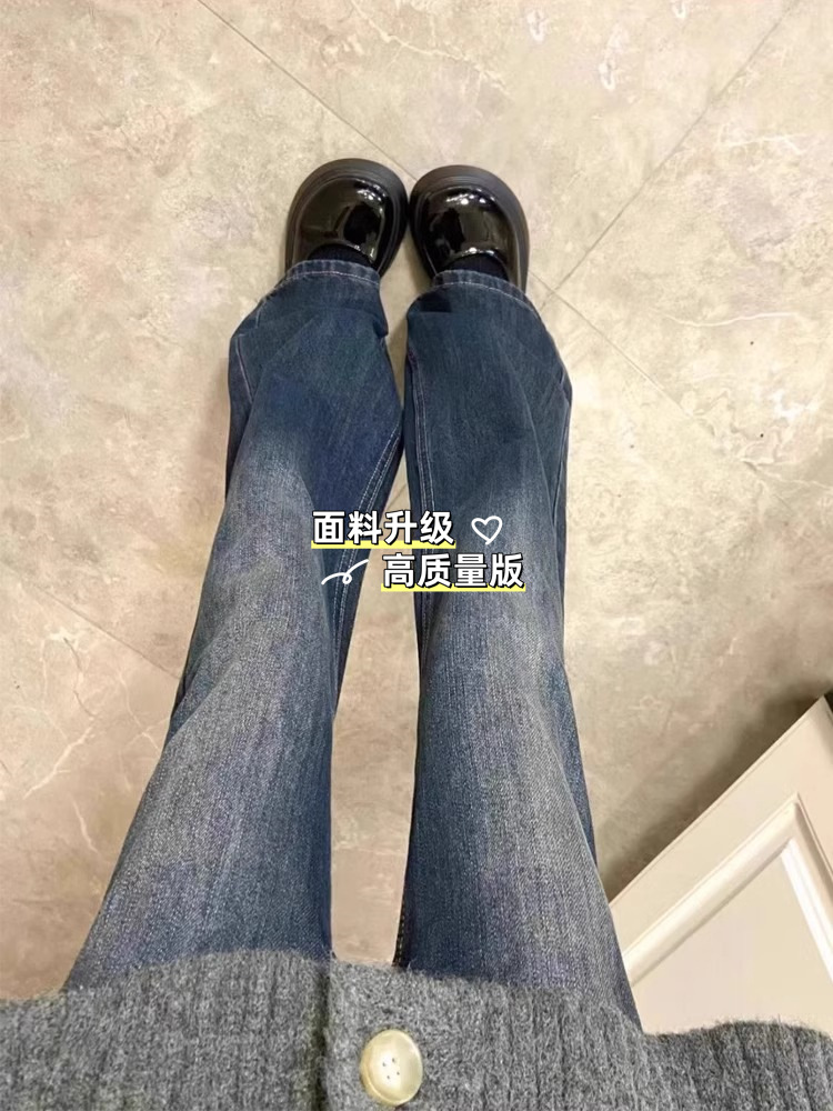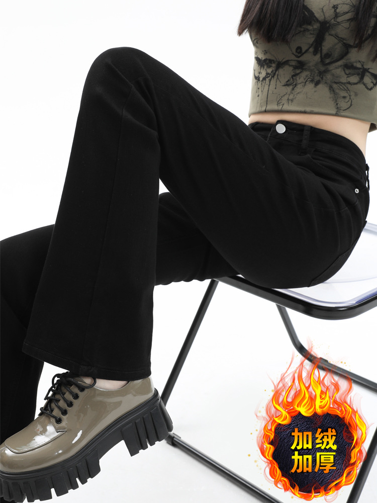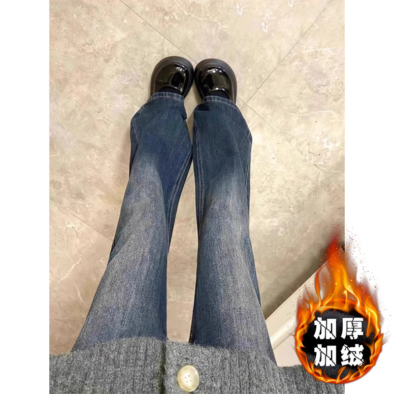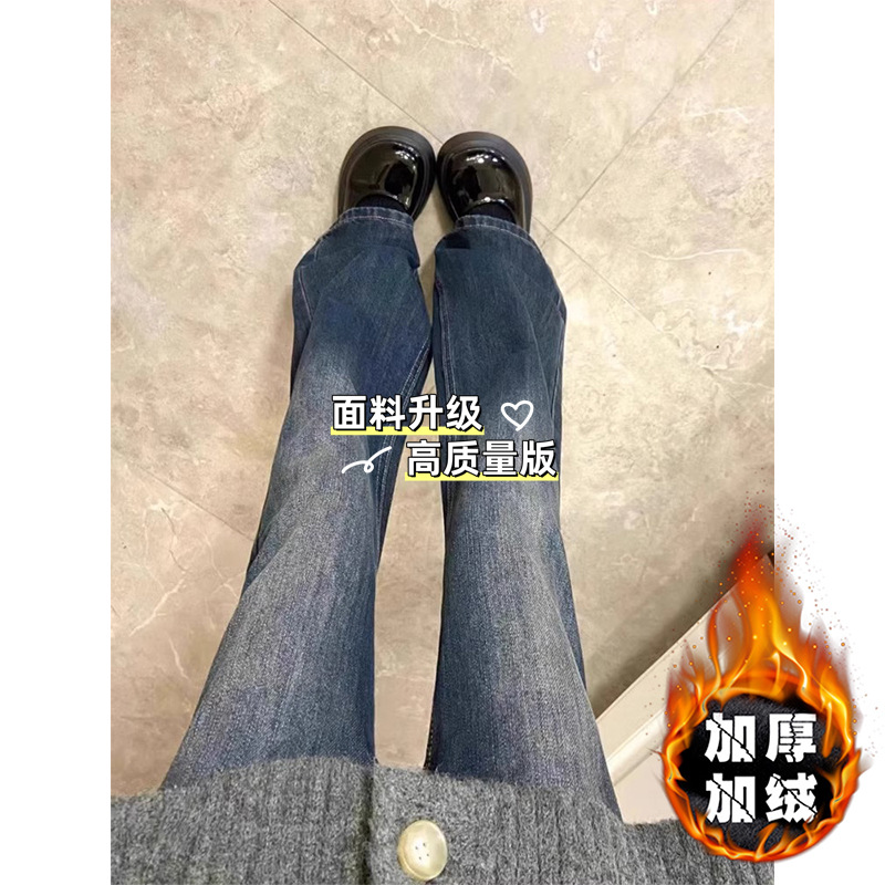 다리가없는 기모 마이크로 라르 청바지 여성의 가을과 겨울 플러스 사이즈 통통녀 높은 허리 고관절을 덮는 배 모양의 넓은 다리 바지스토어 가기