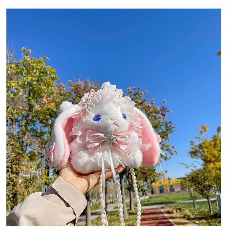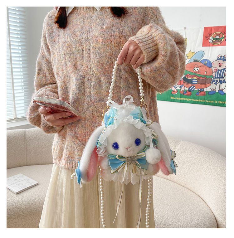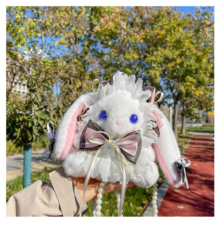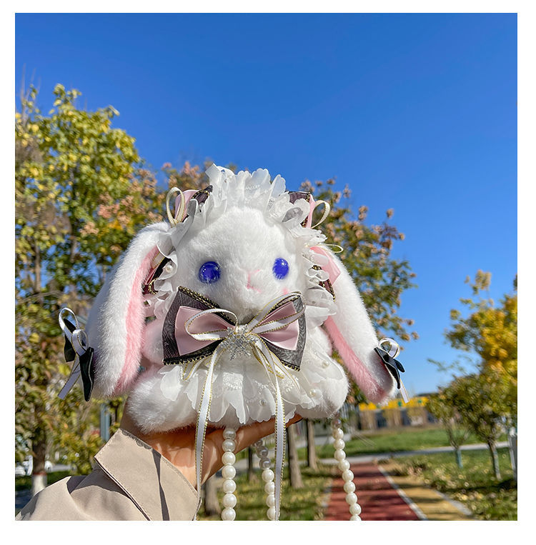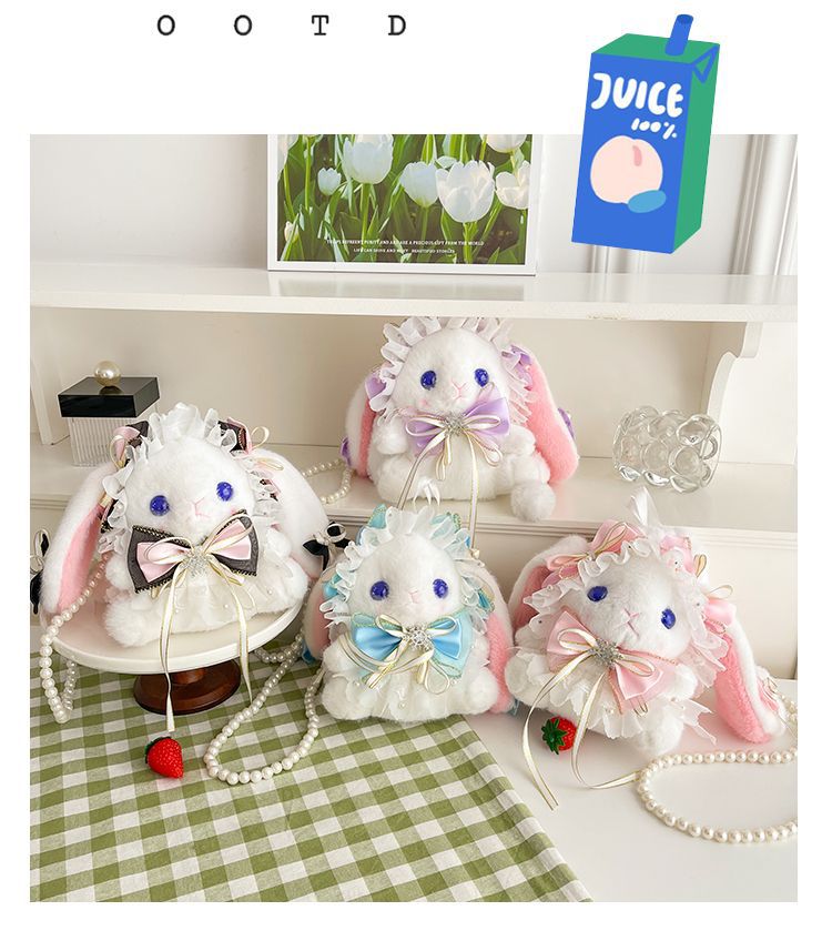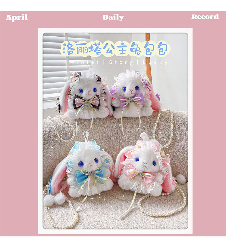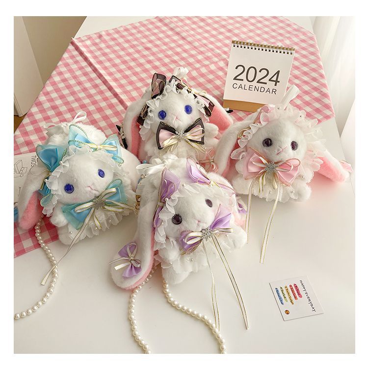 로리타 귀여운 만화 소녀 스타일 인스타그램 토끼 가방 세트, 작은 꽃무늬 천 소재, 여학생용 크로스백, 벨벳스토어 가기