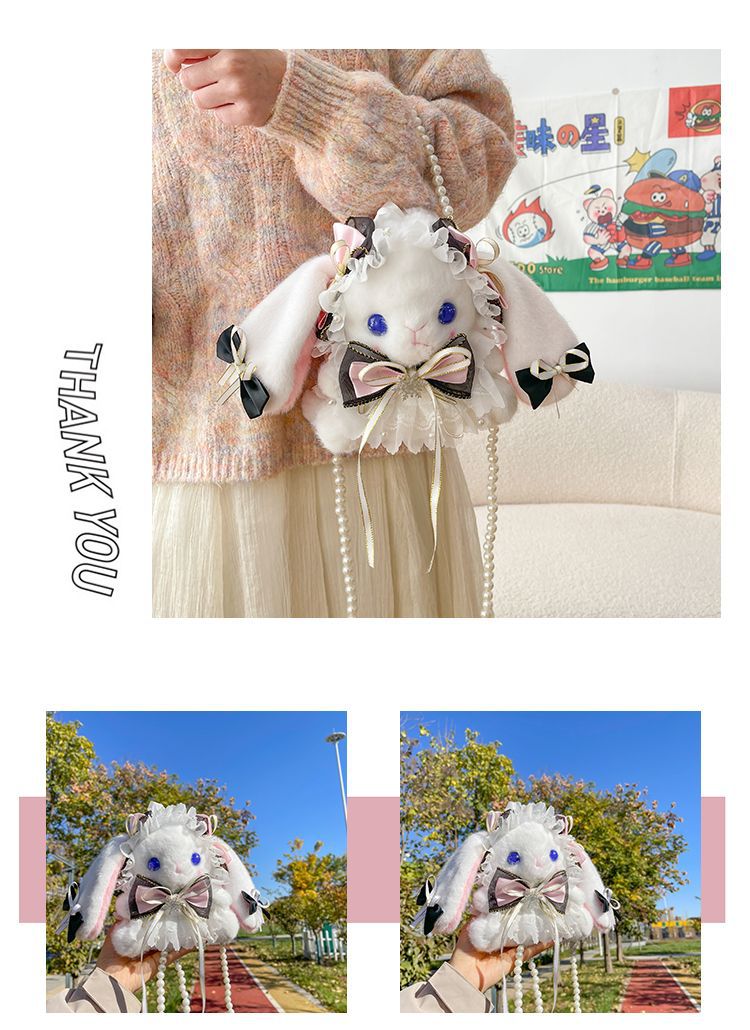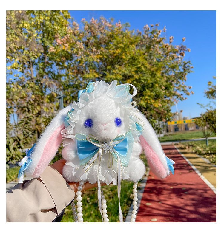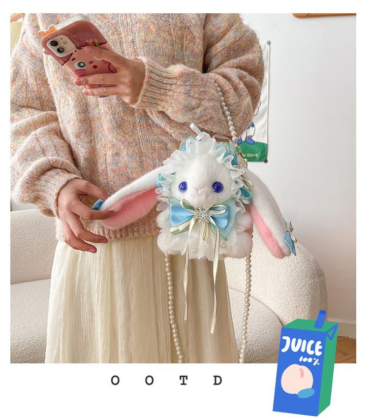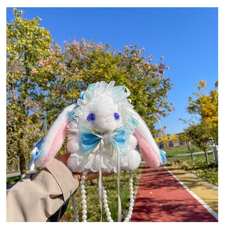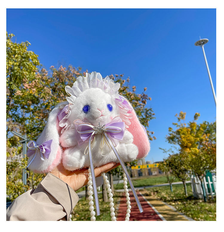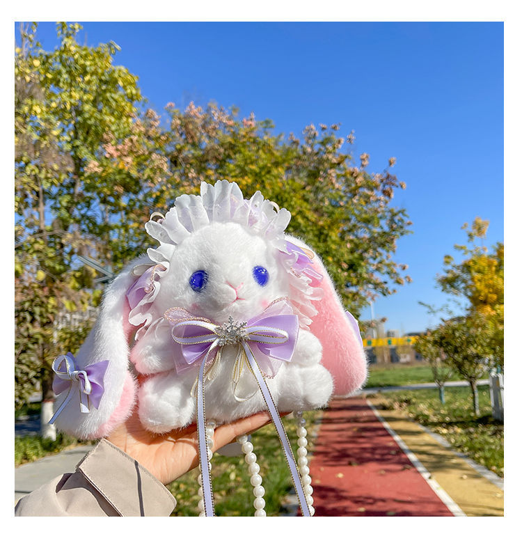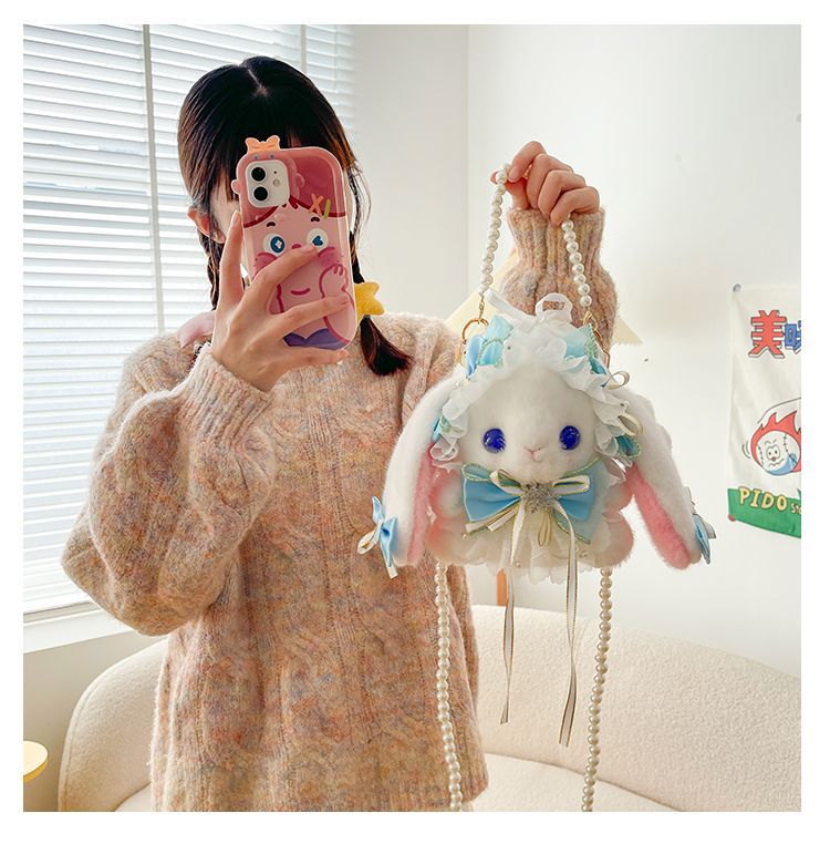 로리타 귀여운 만화 소녀 스타일 인스타그램 토끼 가방 세트, 작은 꽃무늬 천 소재, 여학생용 크로스백, 벨벳스토어 가기
