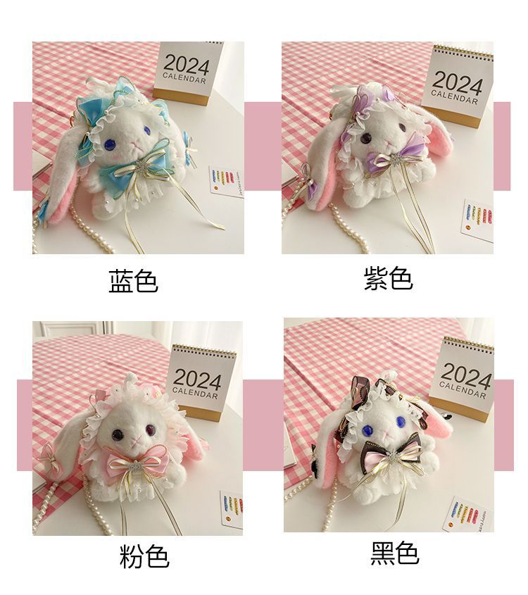 로리타 귀여운 만화 소녀 스타일 인스타그램 토끼 가방 세트, 작은 꽃무늬 천 소재, 여학생용 크로스백, 벨벳