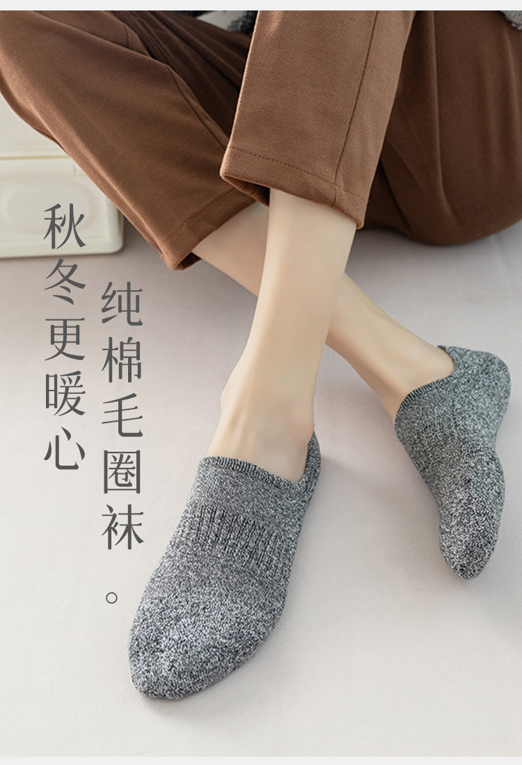 보트 양말 남자의 겨울 얕은 입 보이지 않는 미끄러지지 않는 뒤꿈치 두꺼운 테리 따뜻한 땀 흡수성 남성용 양말