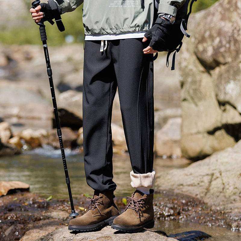加绒加厚裤子男士秋冬户外防水防风美式工装冲锋裤宽松保暖休闲裤