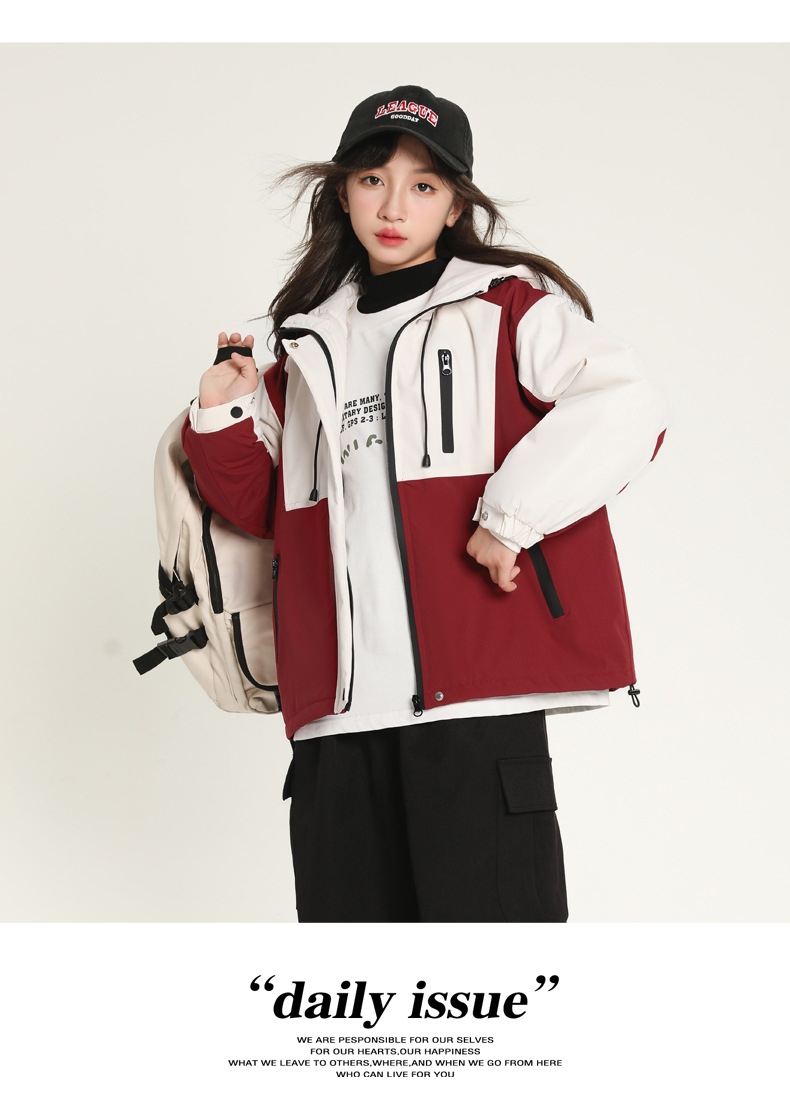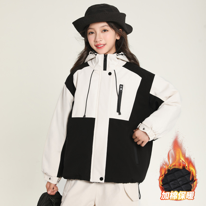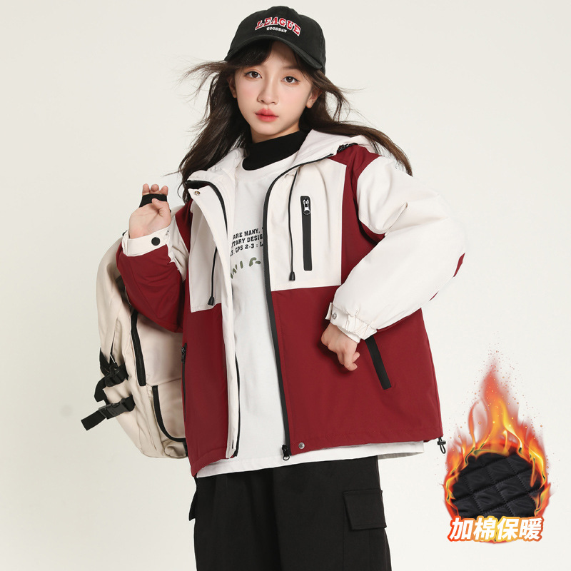 소녀의 세련된 후드 방풍 충전 옷 2024 새로운 스타일 대형 가을 및 겨울 새 누빔안감 등산 재킷스토어 가기