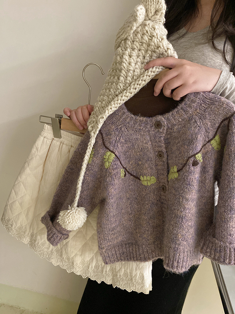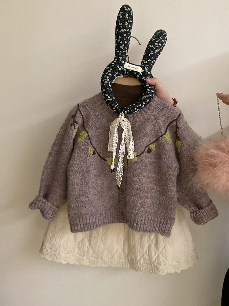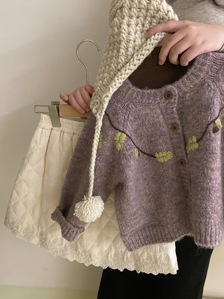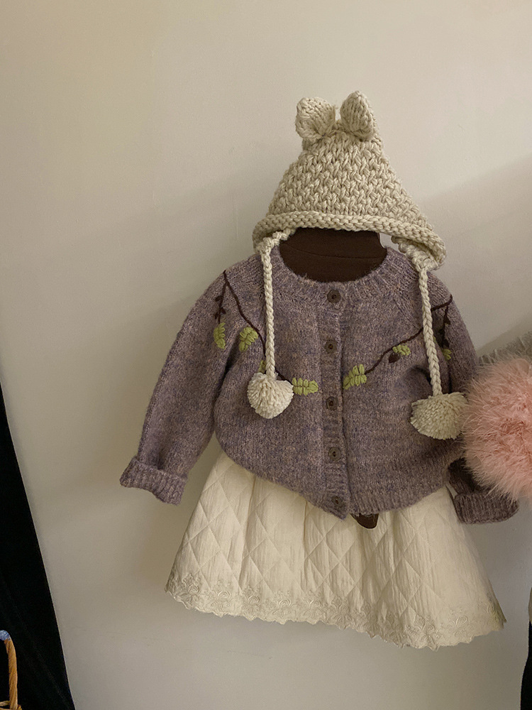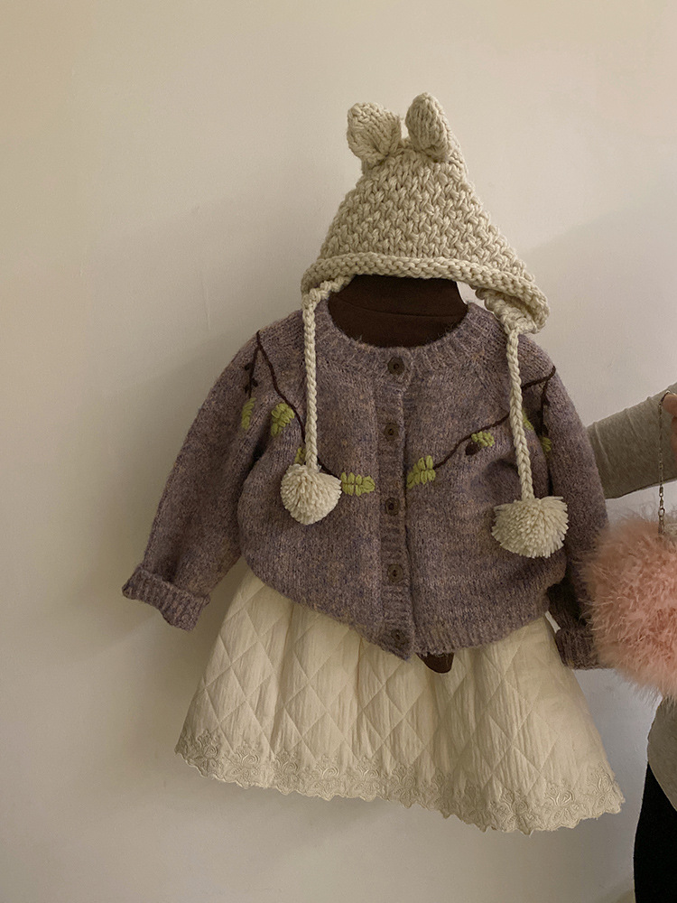 소녀 2024 가을과 겨울 새로운 크로 셰 니트 스웨터 카디건 솔리드 컬러베이스 셔츠 두꺼운 퀼트 스커트 세트