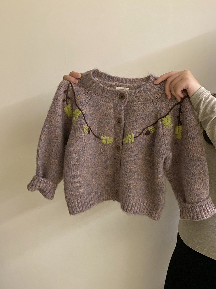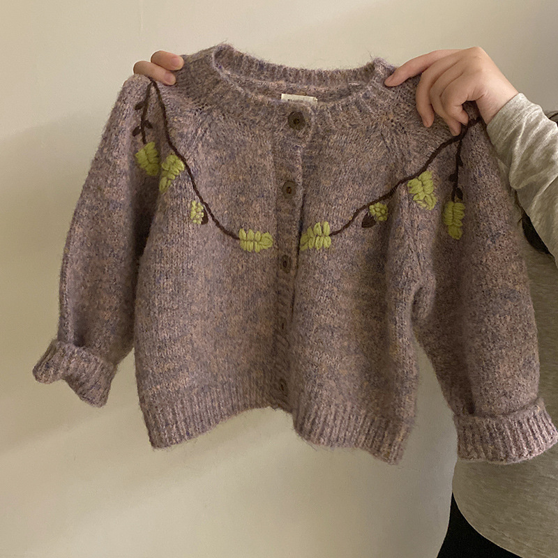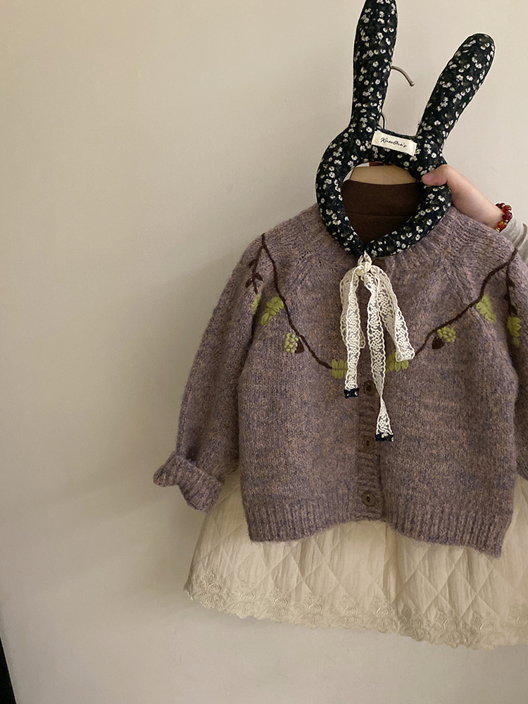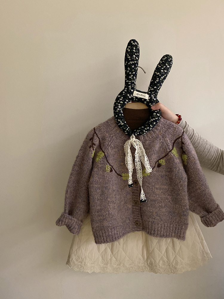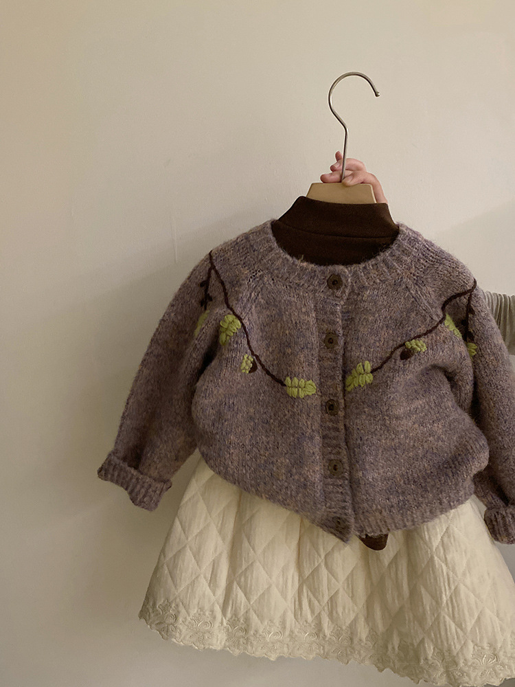 소녀 2024 가을과 겨울 새로운 크로 셰 니트 스웨터 카디건 솔리드 컬러베이스 셔츠 두꺼운 퀼트 스커트 세트