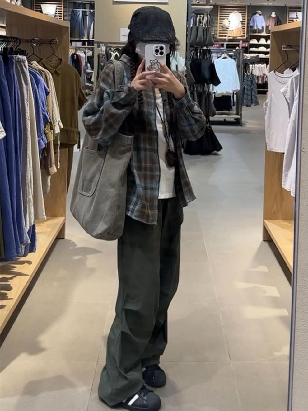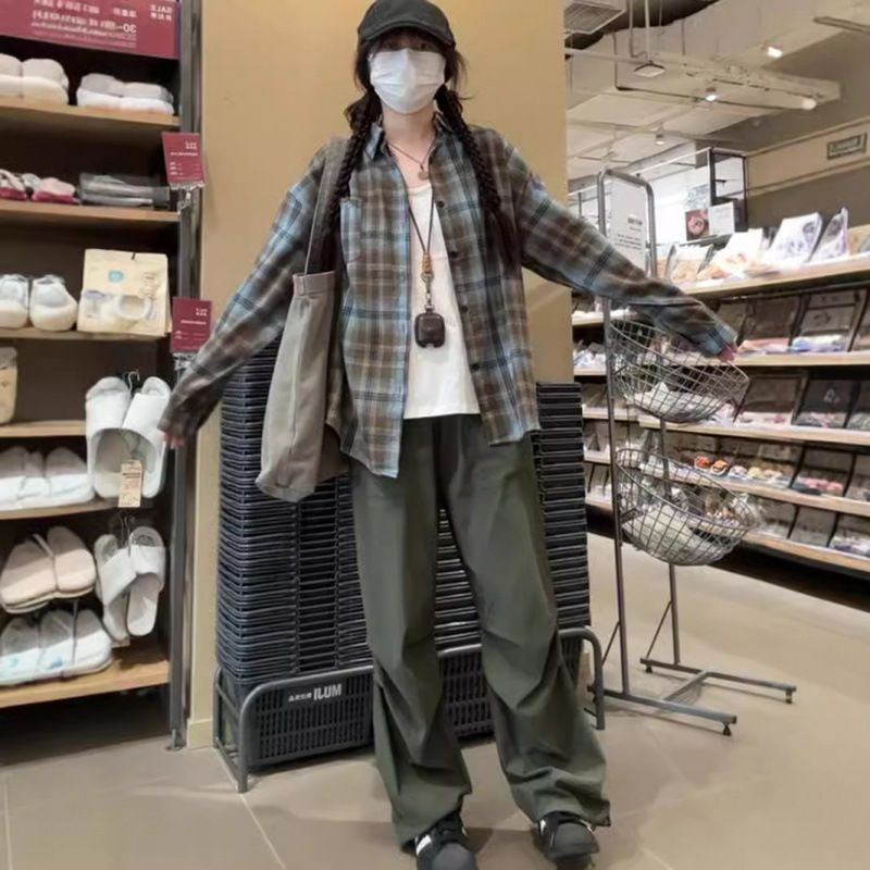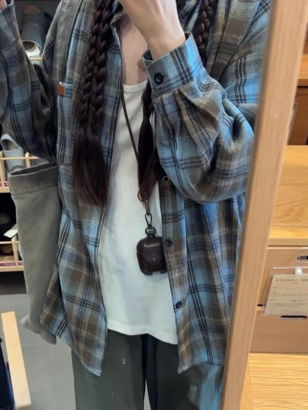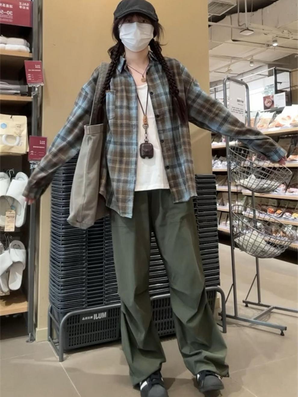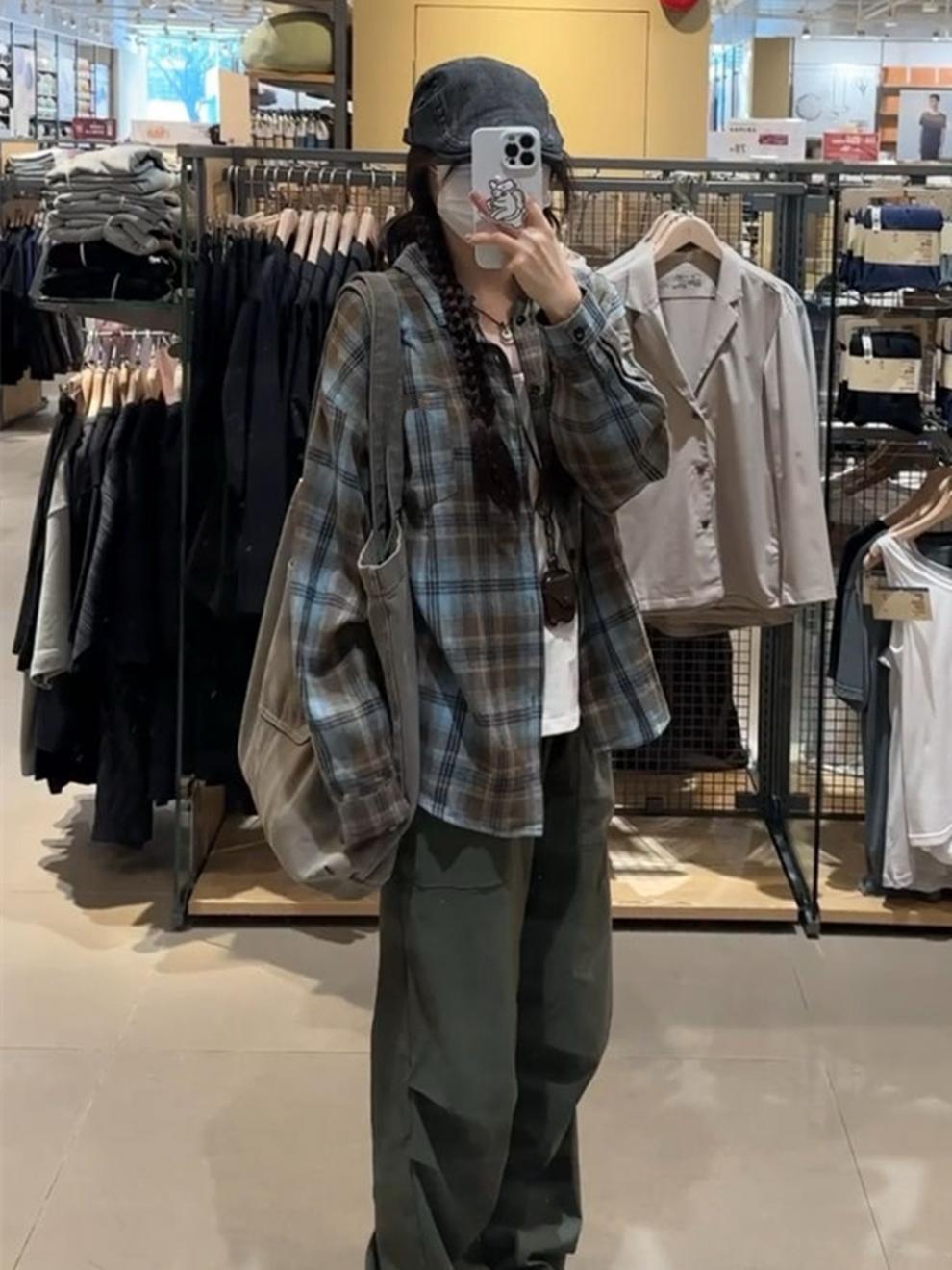 일본식 복고풍 격자 무늬 셔츠 여성의 이른 가을 새 도착 느슨한 캐주얼 디자인 센스 긴 소매 외부 셔츠 착용 얇은 코트 트렌디스토어 가기