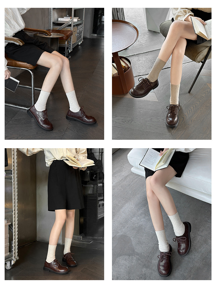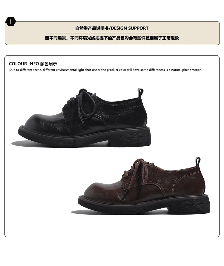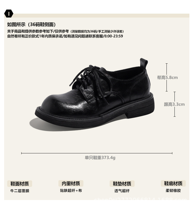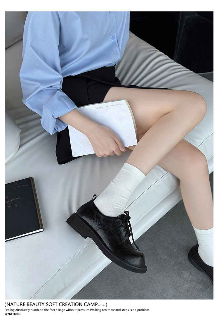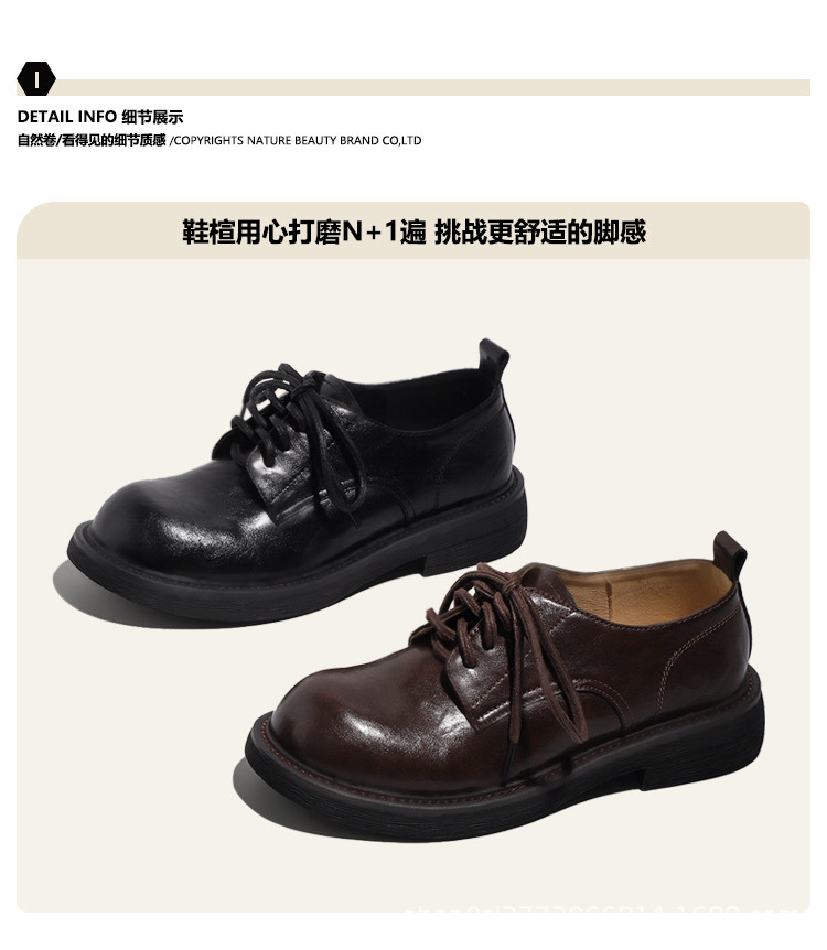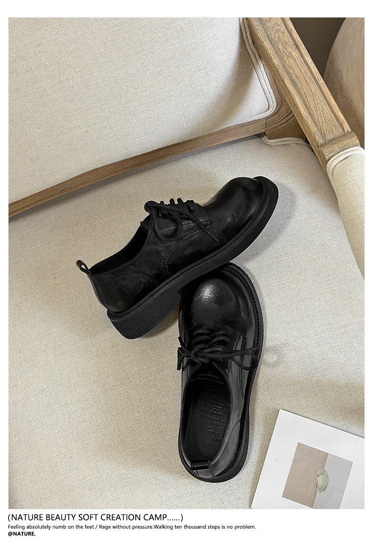 내추럴 롤 2024 가을 새로운 클래식 영국 스타일 작은 가죽 신발 여성 올 매치 라운드 헤드 레이스 업 두꺼운 하단 블랙 신발