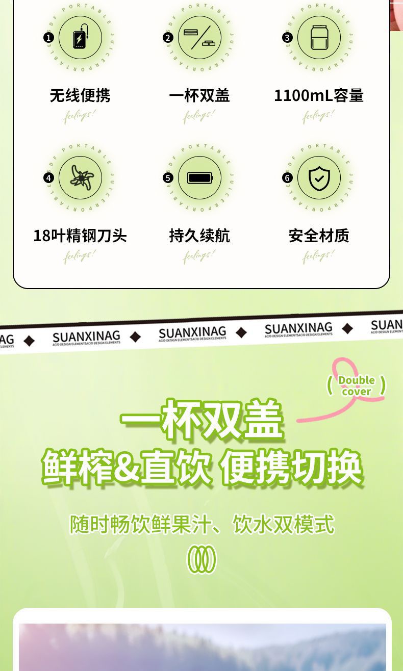 榨汁杯便携式榨汁机鲜榨吨吨桶无线果汁随行杯榨汁桶充电炸汁机杯