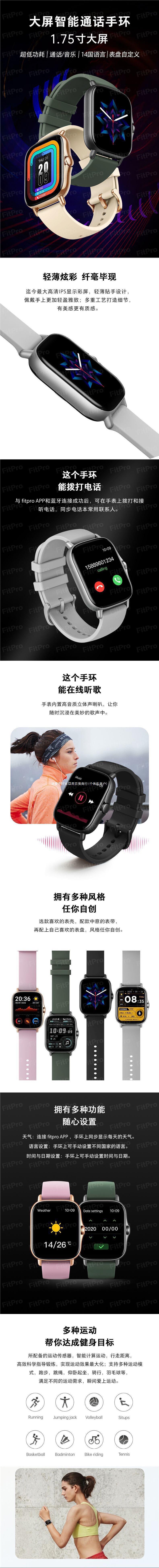 Huaqiang North 블루투스 콜 스포츠 스마트 팔찌 폭발 1.69 인치 스크린 스마트 시계 기타 금속스토어 가기