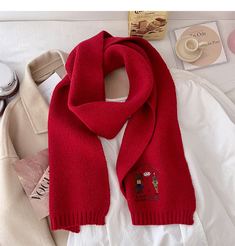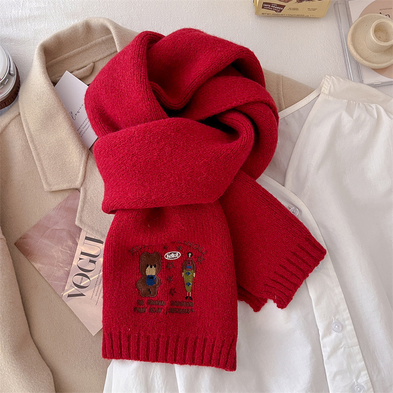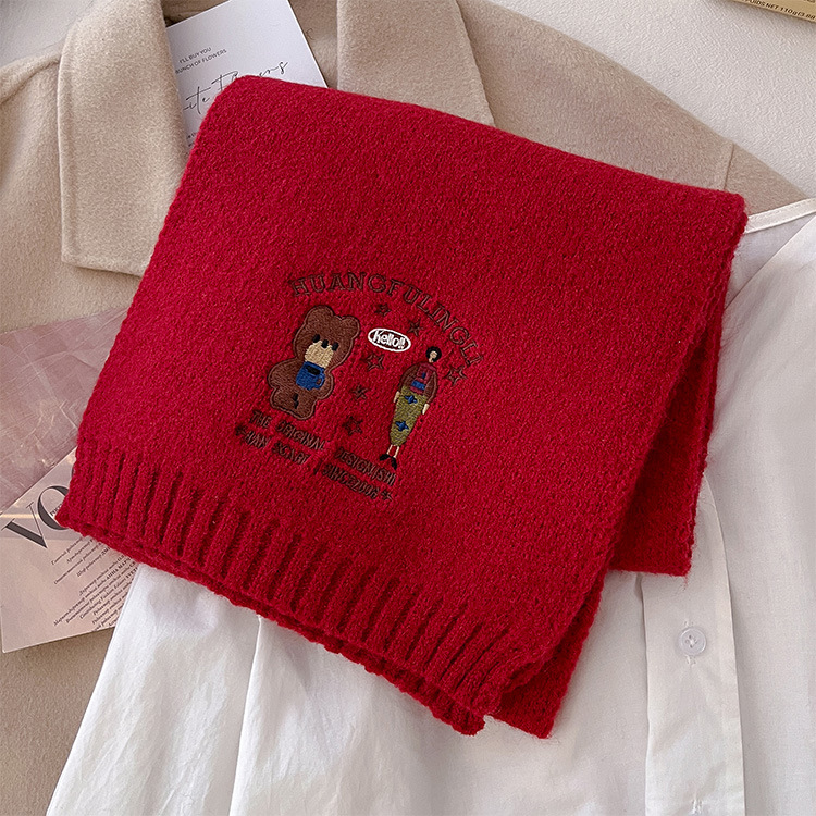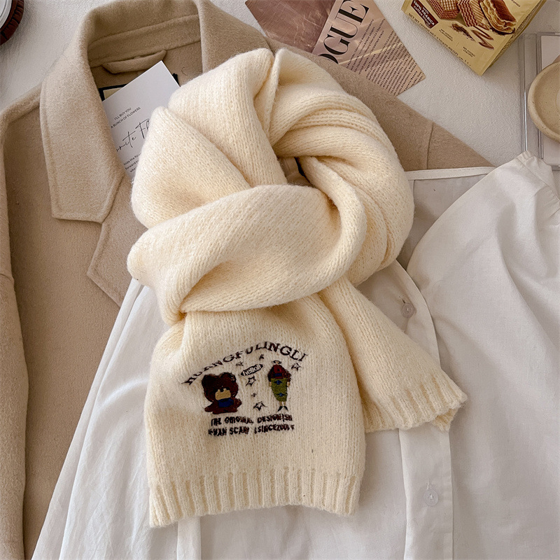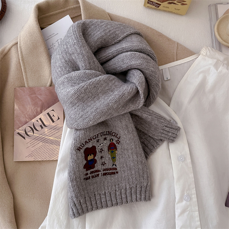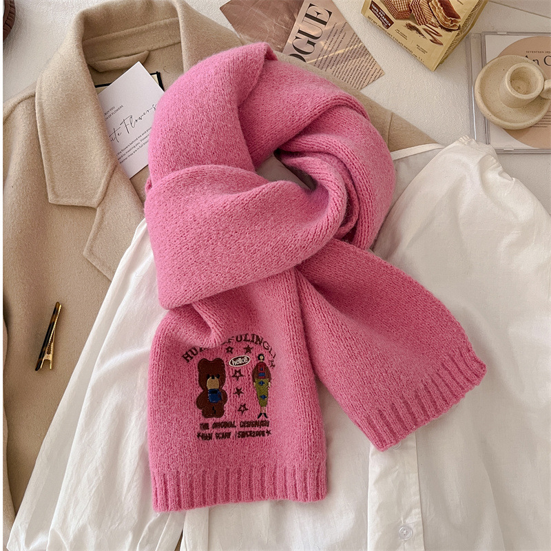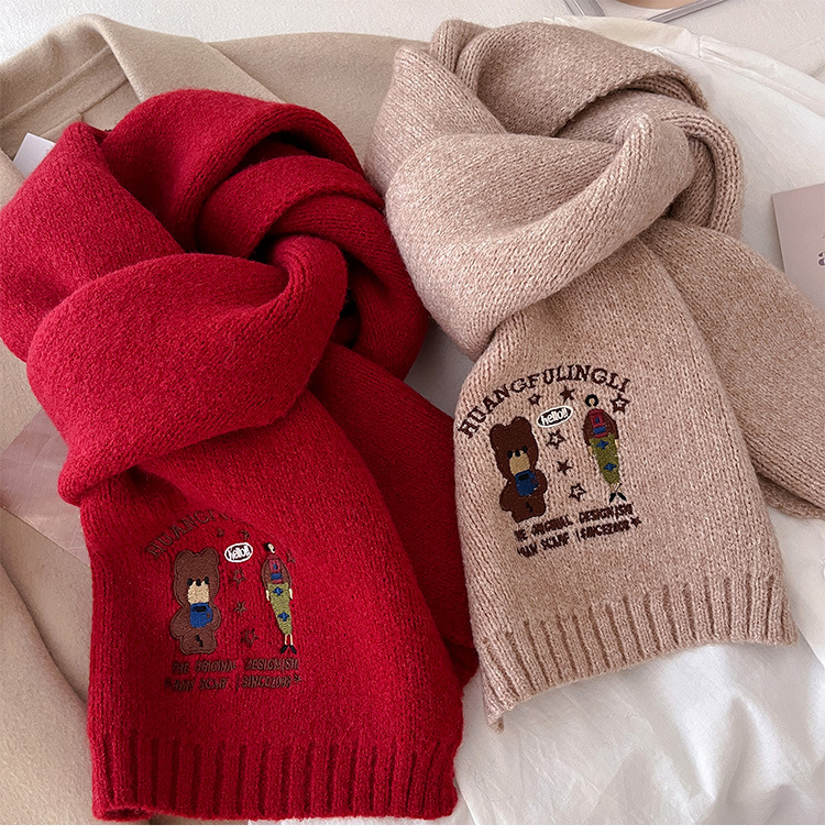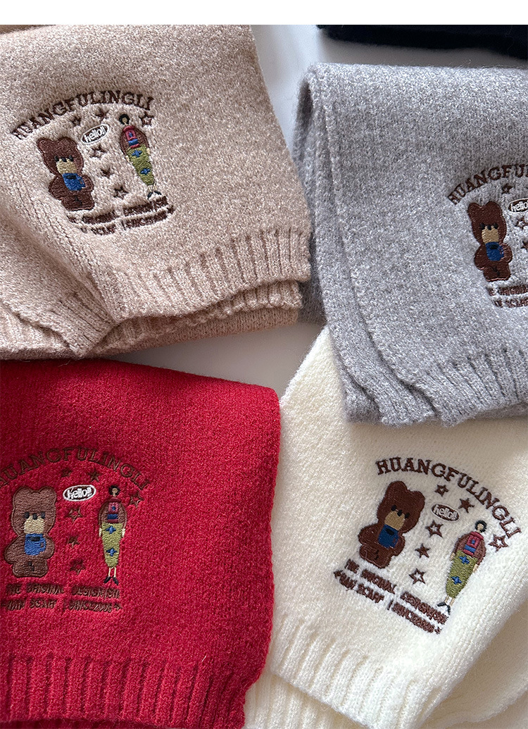 스카프 여성의 겨울 새로운 하이 엔드 곰 자수 따뜻한 두꺼운 내한성 니트 울 스카프 목도리 도매