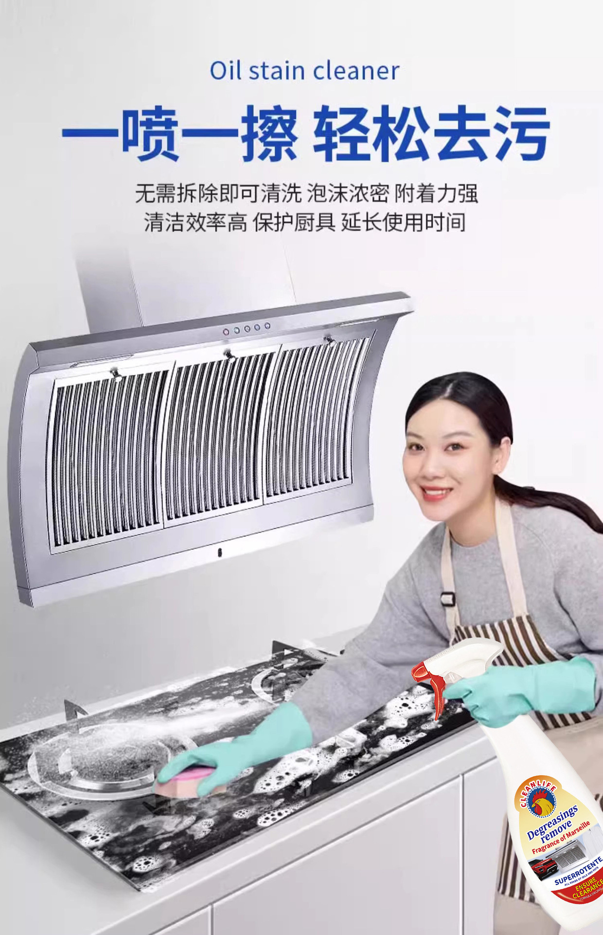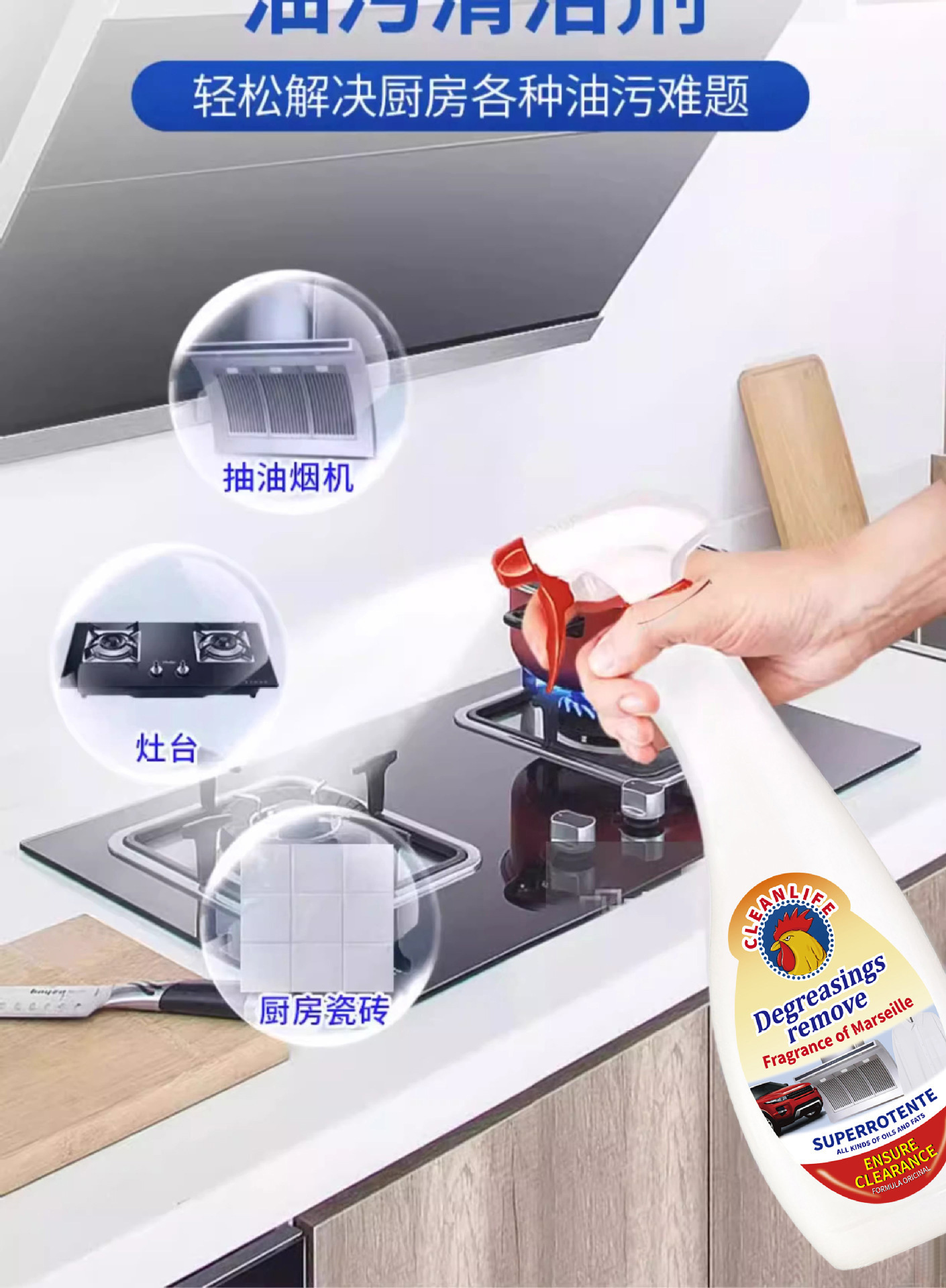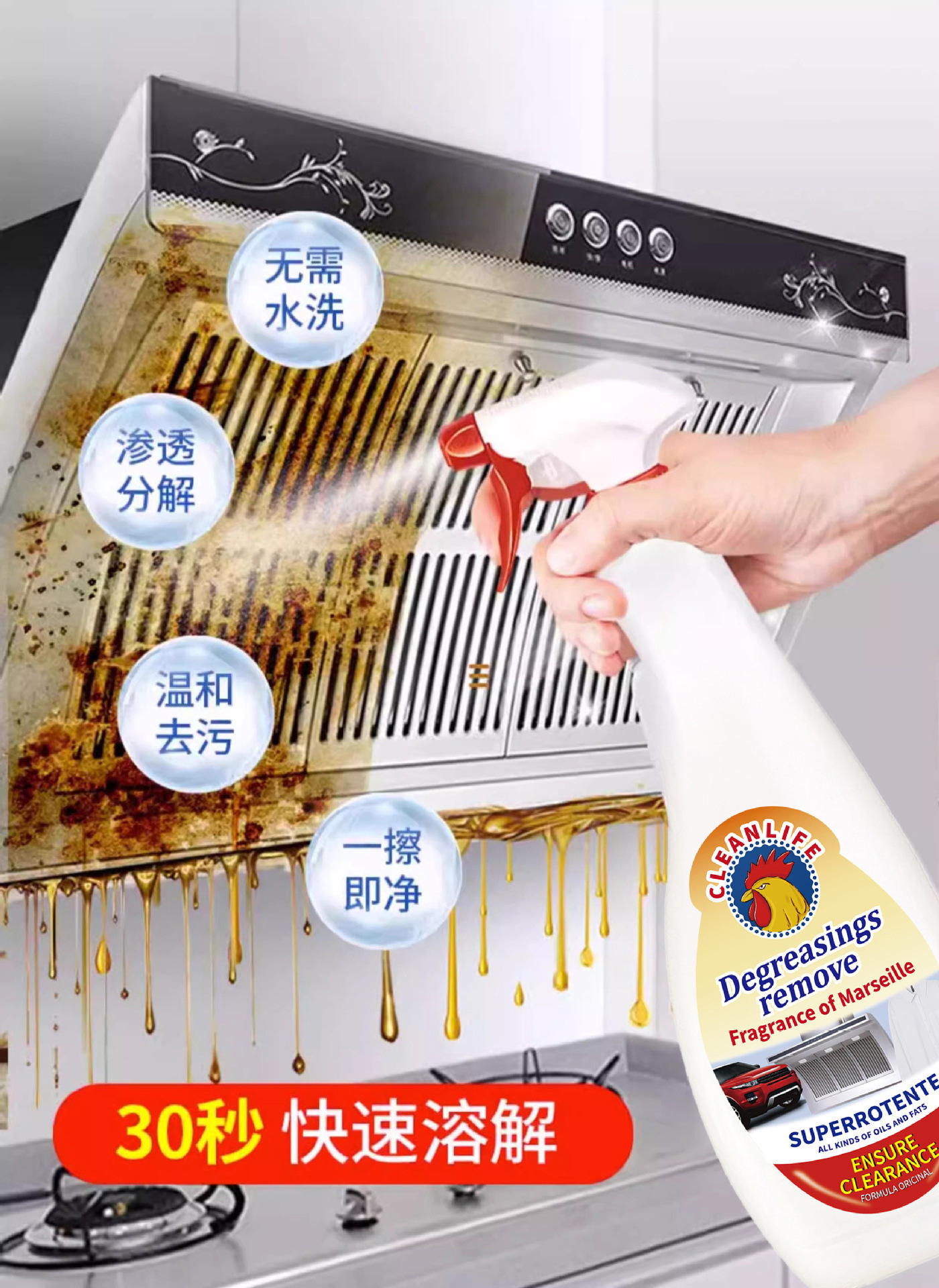 수입 공식 큰 수탉 다기능 오일 얼룩 청소기 주방 스토브 제거 중유 유물 범위 후드스토어 가기