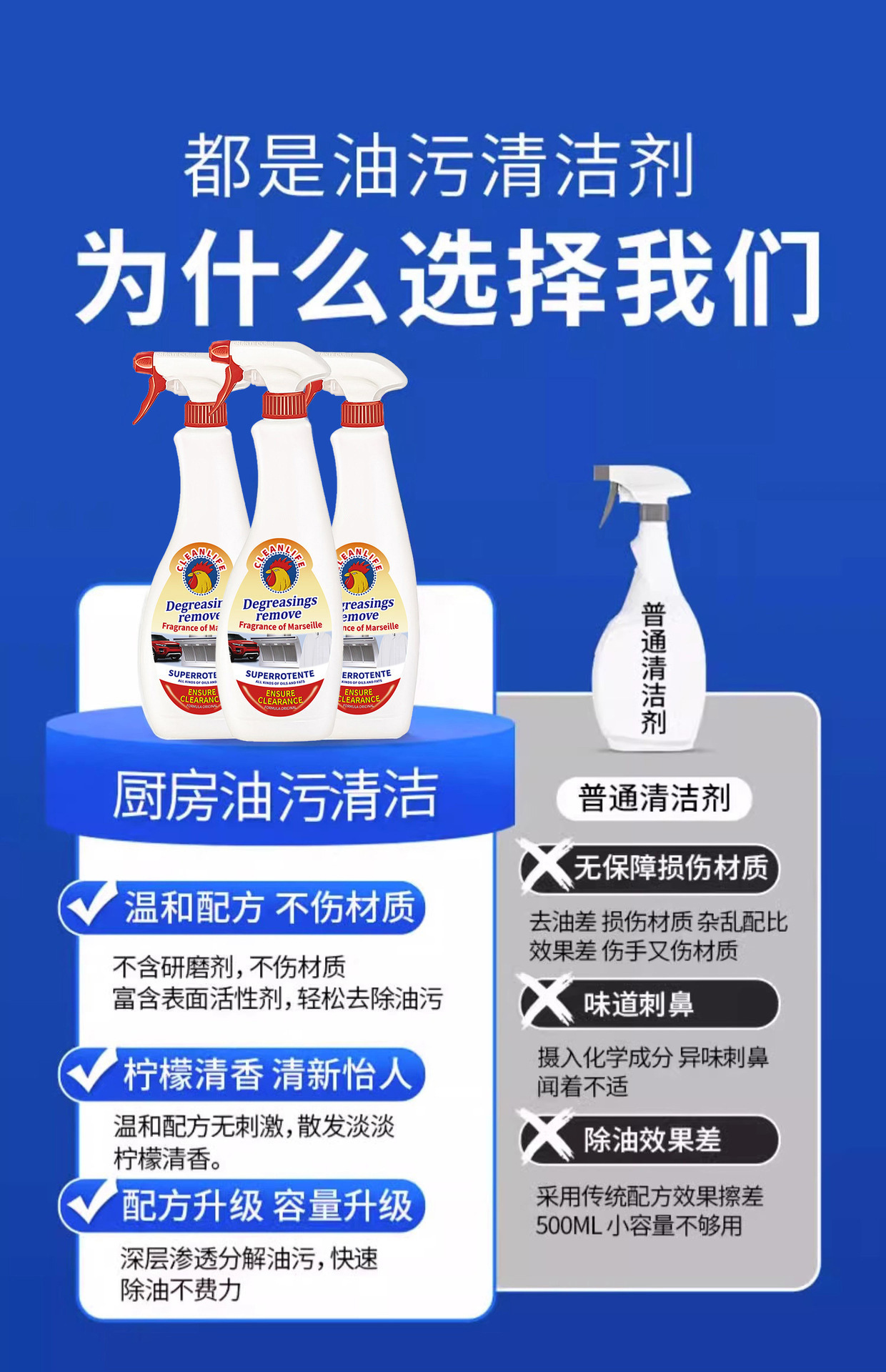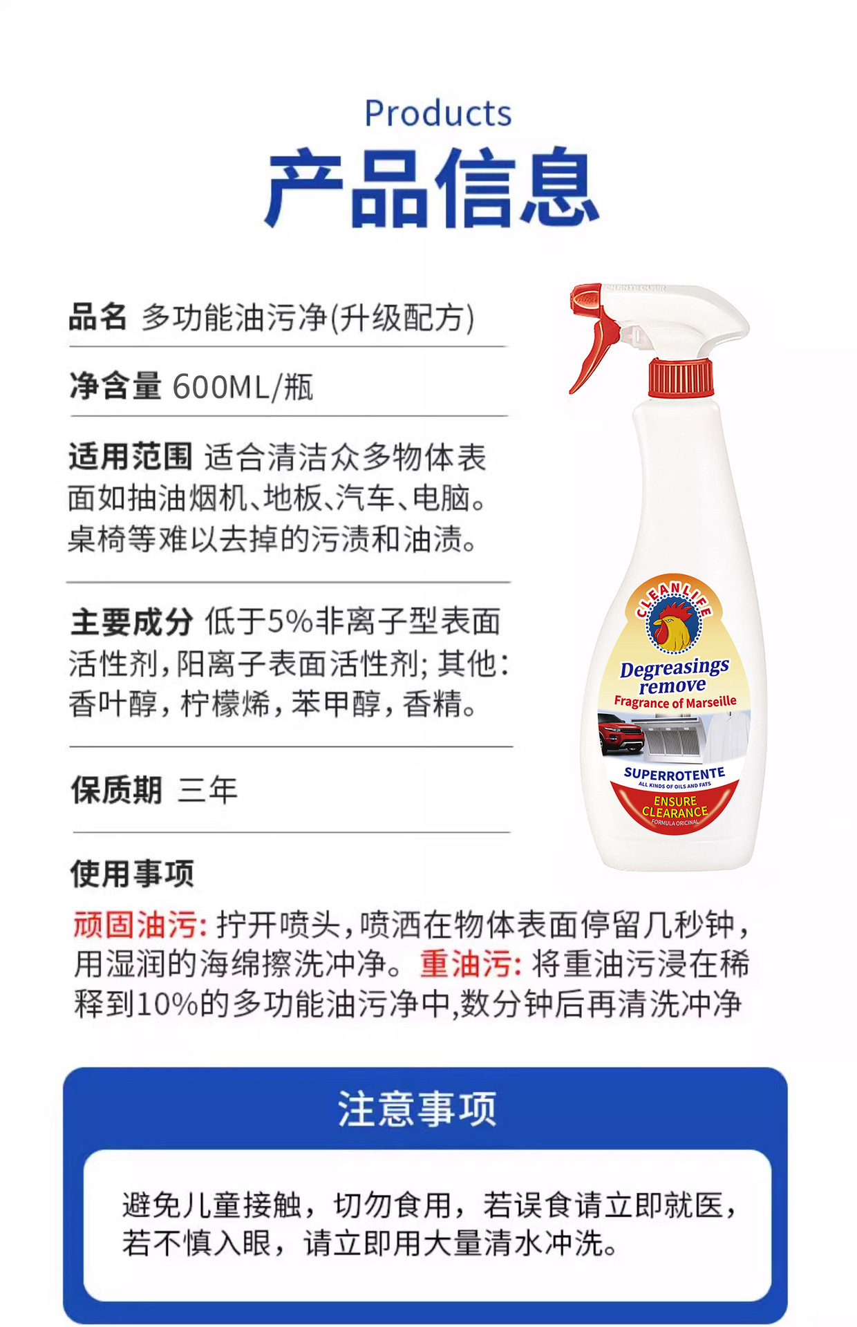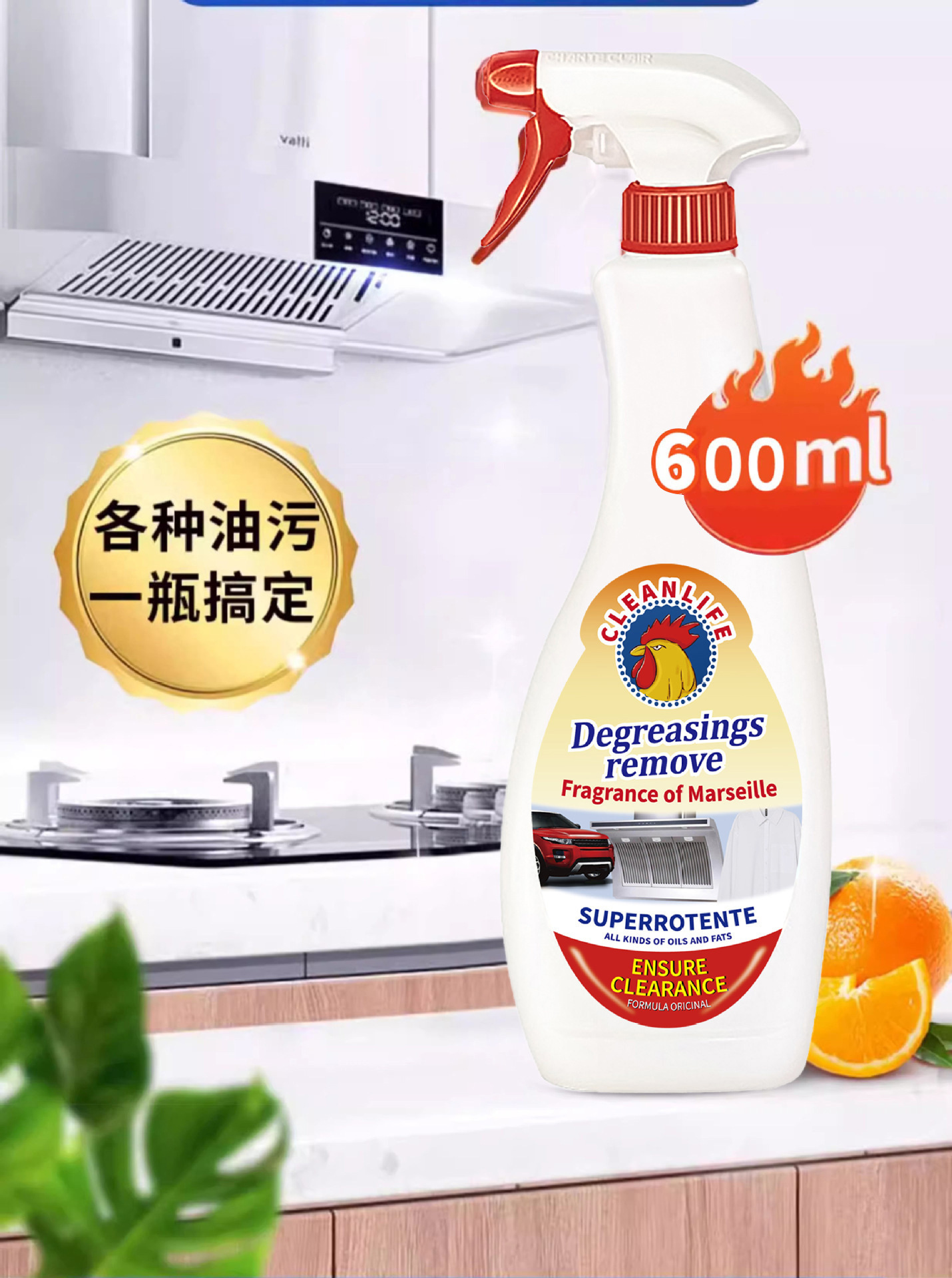 수입 공식 큰 수탉 다기능 오일 얼룩 청소기 주방 스토브 제거 중유 유물 범위 후드스토어 가기